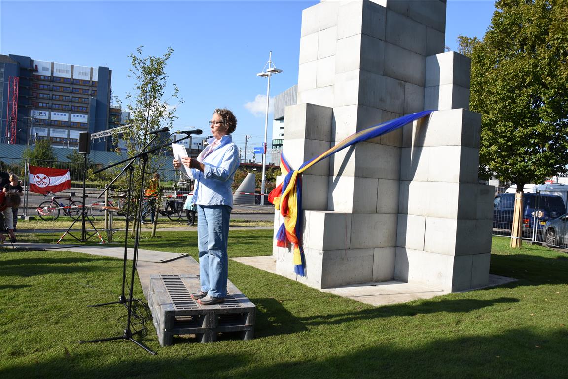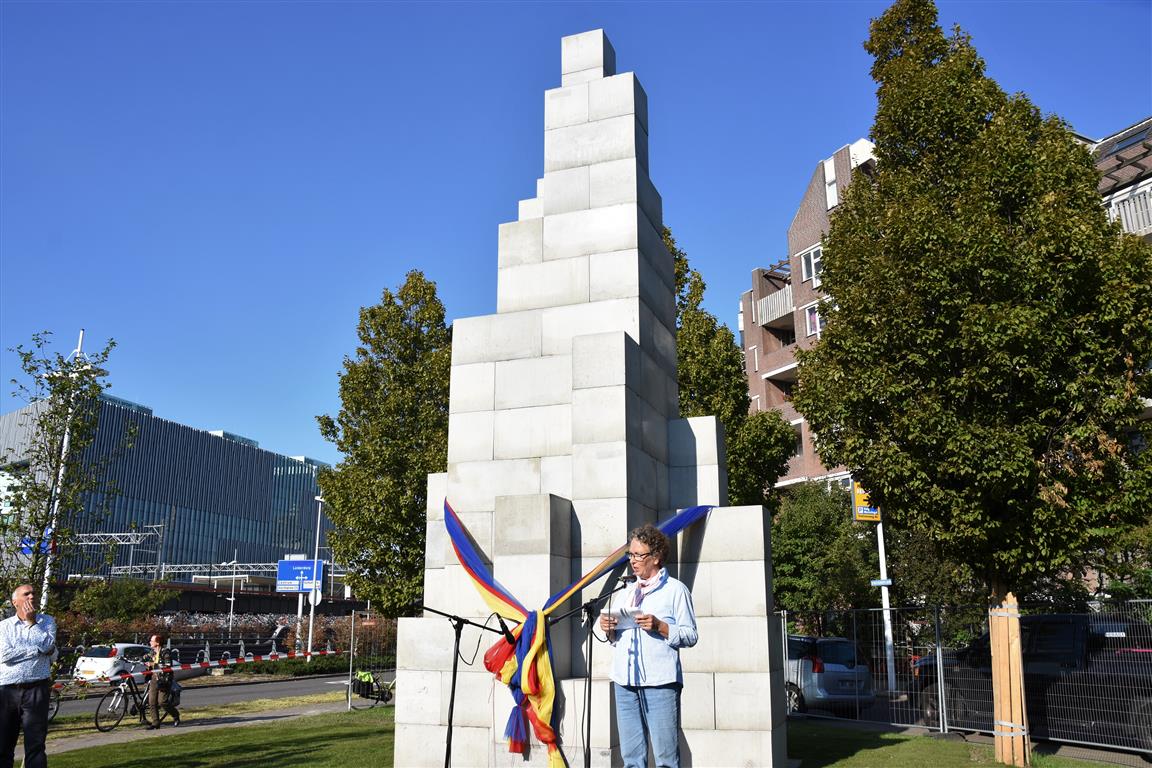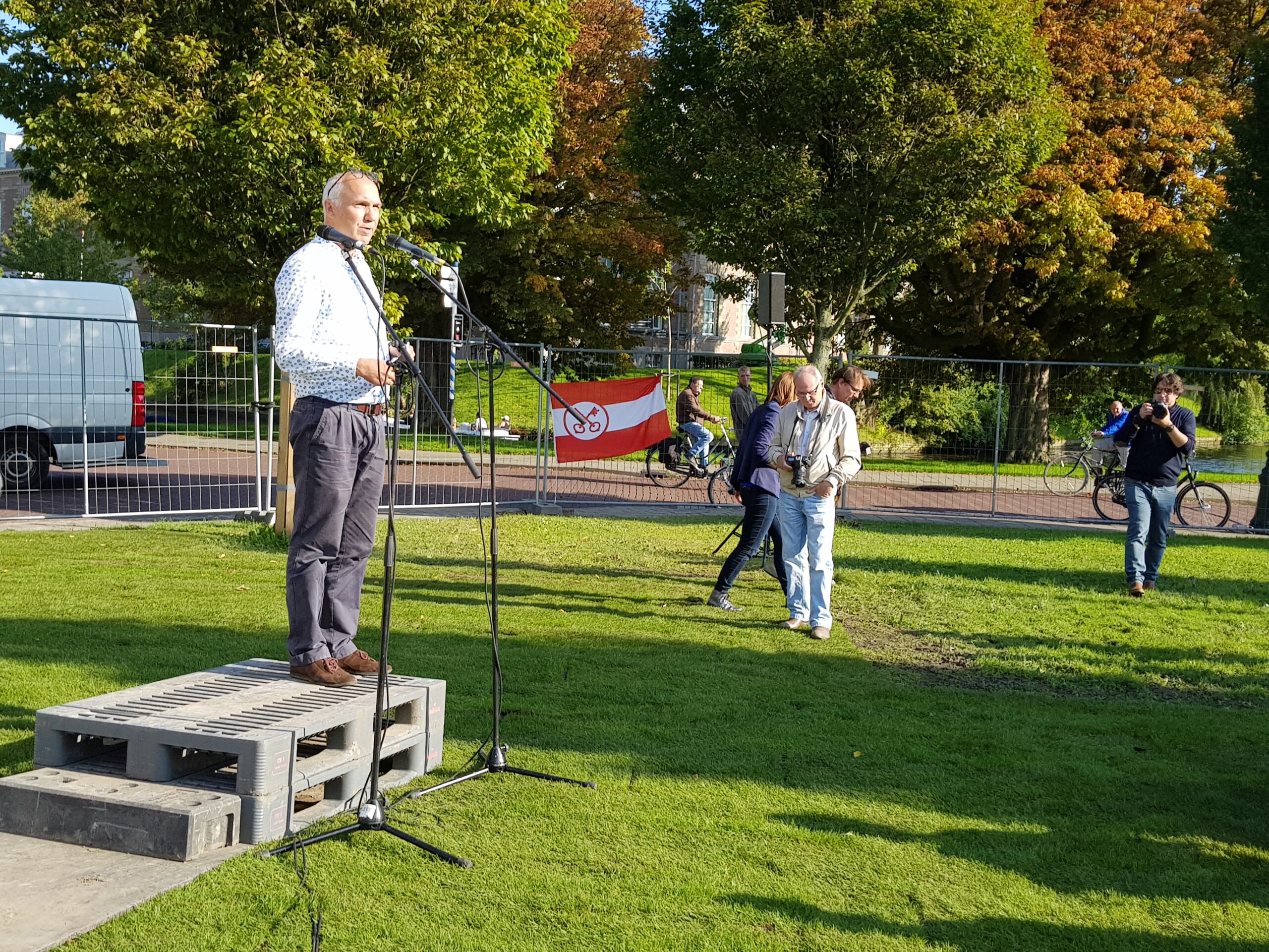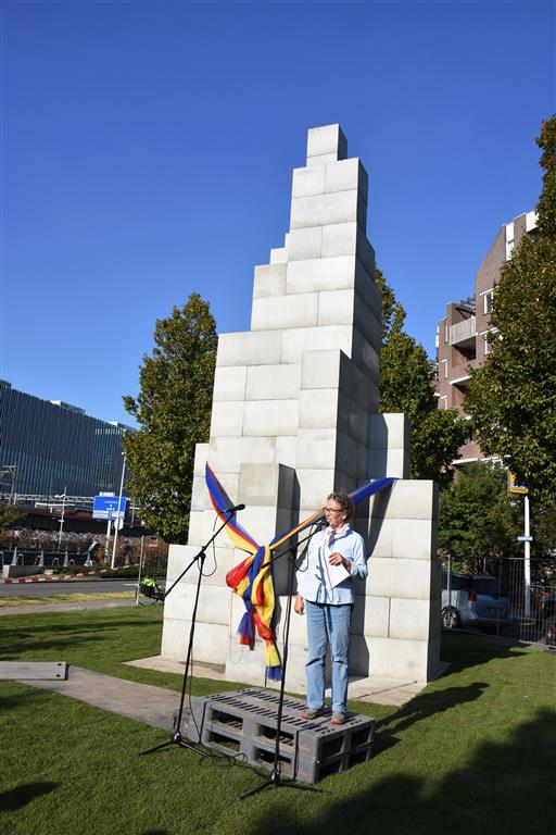 In zijn toespraak dankte wethouder Robert Strijk de vele vrijwilligers voor hun tomeloze inzet die ertoe heeft geleid dat dit monument voor Theo van Doesburg nu is gerealiseerd. Walter van Peijpe onderstreepte het belang van Vierkant in Vierkant voor Leiden omdat het laat zien dat Leiden, naast cultuurstad van de 17e eeuw met Rembrandt, Gerrit Dou en Jan van Goyen, ook de stad is van de vernieuwing en de dynamiek belichaamd in De Stijl. Vierkant in Vierkant als inspiratie voor de stad van de toekomst.