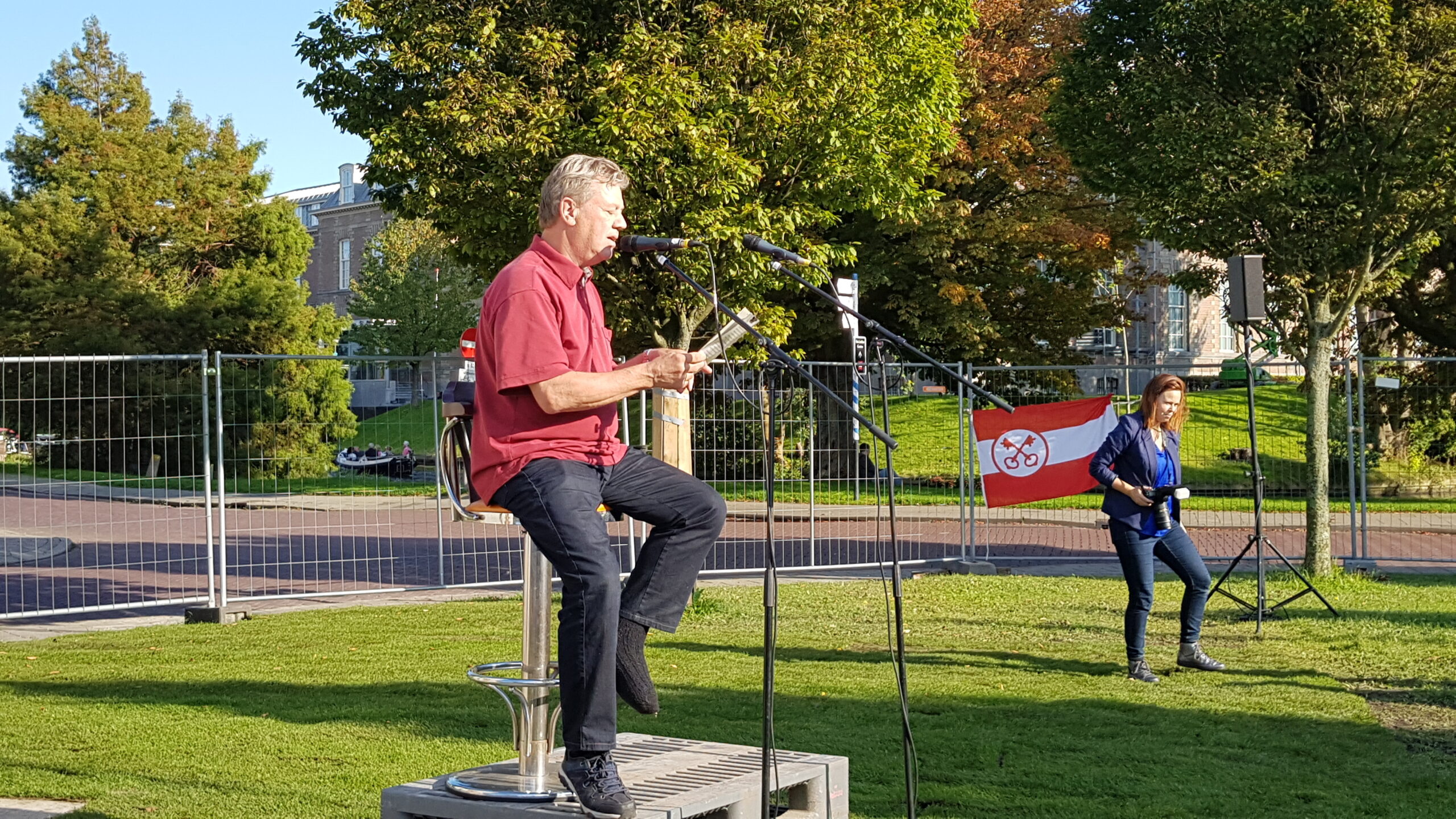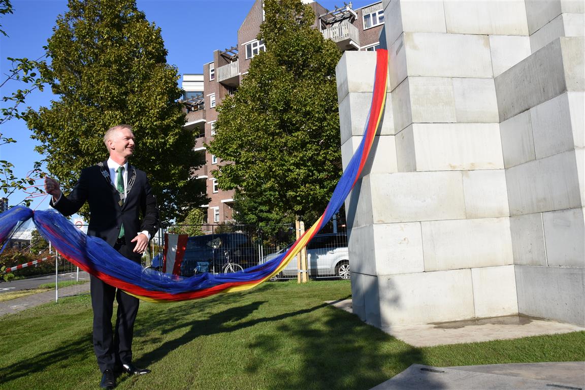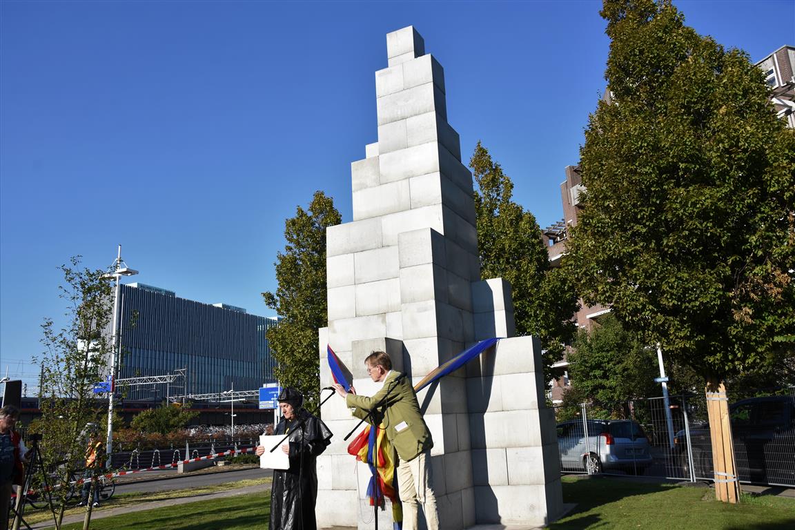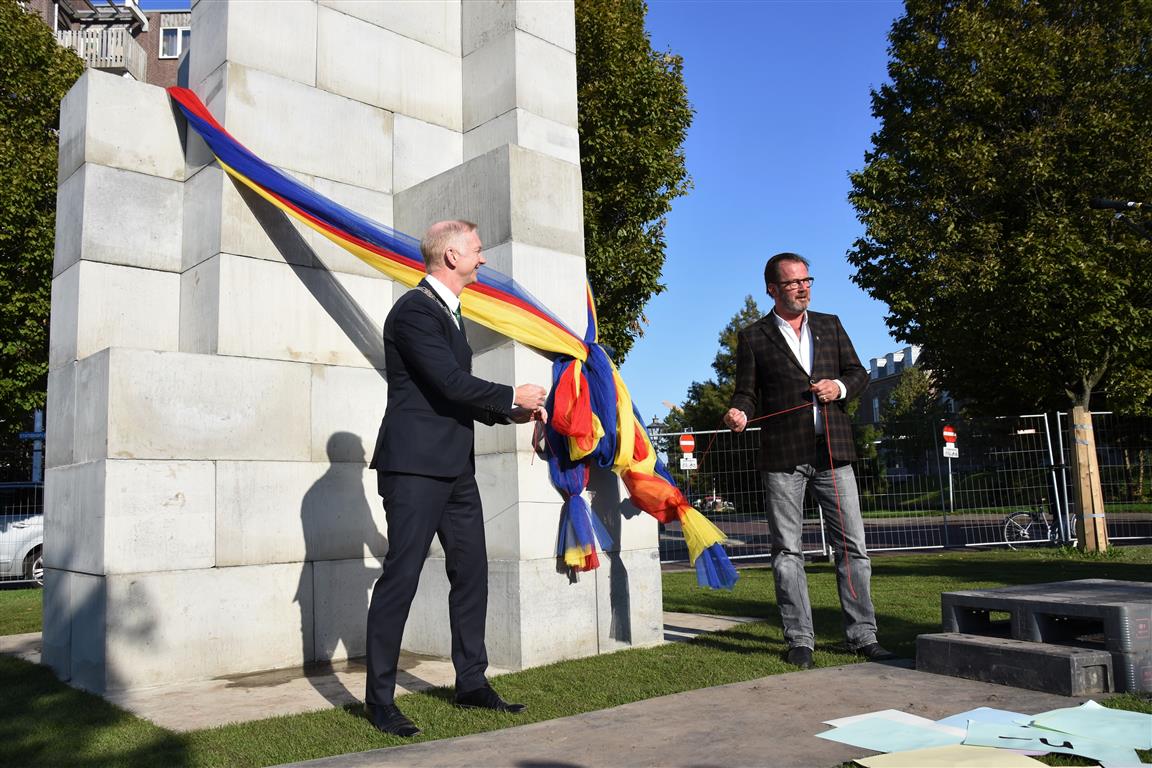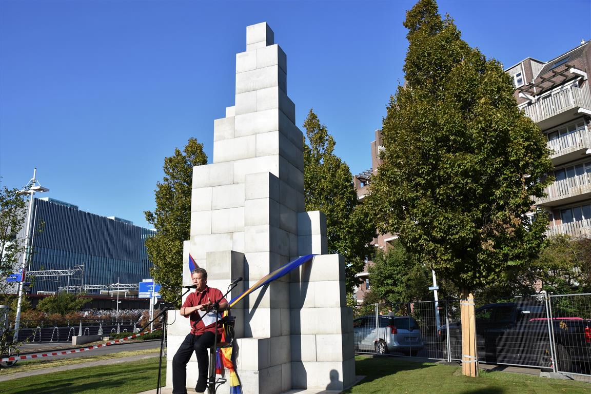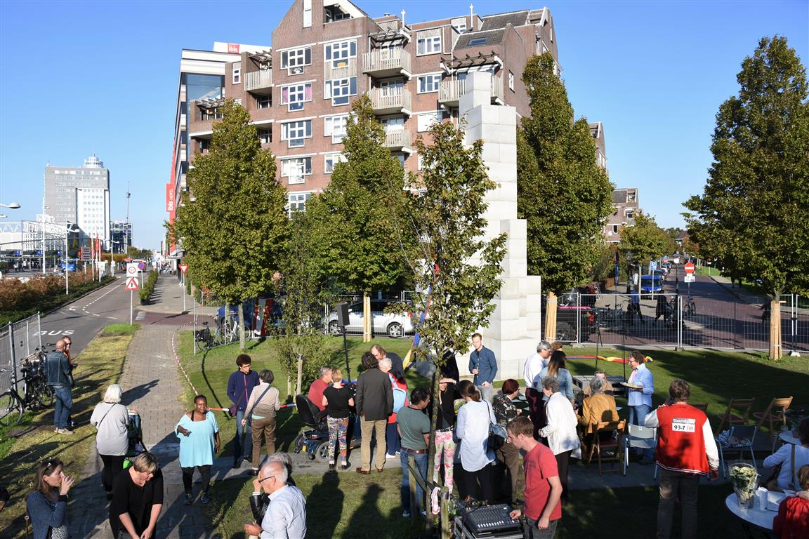 Afgelopen zaterdagmiddag heeft de stichting Vierkant in Vierkant het gelijknamige kunstwerk van de De Stijlgrondlegger Theo van Doesburg overgedragen aan de stad Leiden. Locoburgemeester en wethouder van cultuur Robert Strijk aanvaardde het samen met fractievoorzitter Walter van Peijpe van GroenLinks. Hij diende eerder dit jaar in de Leidse gemeenteraad een motie in om de nog ontbrekende 30.000 euro die nodig waren voor de realisatie van het werk beschikbaar te stellen. Dat werd raadsbreed gesteund.