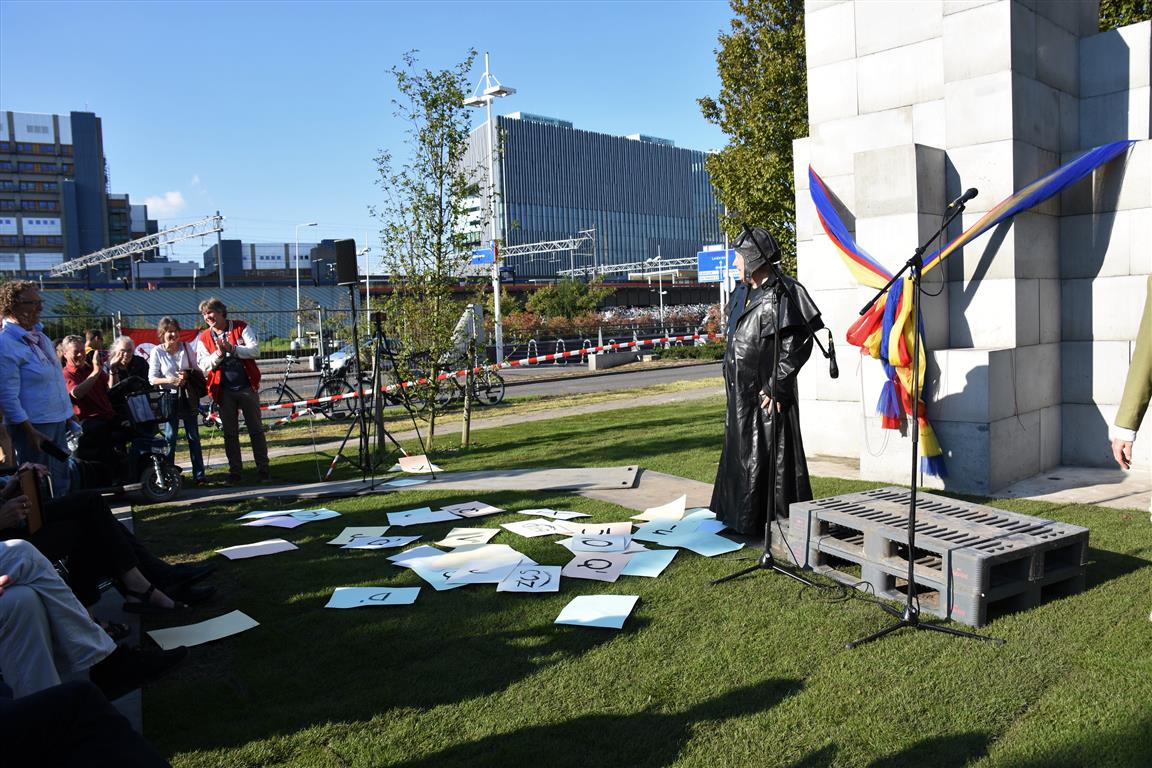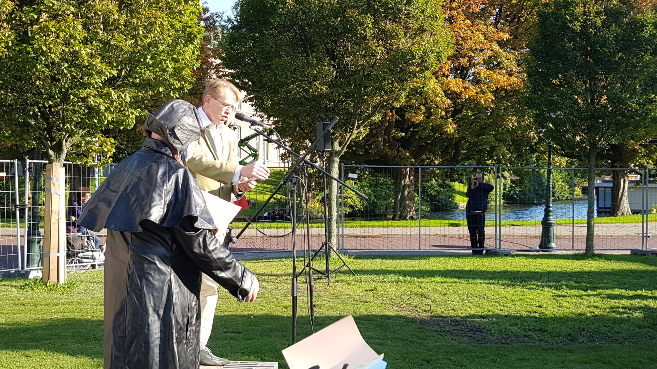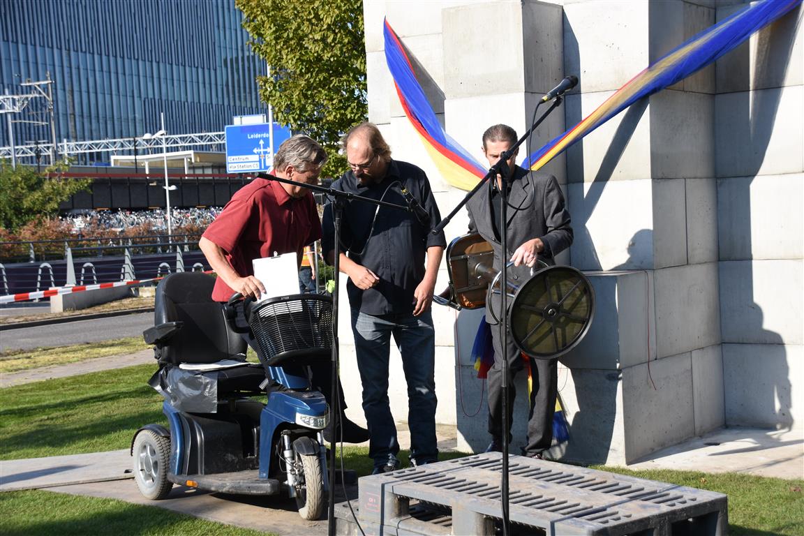 De overdracht ging gepaard met toespraken van de meest betrokkenen. De Leidse dichter Leo van Zanen droeg twee gedichten voor van Theo van Doesburg die onder de naam I.K. Bonset ook als dichter actief was.