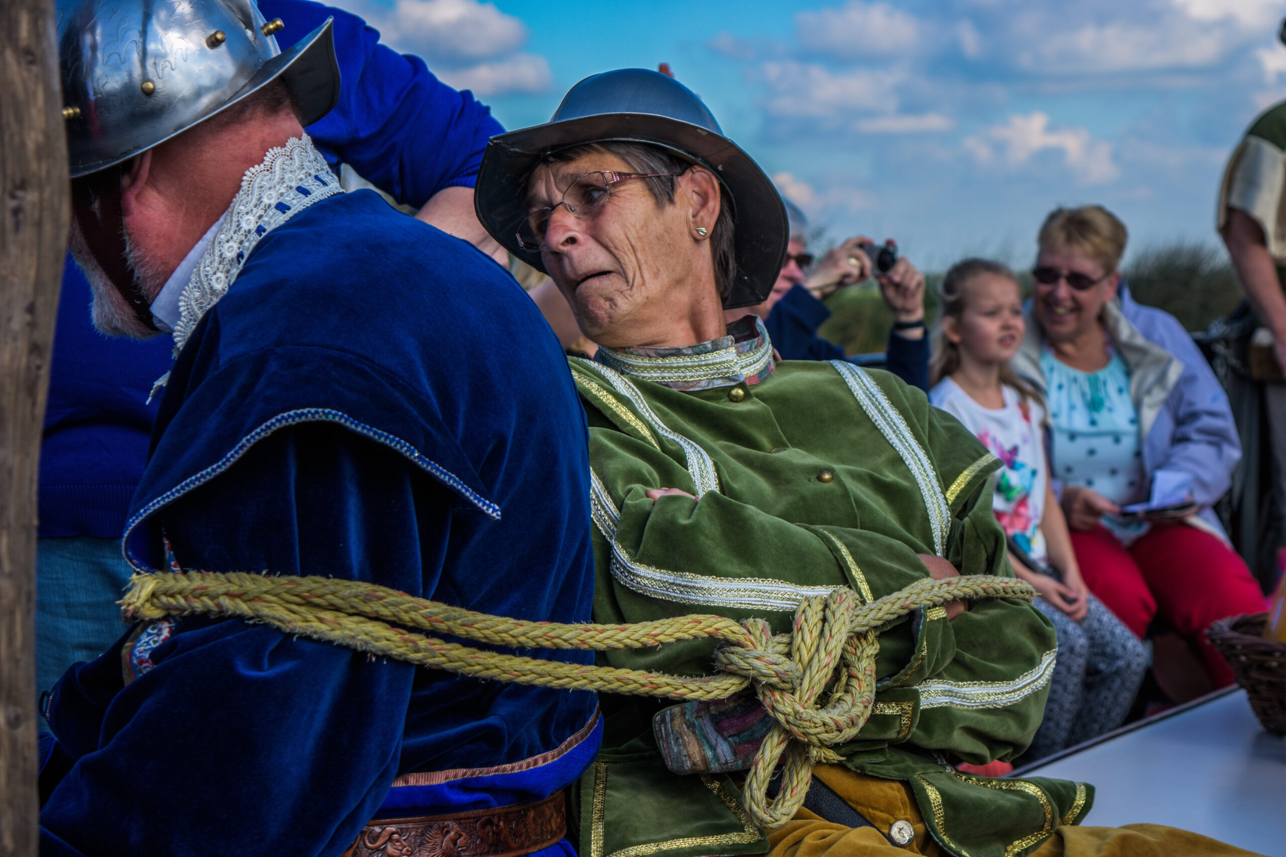 De bemanning, als geuzen verkleed, liet samen met de kinderen (en ouders / begeleiders) een stukje geschiedenis in spelvorm zien.