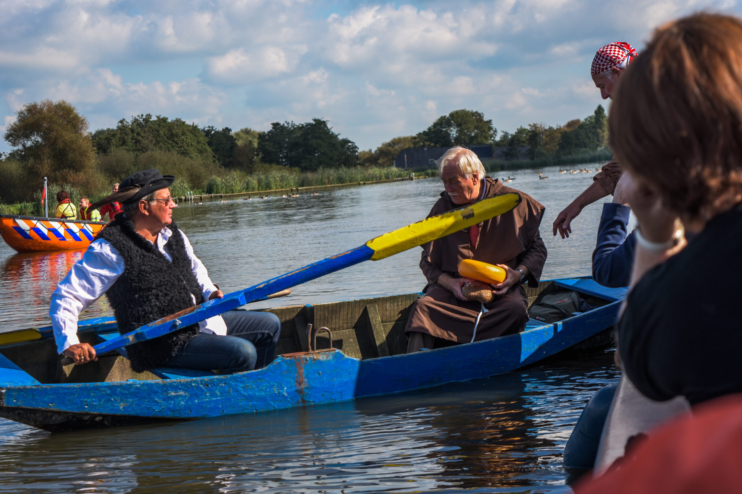 Naast de vaartocht kon er bij de speciaal voor de gelegenheid versierde boerderij brood worden gebakken en waren er demonstraties van oude ambachten. De smit liet zien hoe je ijzer bewerkbaar maakt boven het hete vuur en Vrouw Holle spon schapenwol van ’t Geertje tot draden met haar spinnenwiel.