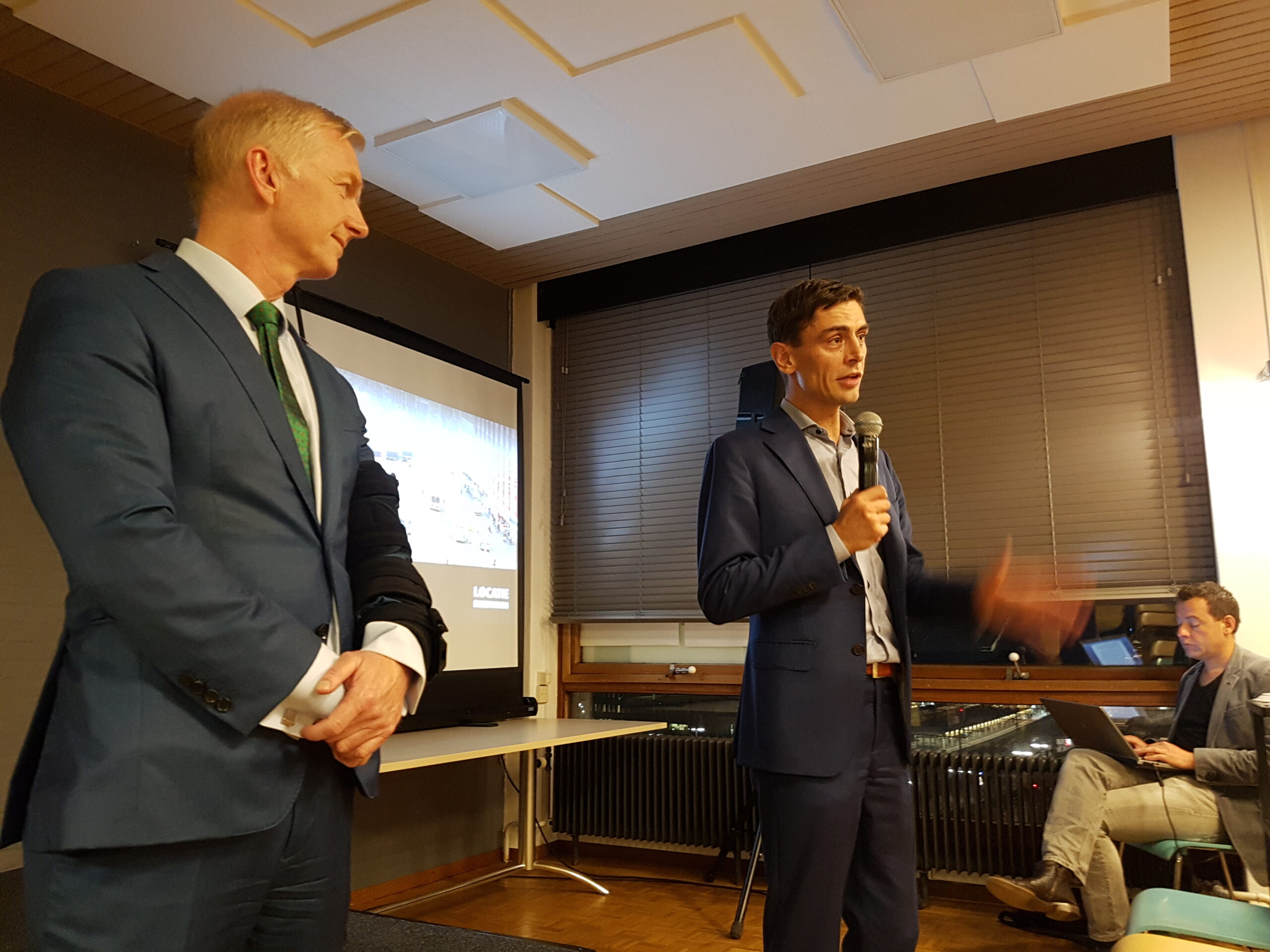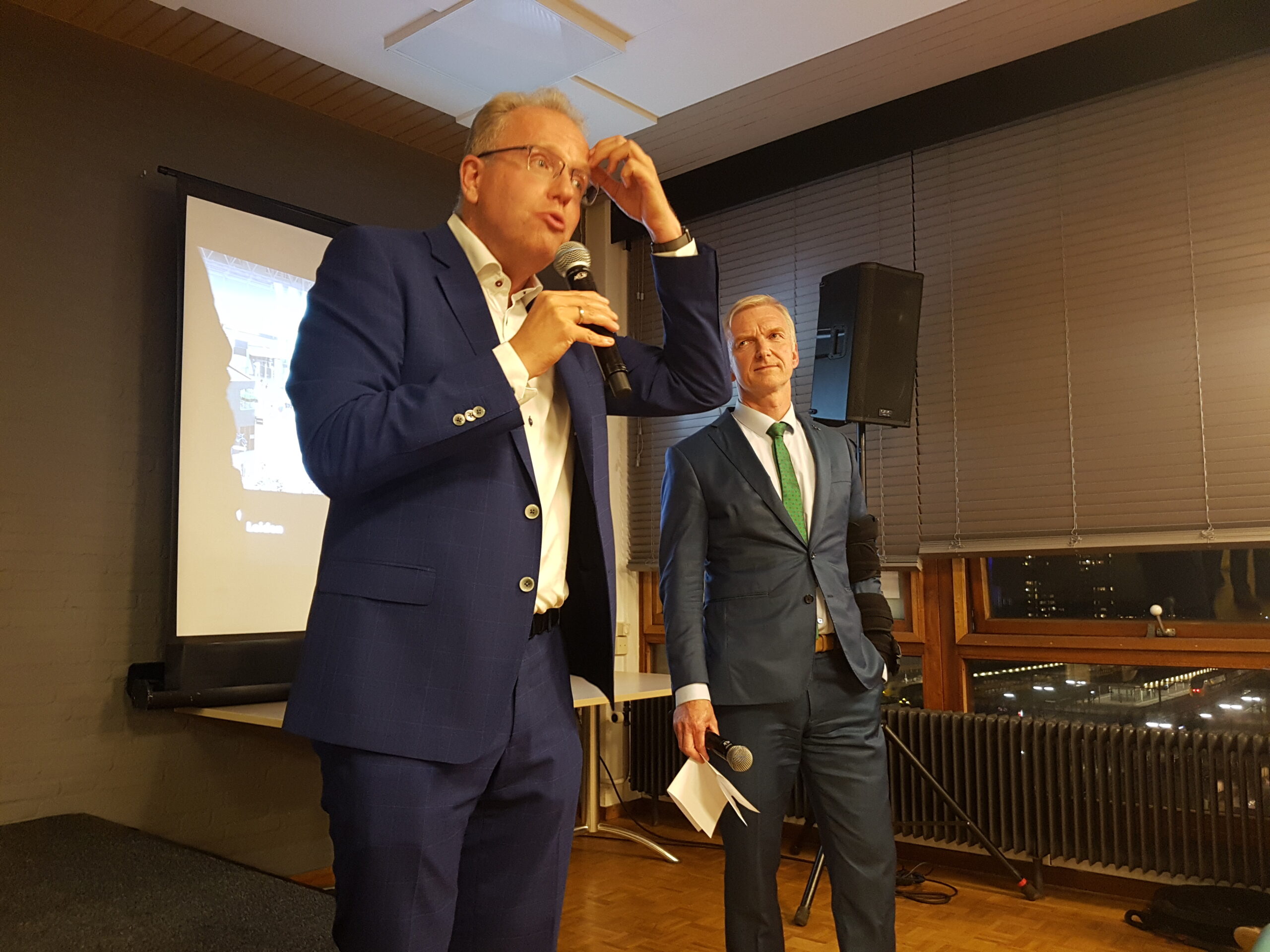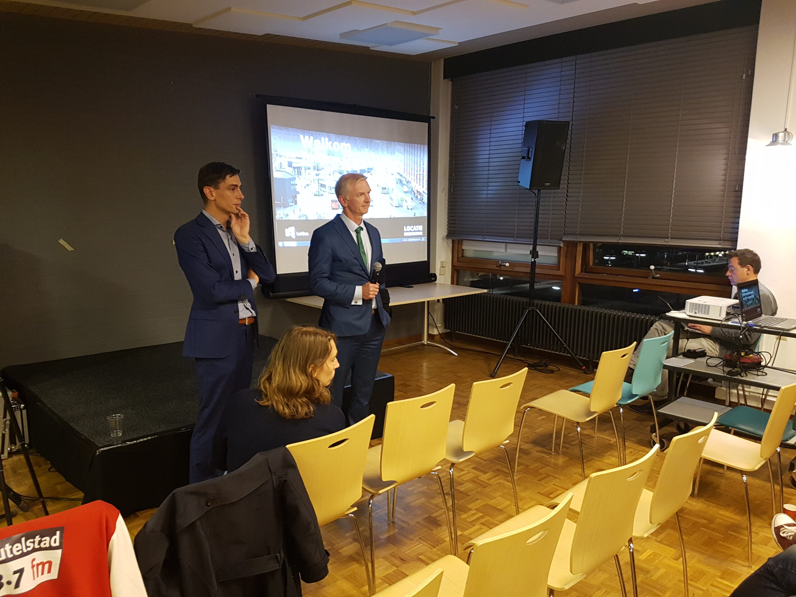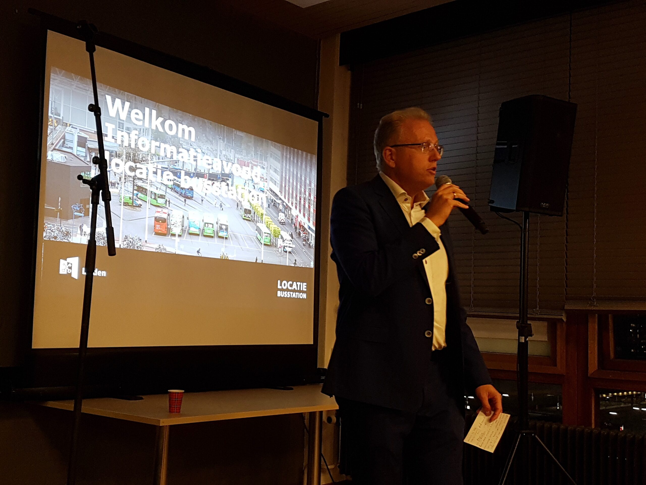 De wethouders Laudy en Strijk gaven gisteravond tekst en uitleg over het besluit om een nieuw compact busstation te realiseren op de plek waar de bussen nu ook staan. Hun gehoor bestond uit betrokken omwonenden en de leden van de klankbordgroep die de afgelopen maanden heeft meegedacht over de verschillende oplossingen voor een nieuw busstation.