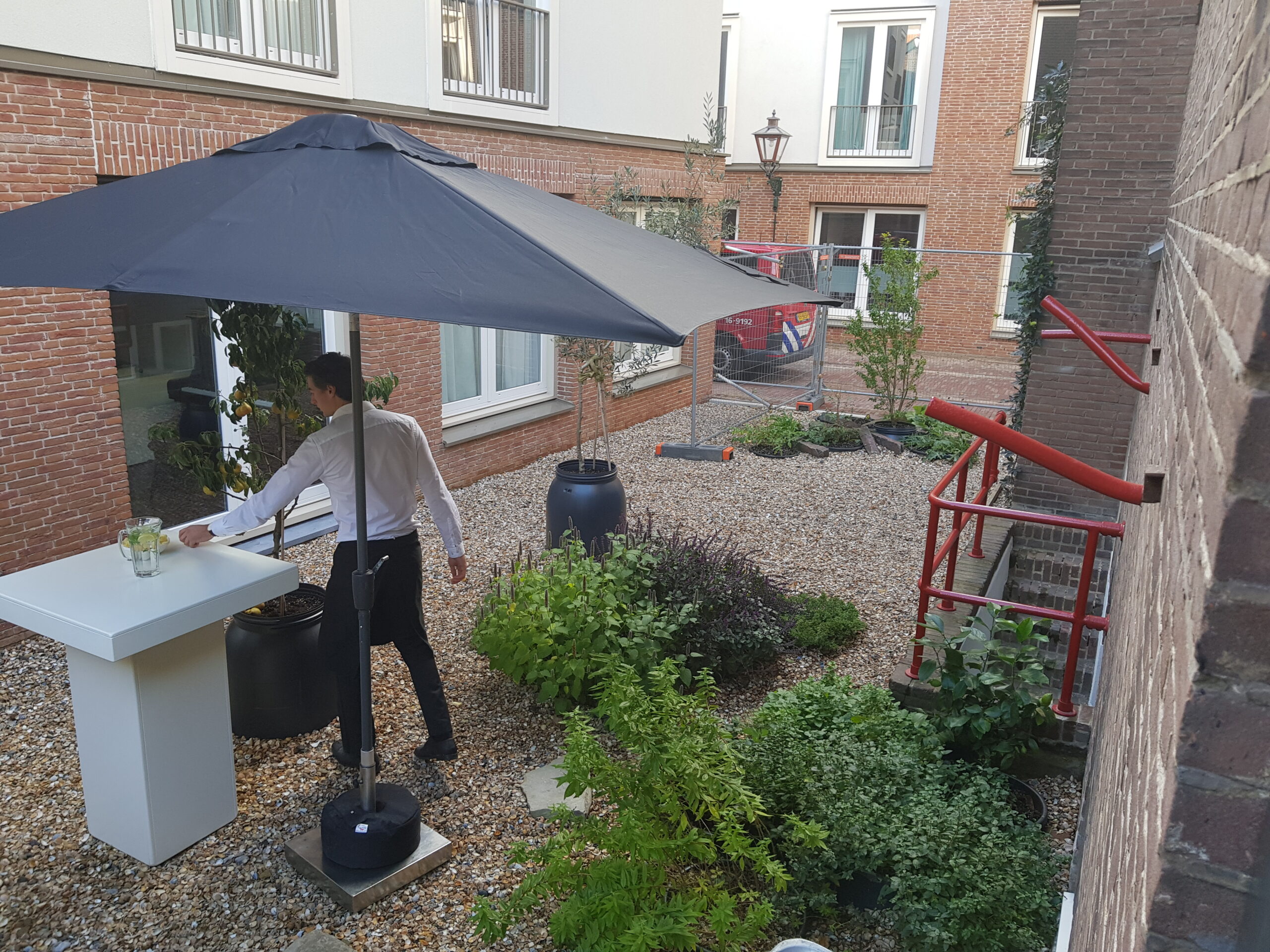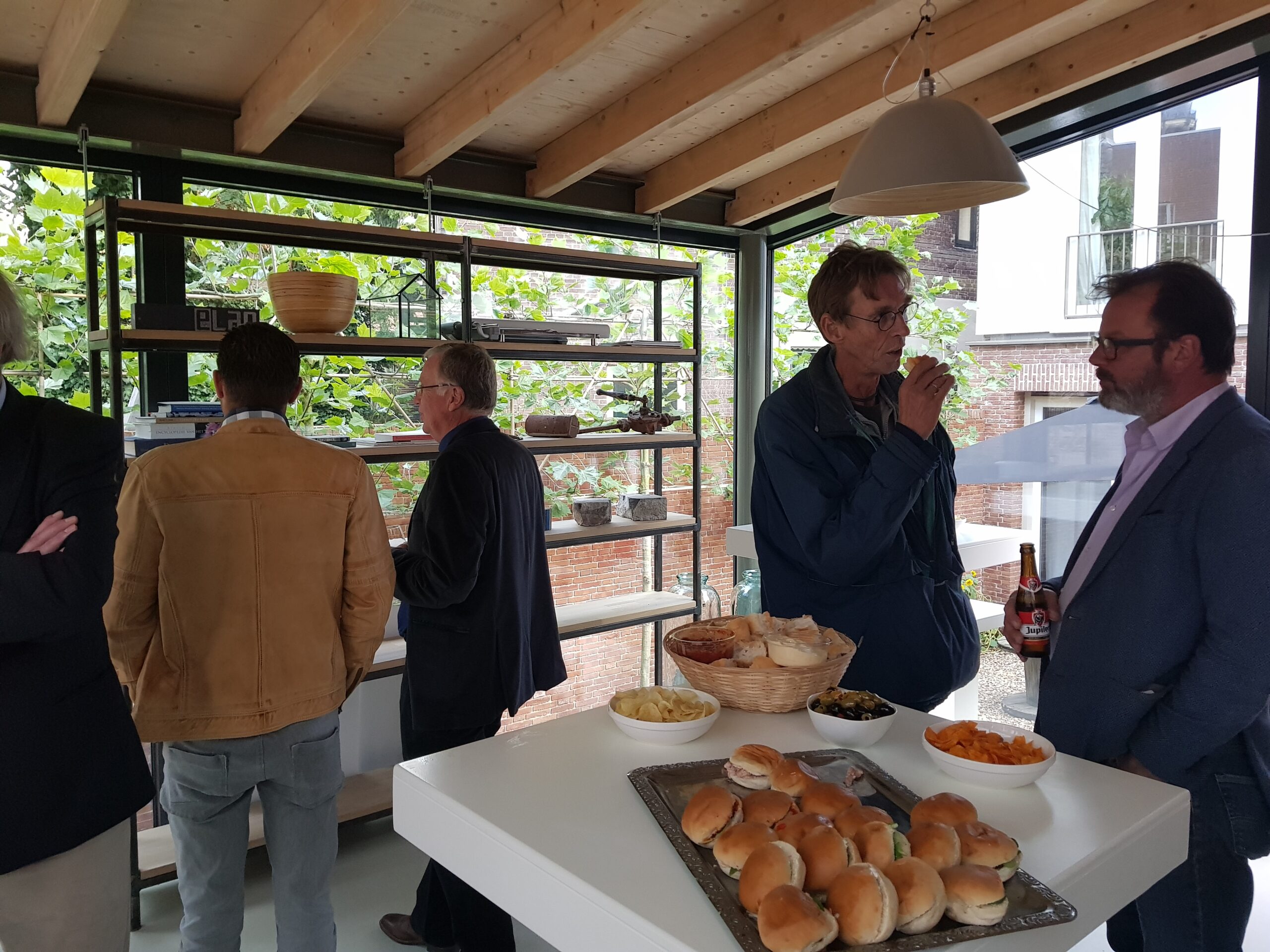 De verbouwing van brandslangendroogtoren naar kantoor begon ongeveer een jaar geleden. “De grootste werkzaamheden zijn nu achter de rug, de tuin staat er mooi bij en de plek wordt door steeds meer mensen ontdekt,” vertelt een opgetogen Verheijen die voor zijn feestje zo’n beetje iedereen had uitgenodigd die op één of andere manier betrokken is geweest bij de transformatie.