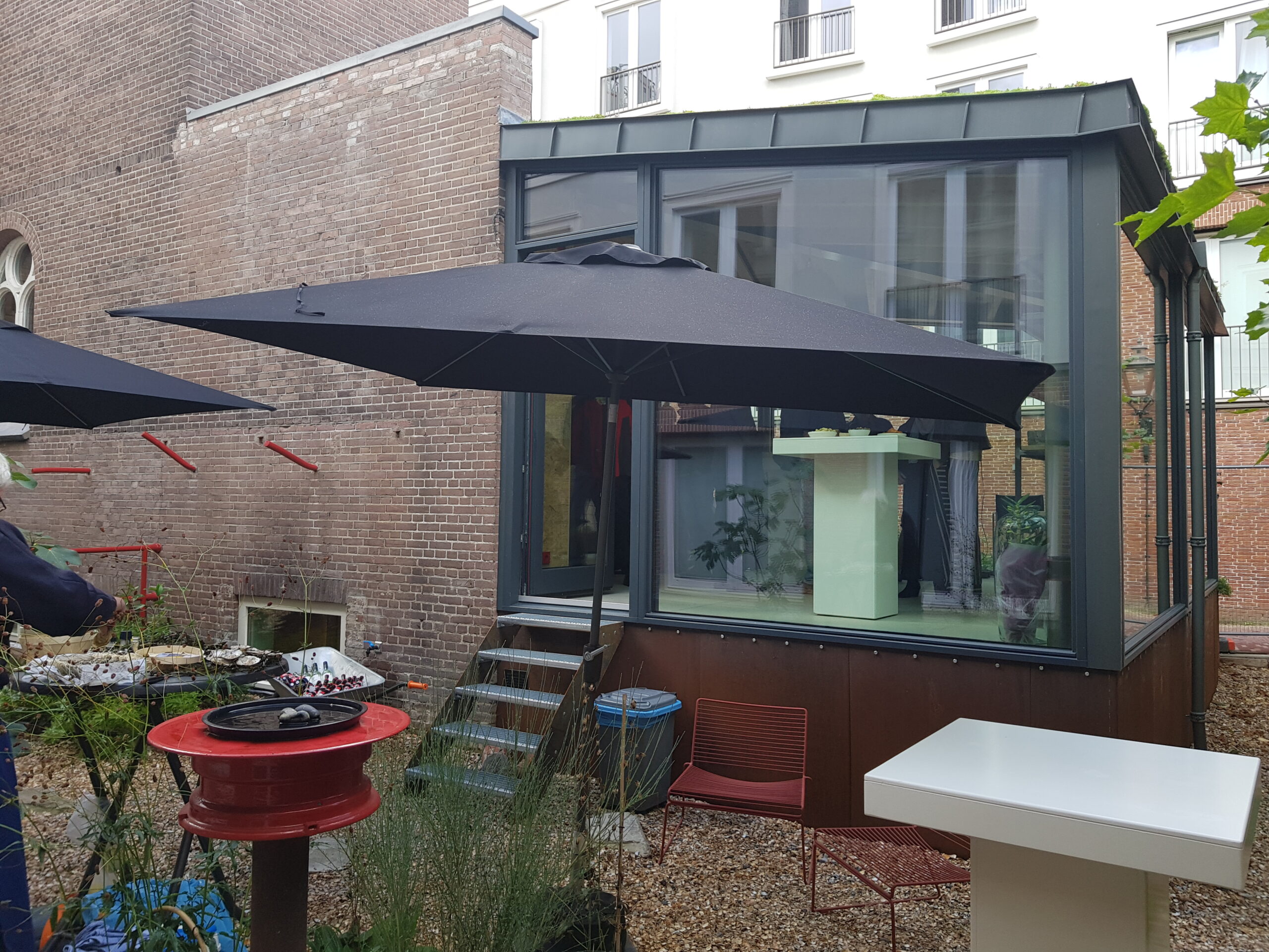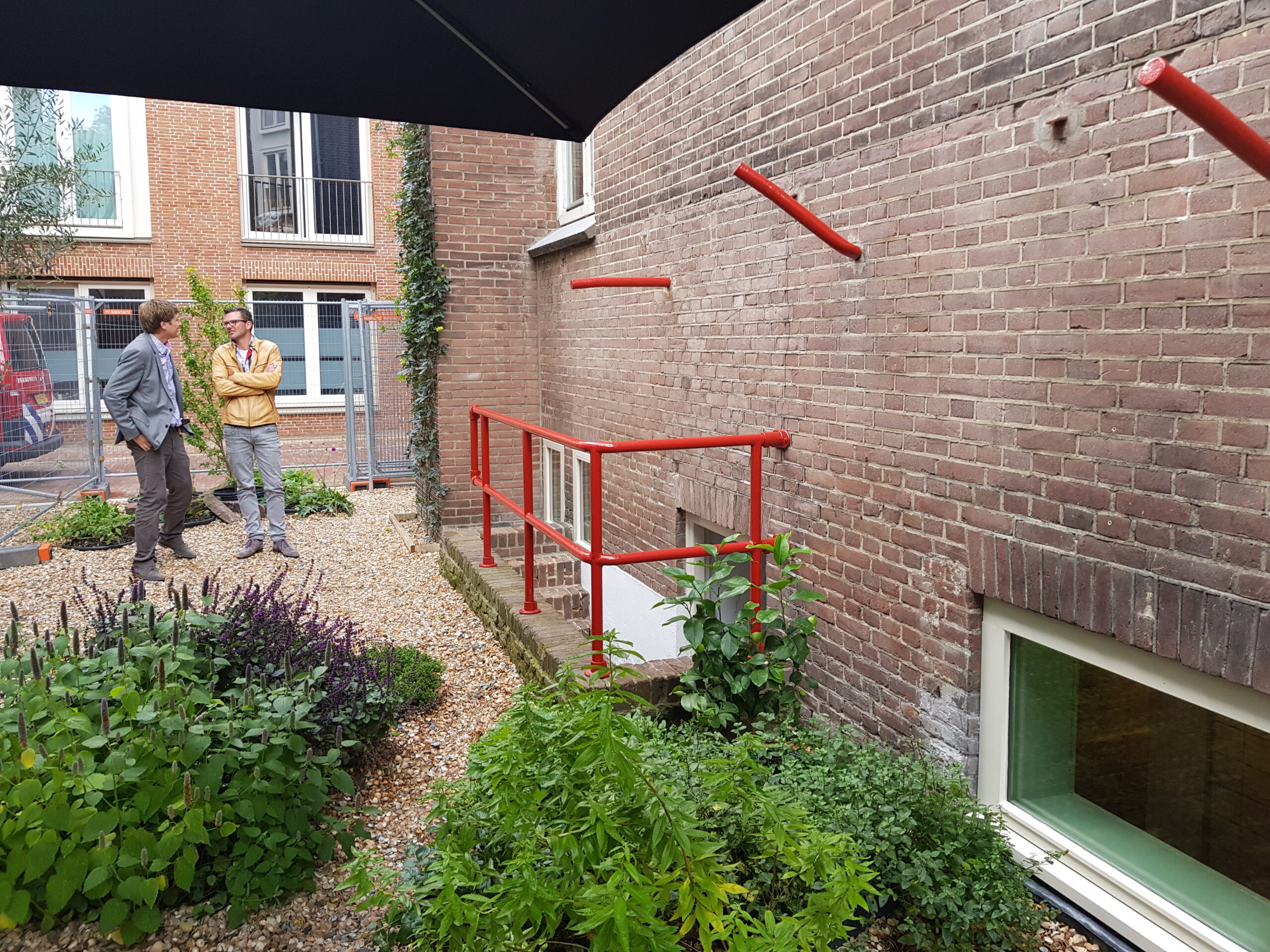 De oude slangentoren in de Plaatsteeg, tussen Langebrug en Breestraat, is afgelopen week feestelijk in gebruik genomen door architect Jelle Verheijen en partner Alice Clijncke. Opening zou normaal het woord zijn na afronding van zo’n ingrijpende restauratie en verbouwing, maar echt open is het gebouw nu niet. De aangebouwde tuinzaal wel. Die is voor iedereen af te huren als vergaderzaal.
