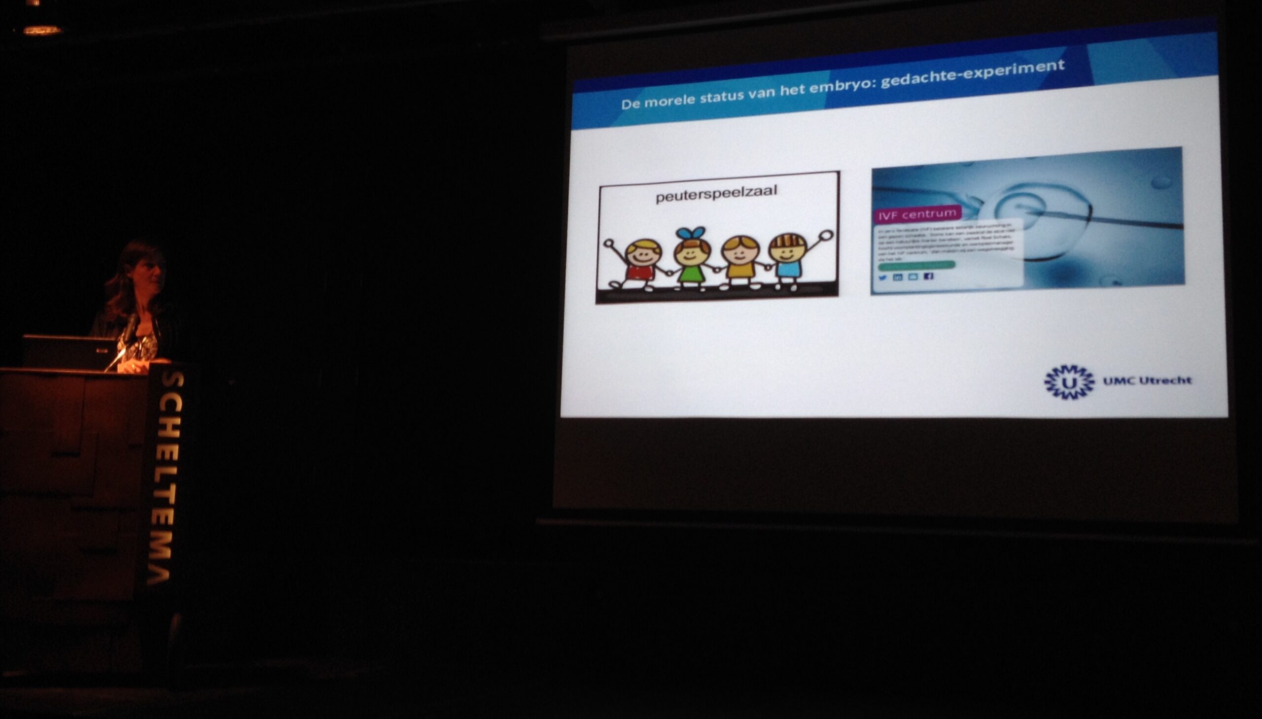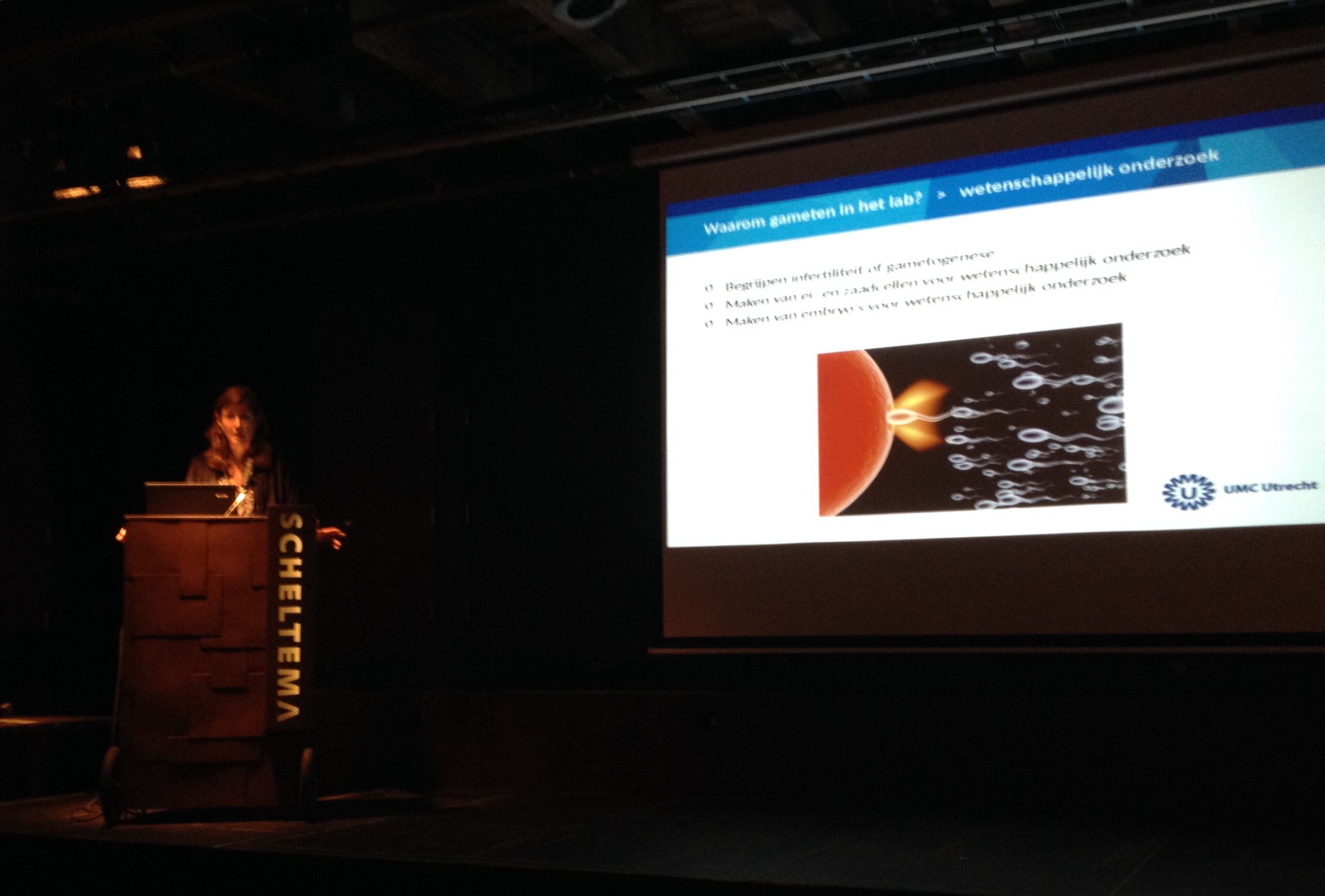 Tot nu lukte het bij muizen. Er bestaan vijf muizen vertelde één van de twee inleiders, professor Sjoerd Repping, hoofd van het Centrum voor Voortplantingsgeneeskunde van het AMC, die op die manier zijn ontstaan. De andere inleider, bioethicus Annelien Bredenoord (Universiteit Utrecht), ging in op mogelijke toekomstbeelden. Het zou mogelijk kúnnen worden kinderen van jezelf te krijgen. Ei- én zaadcel worden dan uit bijvoorbeeld je eigen huidcellen gemaakt.
