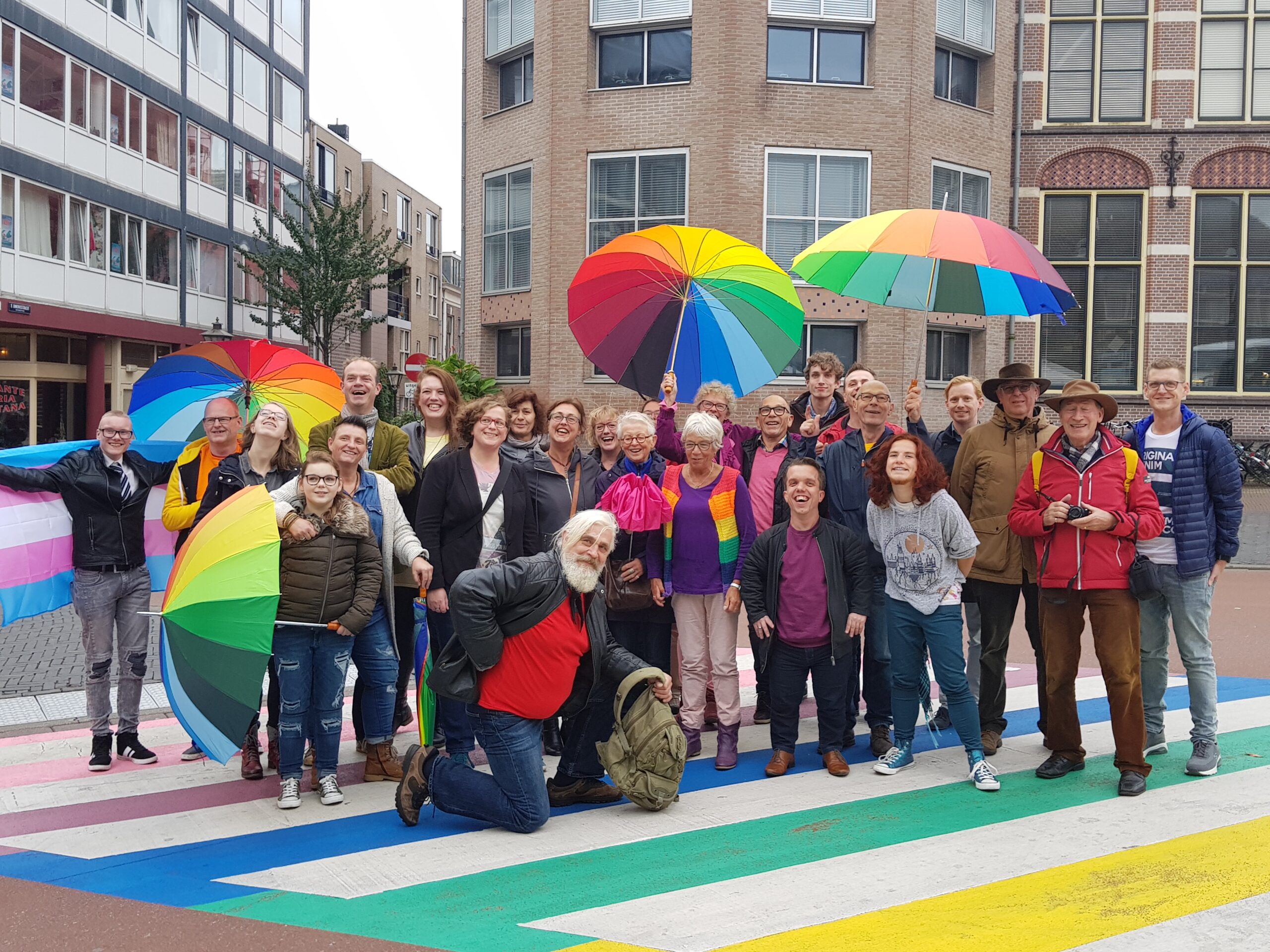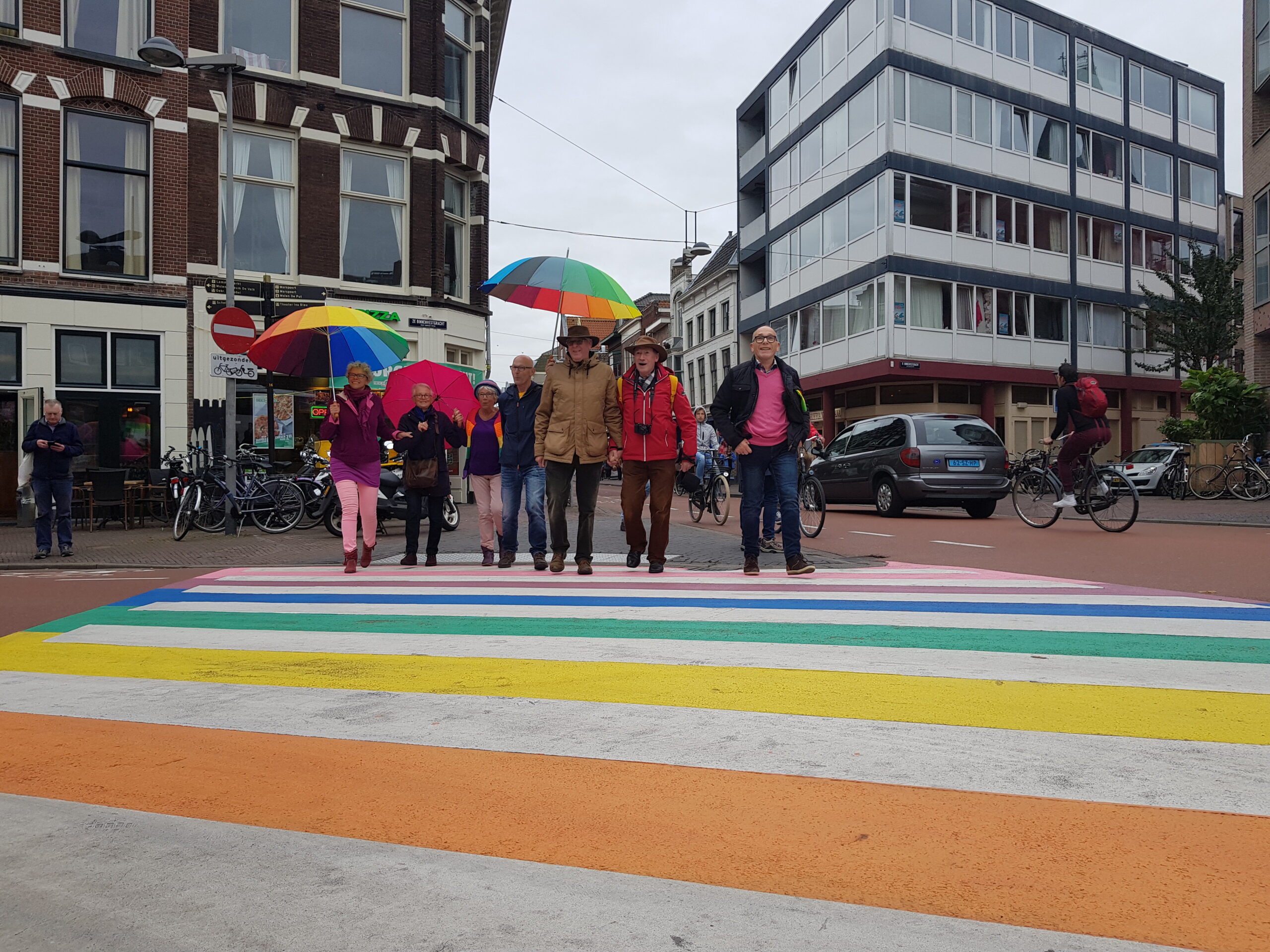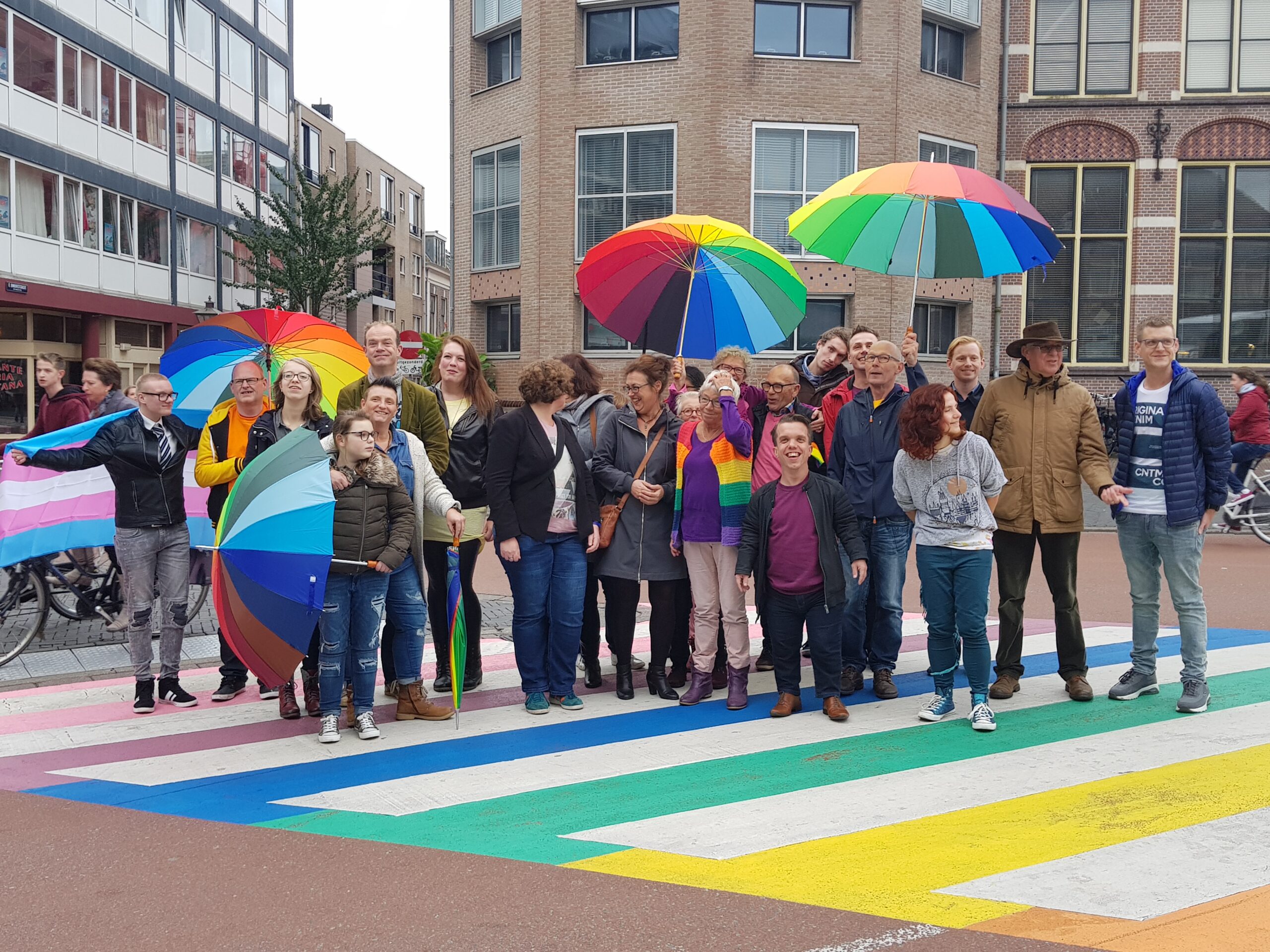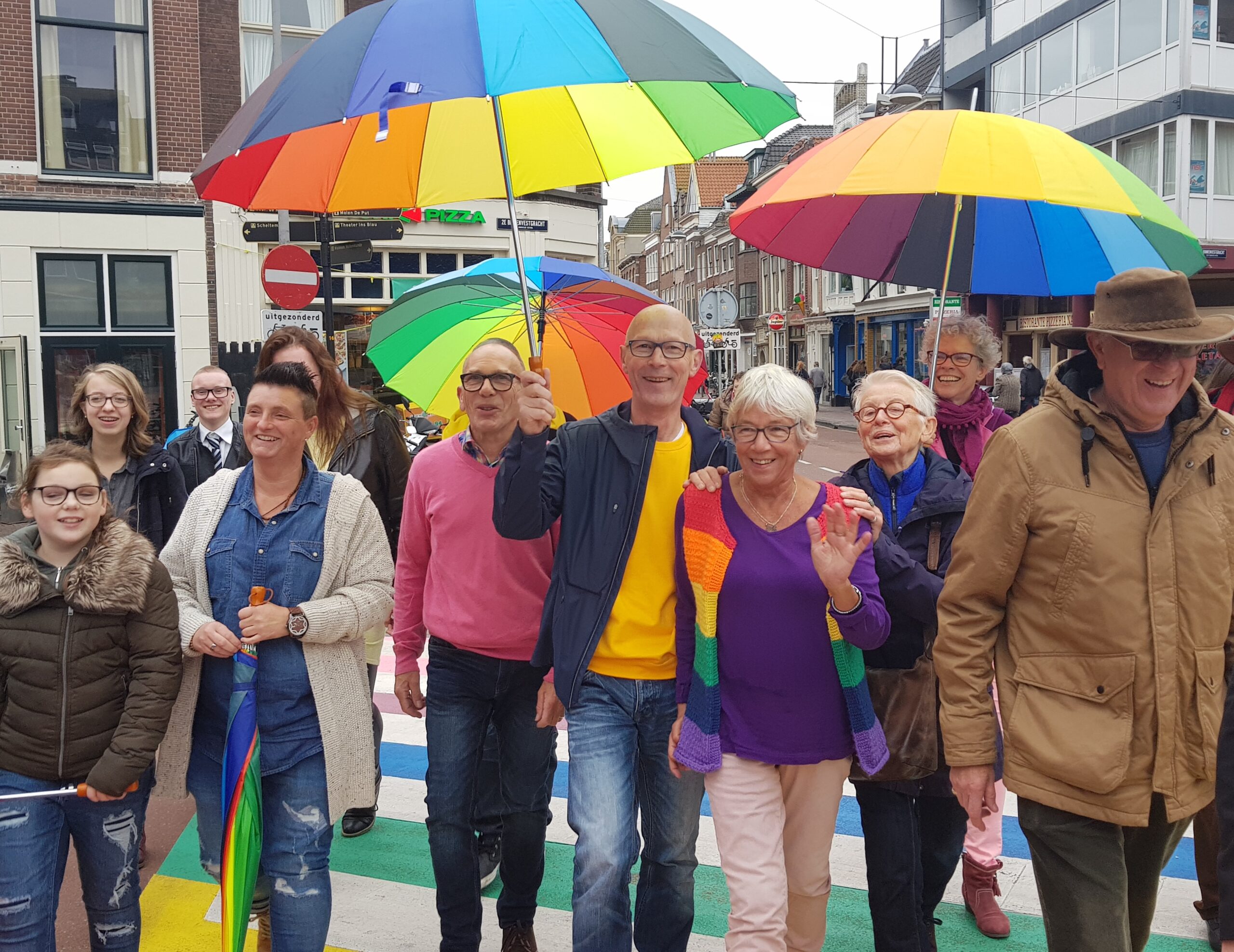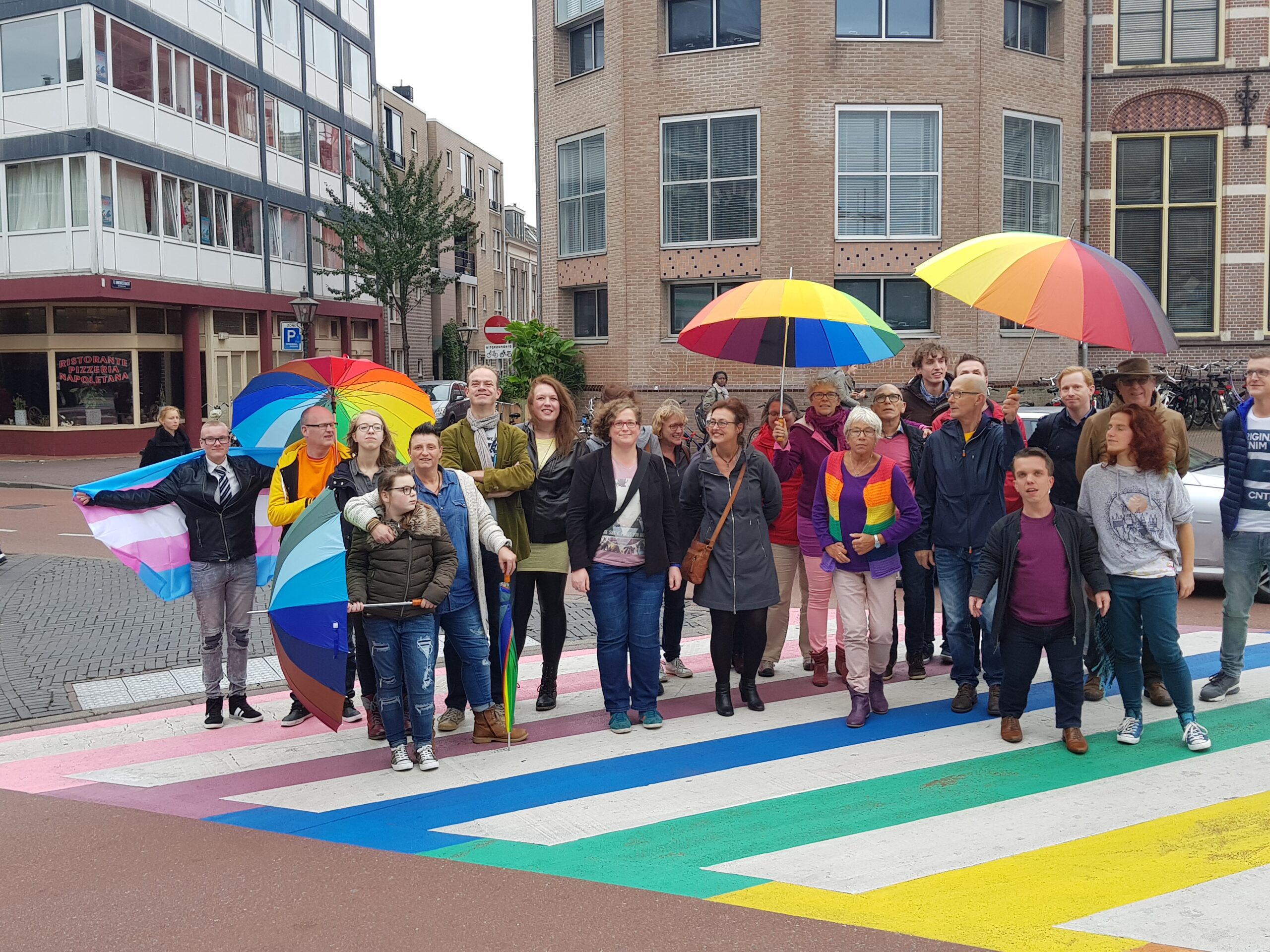 Later op de dag werd op de kruising van de 2e Binnenvestgracht, de Steenstraat en de Stationsweg het nieuwe regenboogzebrapad geopend. De ‘gaybra’ vervangt de kleurige oversteekplaats die enige tijd op de nieuwe Beestenmarkt lag. Dat was een tijdelijke plek, omdat de straat daar nog opnieuw ingericht moest worden.