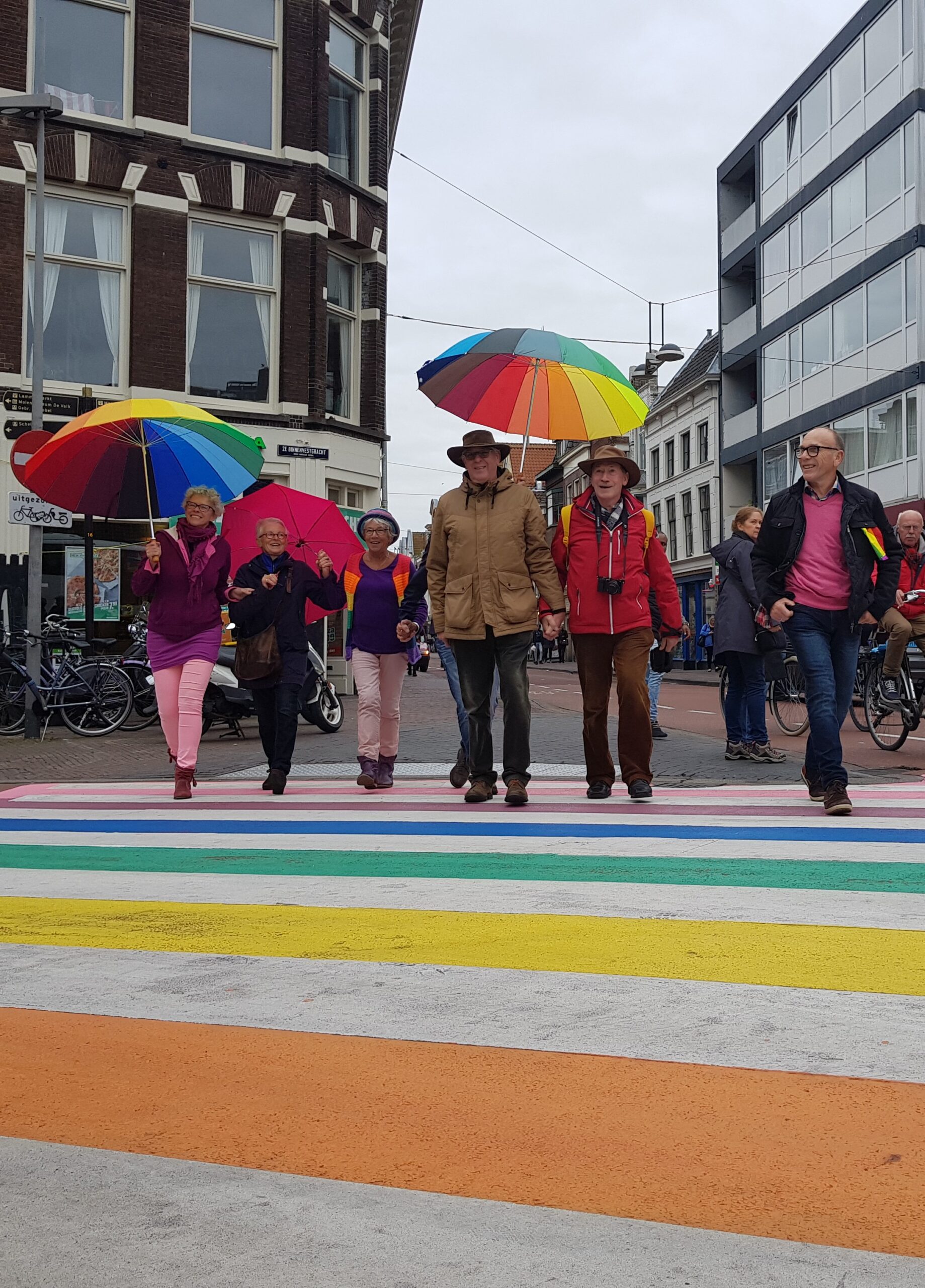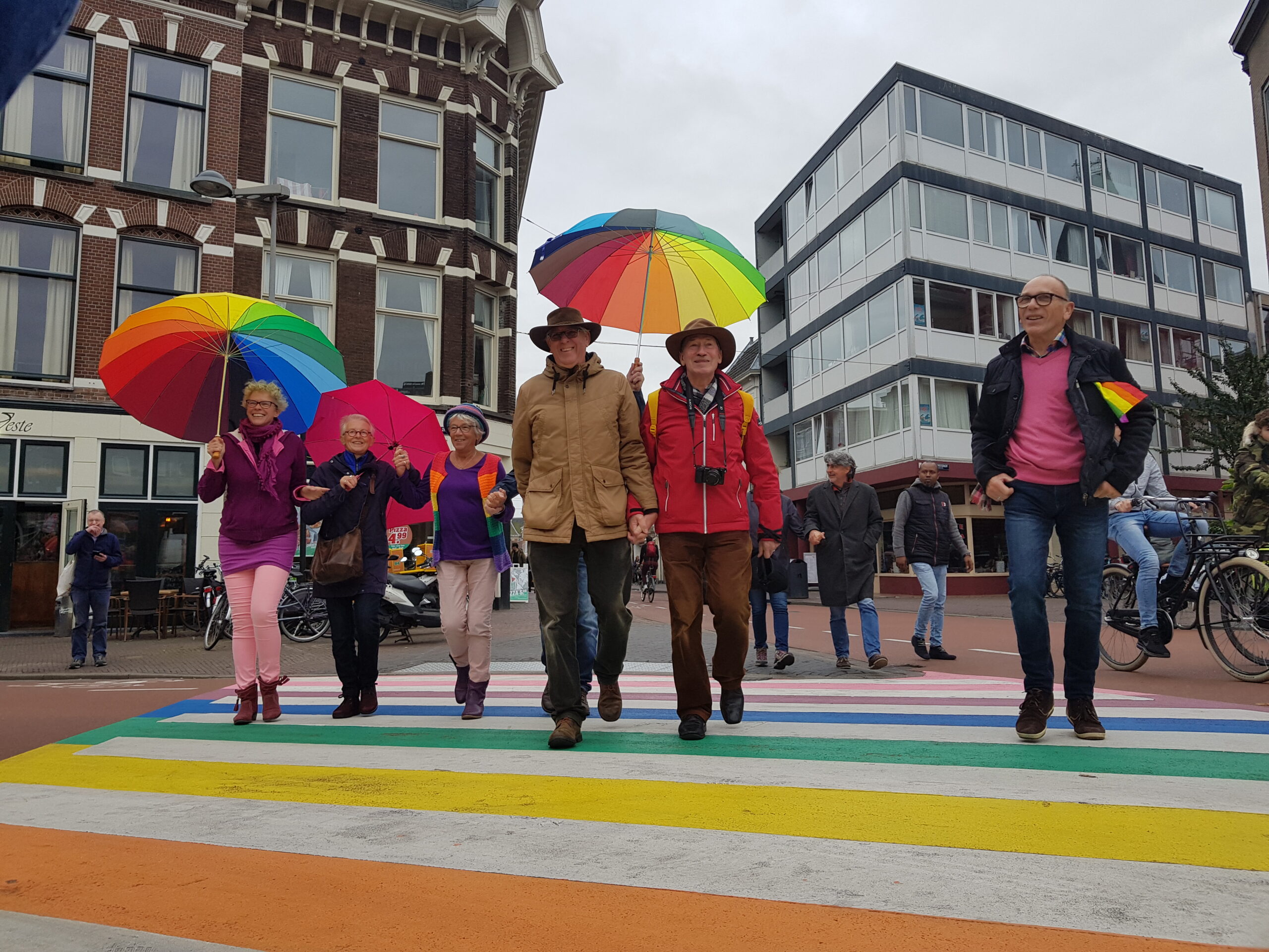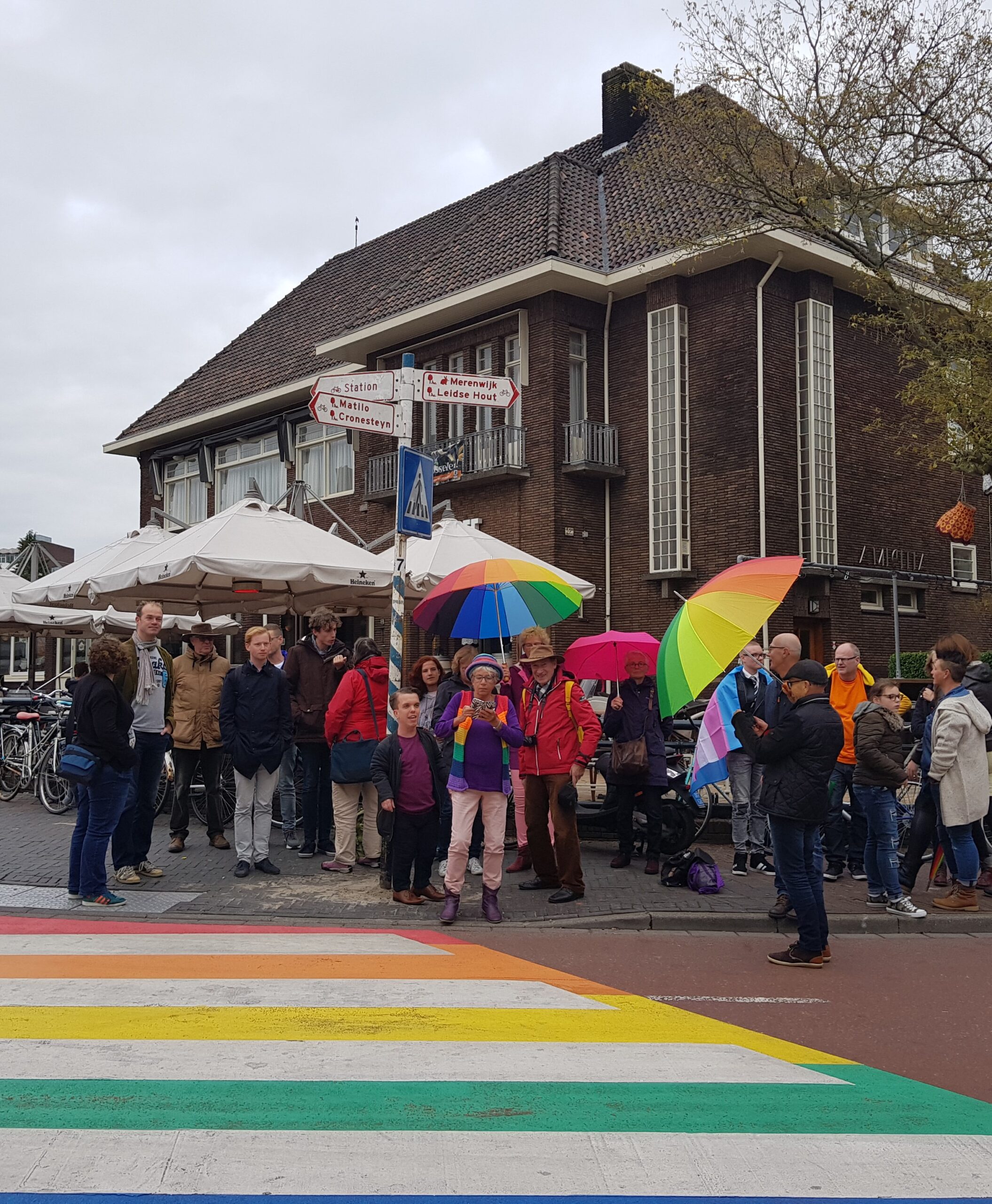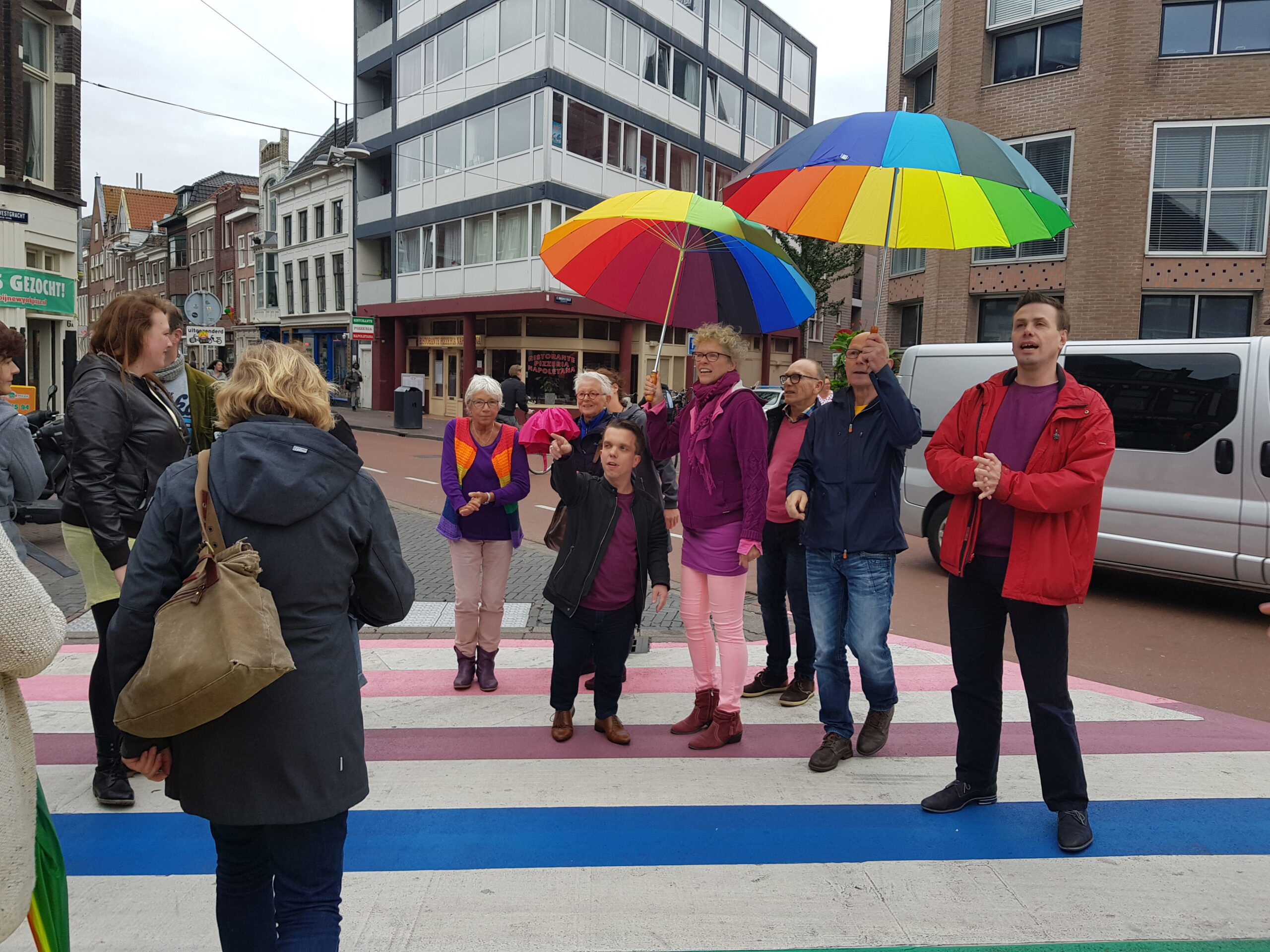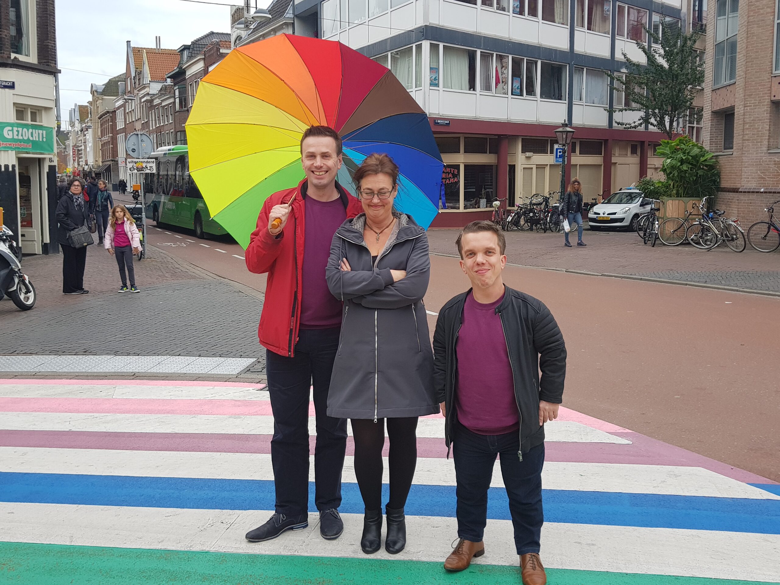 Later op de dag werd op de kruising van de 2e Binnenvestgracht, de Steenstraat en de Stationsweg het nieuwe regenboogzebrapad geopend. De ‘gaybra’ vervangt de kleurige oversteekplaats die enige tijd op de nieuwe Beestenmarkt lag. Dat was een tijdelijke plek, omdat de straat daar nog opnieuw ingericht moest worden.