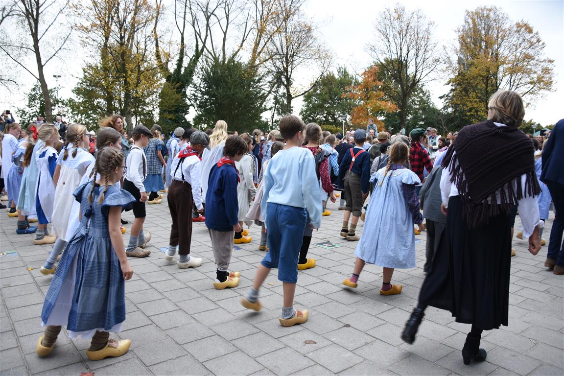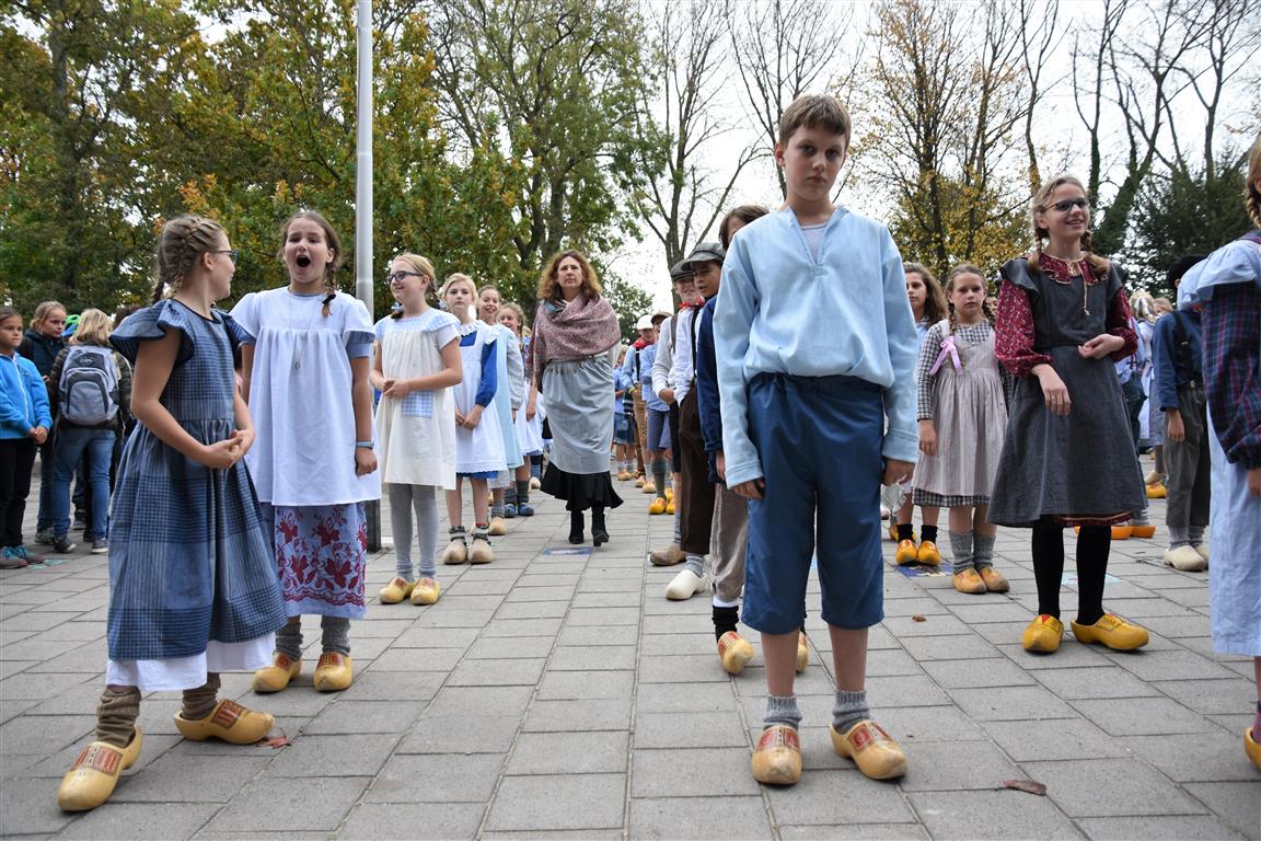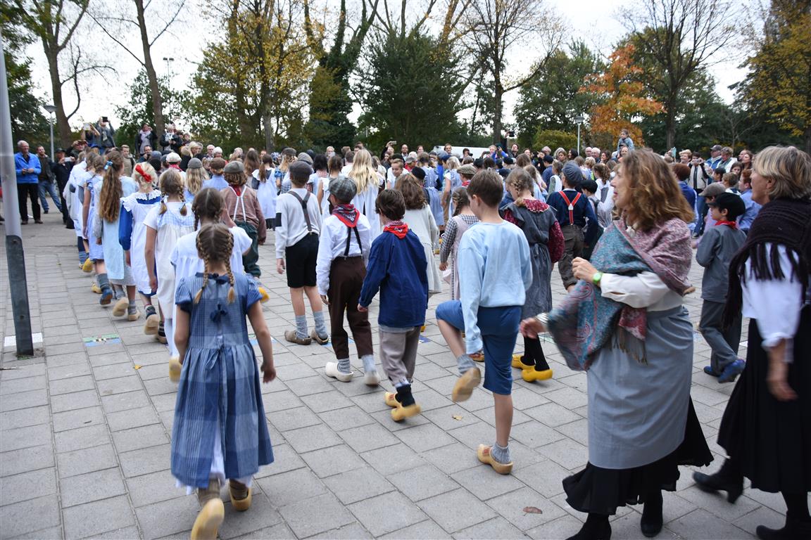 De historische aandoende activiteiten vormden de afsluiting van het Ot en Sien project van de school. De kinderen dansten op het schoolplein in kringen en rijen. Net zoals ze dat in de vroege jaren van de vorige eeuw ook deden. Op die manier kregen de leerlingen een levende geschiedenisles die ze bovendien aan hun ouders konden laten zien. Hoogtepunt was de door de leerlingen ingestudeerde klompendans.