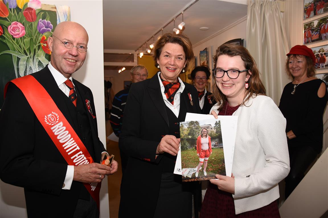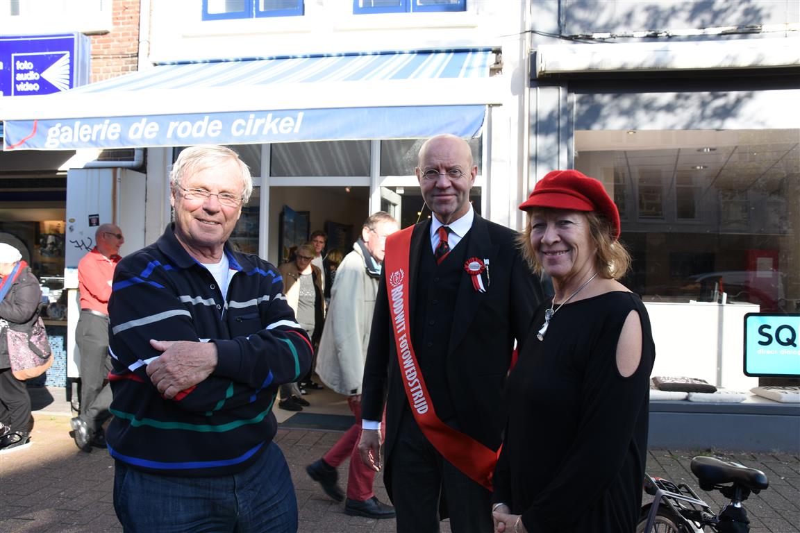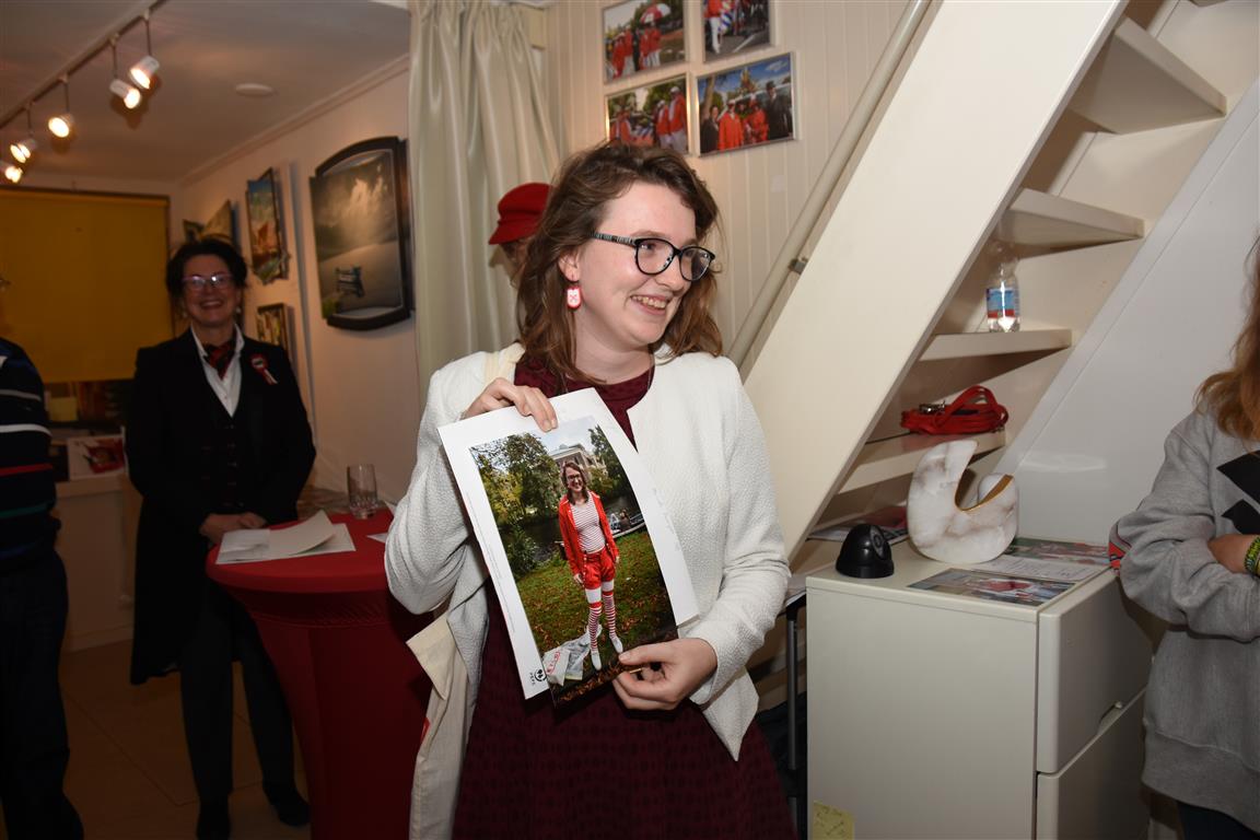 Zaterdagmiddag vond bij galerie de rode cirkel de prijsuitreiking plaats van de Rood-Wit wedstrijd. Een wedstrijd waarin de mooist rood-wit uitgedoste Leidenaren langs de route van de optocht worden gefotografeerd. Ruim voor 16.00 uur stond alles en iedereen klaar zodat om 15.74 uur precies, in de rest van Nederland is dat 16.14 uur, de prijsuitreiking kon beginnen.