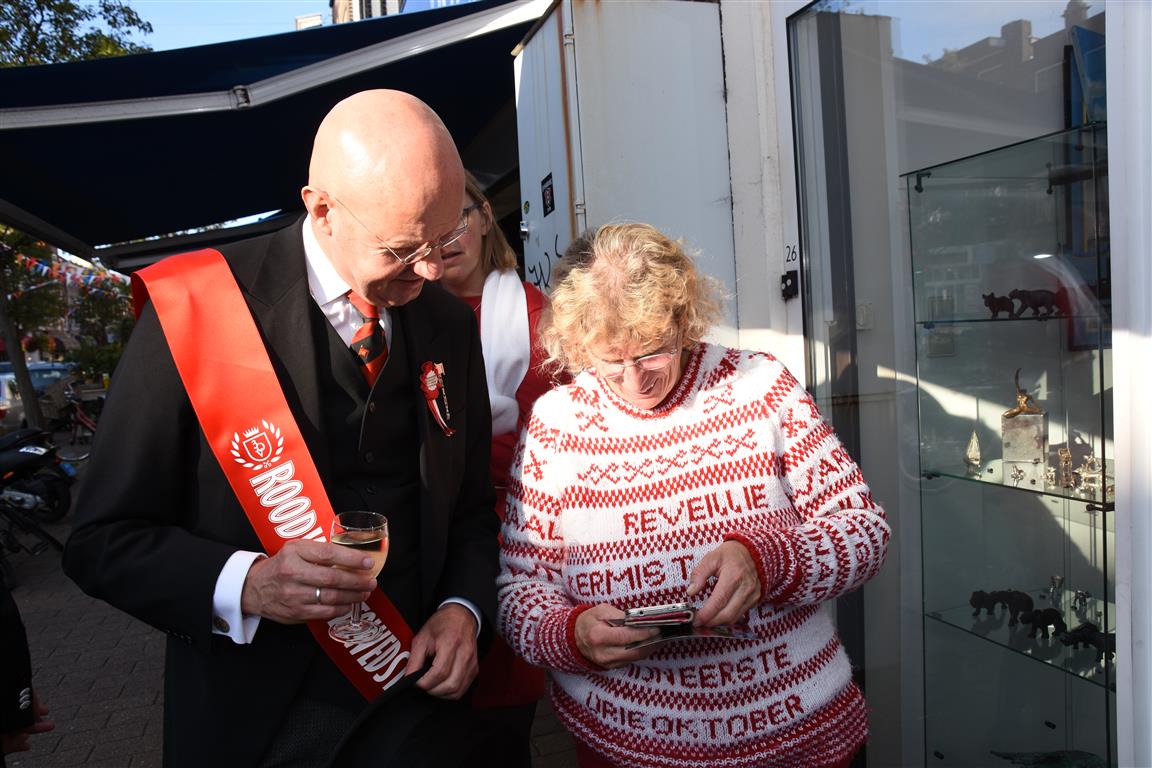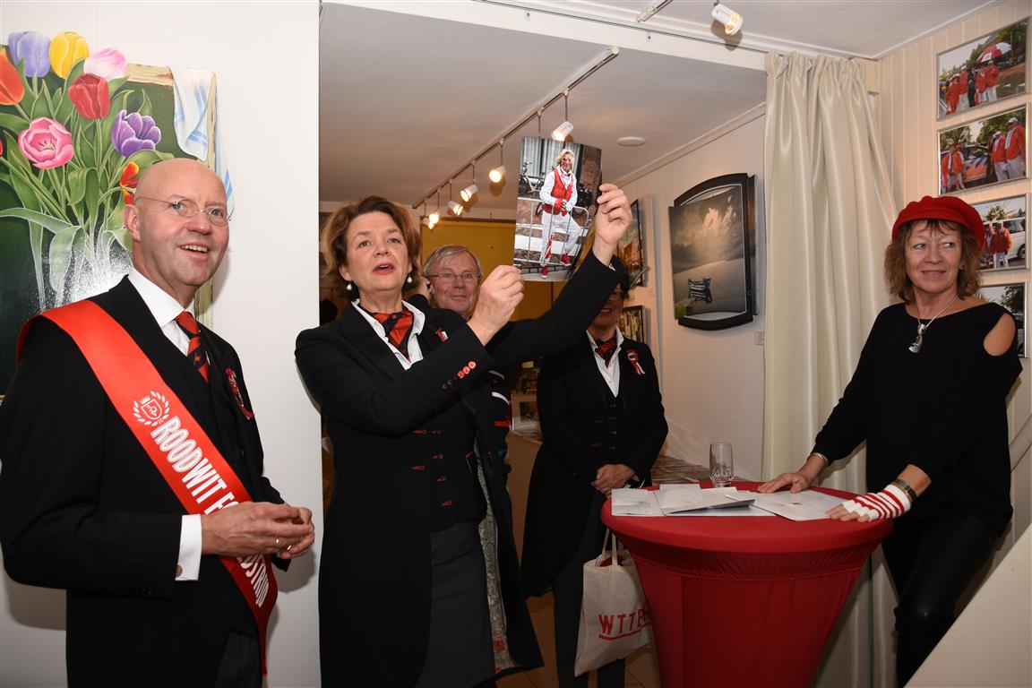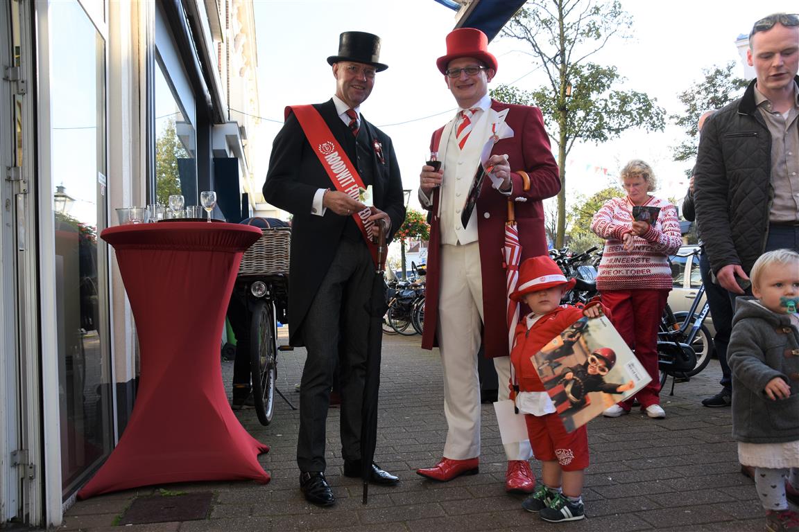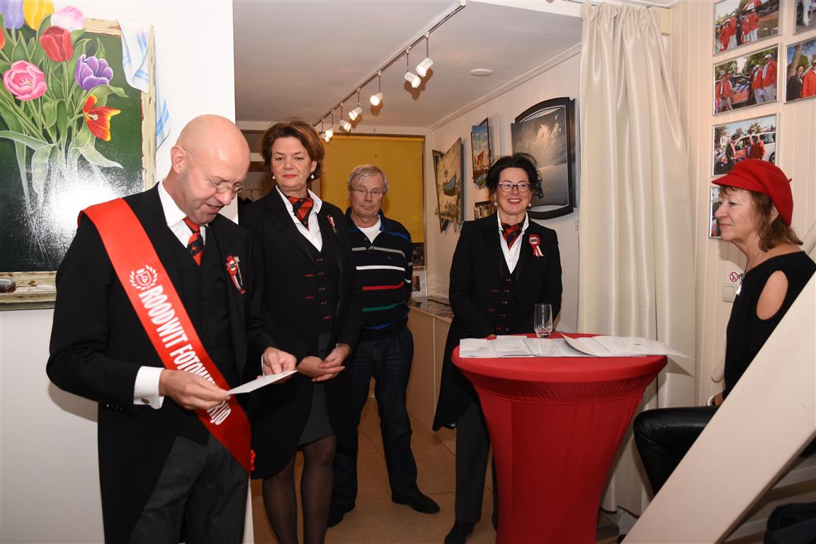 Zaterdagmiddag vond bij galerie de rode cirkel de prijsuitreiking plaats van de Rood-Wit wedstrijd. Een wedstrijd waarin de mooist rood-wit uitgedoste Leidenaren langs de route van de optocht worden gefotografeerd. Ruim voor 16.00 uur stond alles en iedereen klaar zodat om 15.74 uur precies, in de rest van Nederland is dat 16.14 uur, de prijsuitreiking kon beginnen.