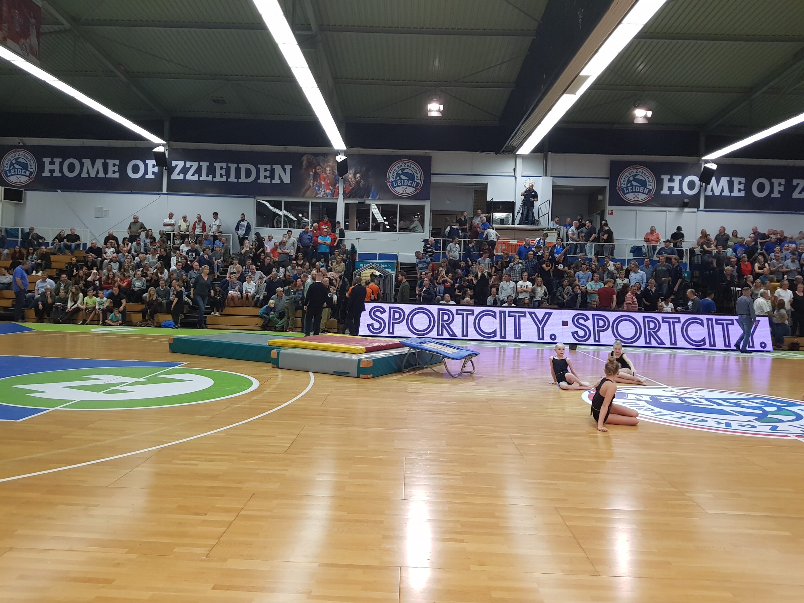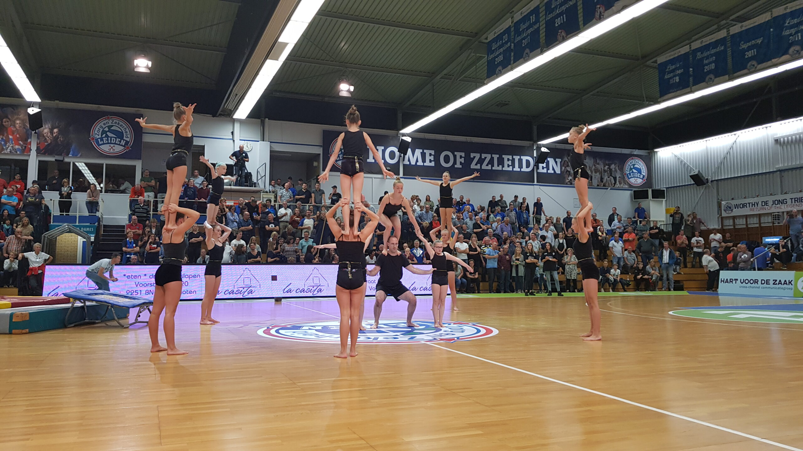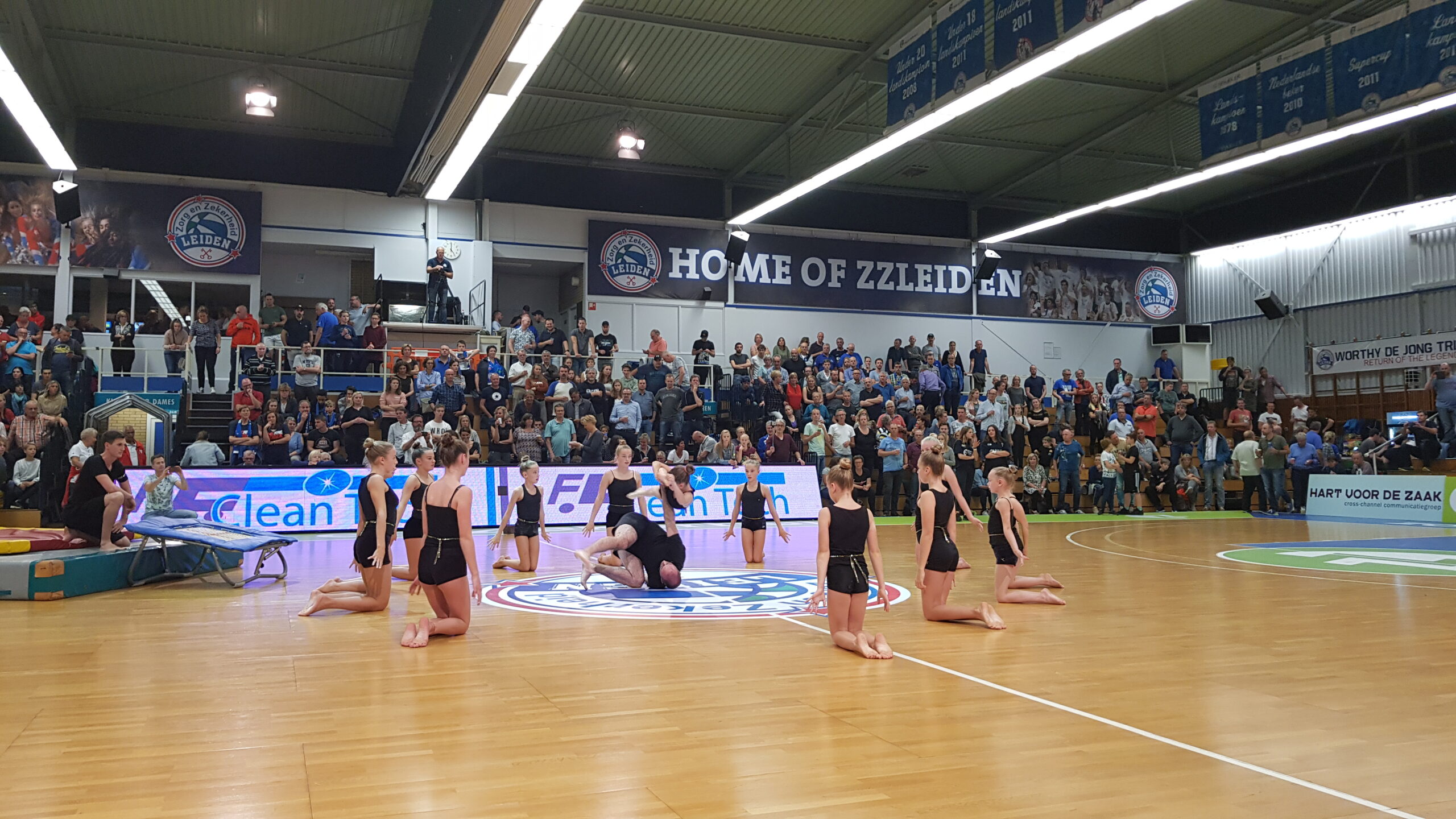 De grootste sportvereniging van Leiden timmert flink aan de weg. Gymsport Leiden telt inmiddels zo’n 1.500 leden en die laten maar wat graag ook buiten de eigen zaal zien wat ze kunnen. Afgelopen zaterdag bijvoorbeeld. Toen mochten de gymnasten een showtje opvoeren in de pauze van de basketball-wedstrijd ZZ Leiden tegen BAL uit Weert.
