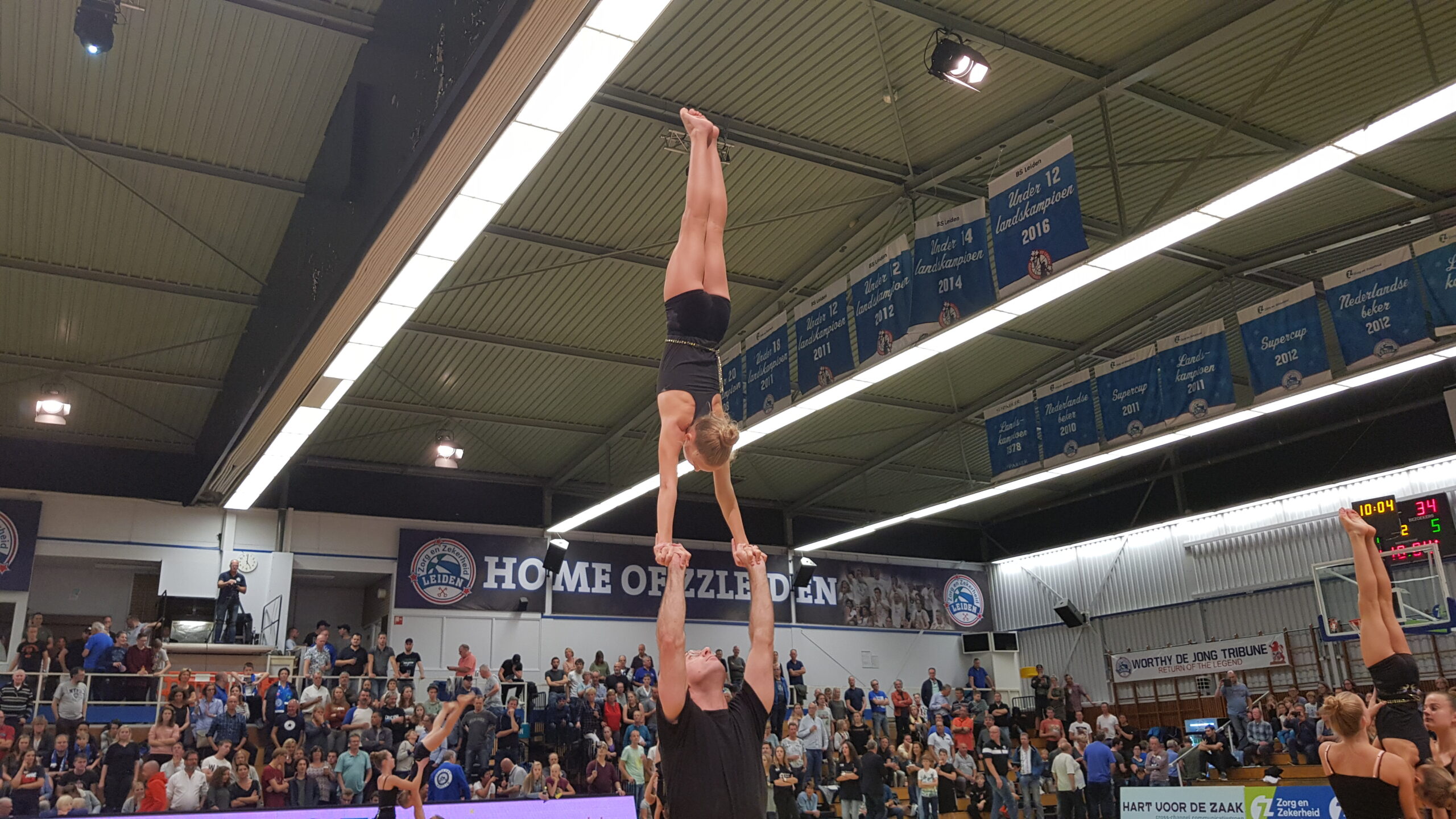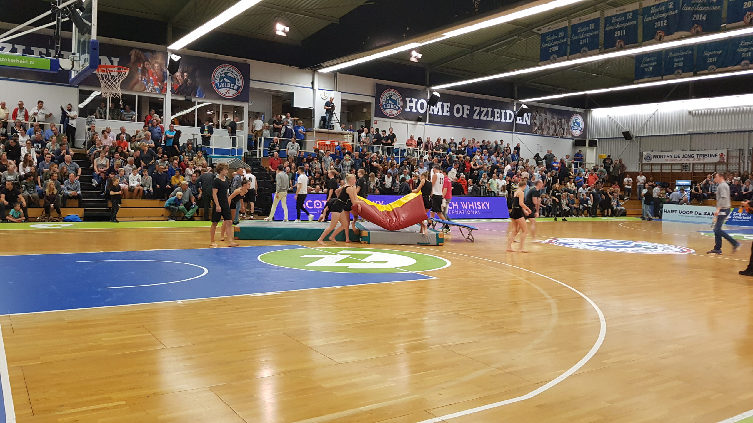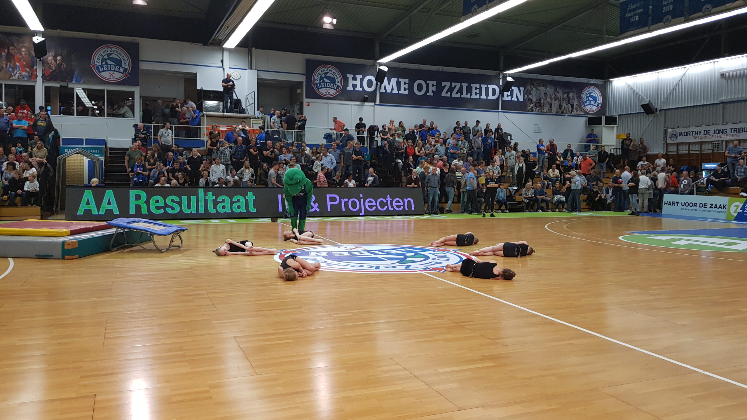 De grootste sportvereniging van Leiden timmert flink aan de weg. Gymsport Leiden telt inmiddels zo’n 1.500 leden en die laten maar wat graag ook buiten de eigen zaal zien wat ze kunnen. Afgelopen zaterdag bijvoorbeeld. Toen mochten de gymnasten een showtje opvoeren in de pauze van de basketball-wedstrijd ZZ Leiden tegen BAL uit Weert.