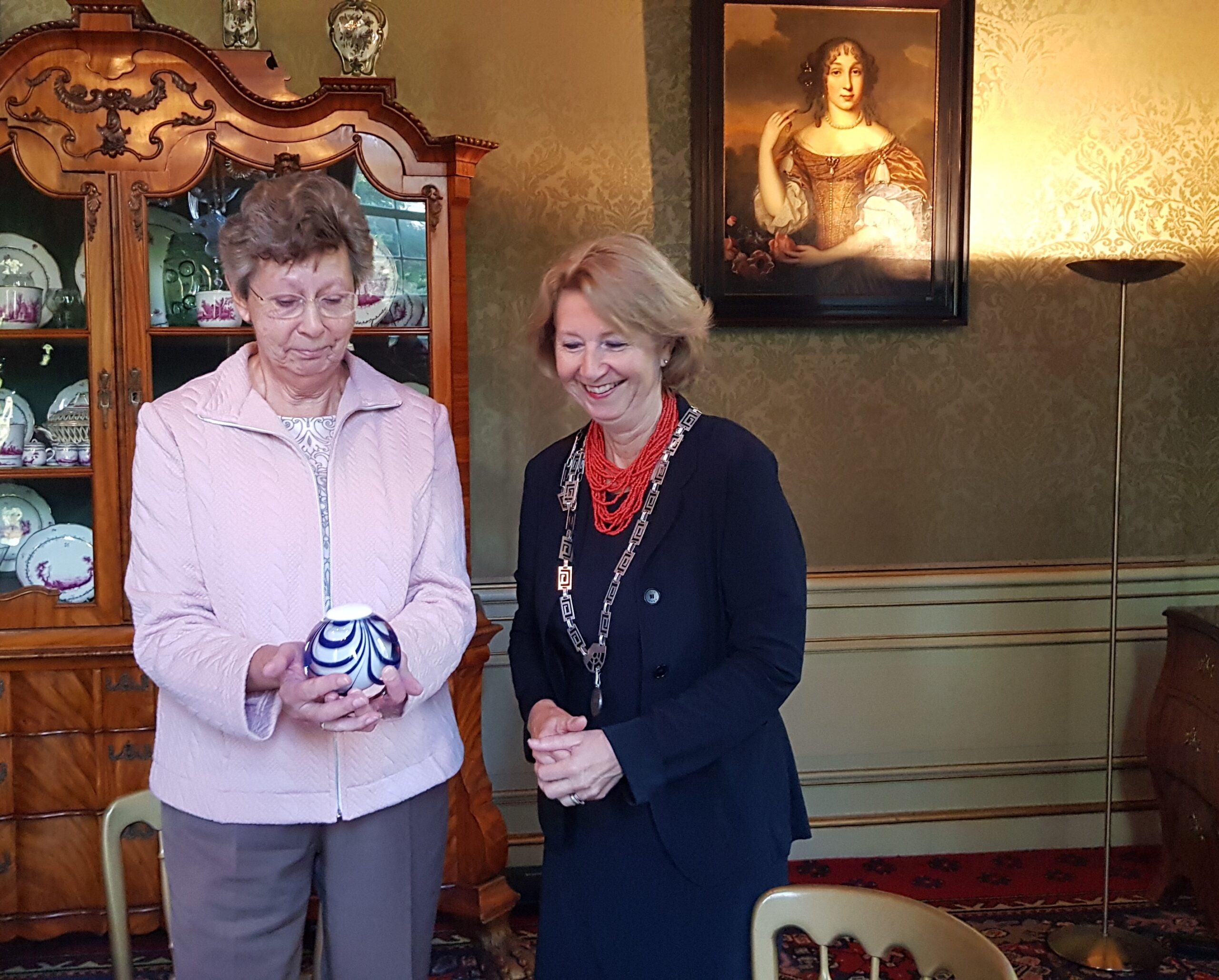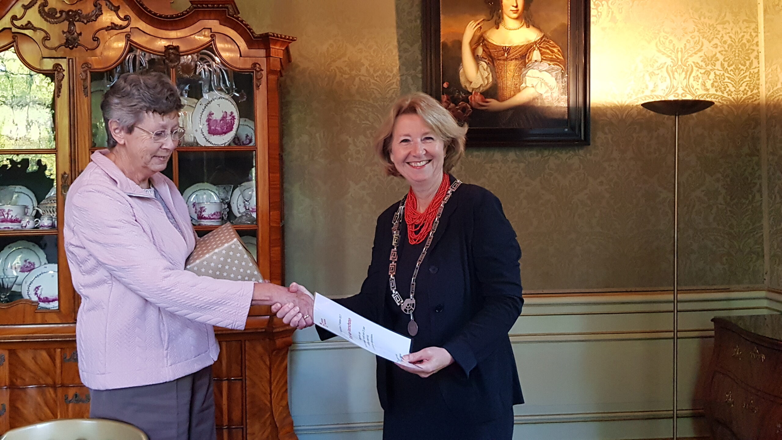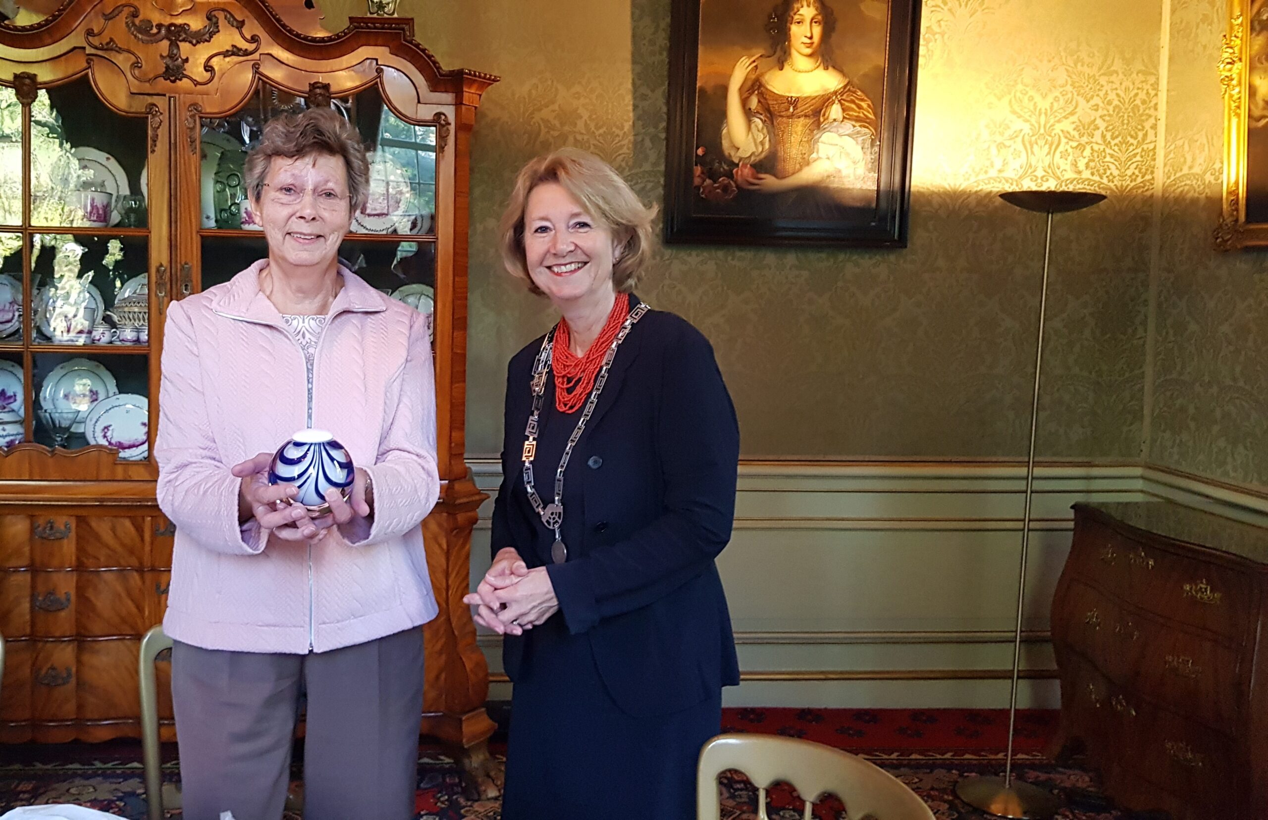 Marga Bunnig is een van de chauffeurs van de Cirkelbus, maar wel een heel bijzondere. Ze is al 25 jaar vrijwilliger bij de organisatie die tegenwoordig met zo’n 80 vrijwilligers en vier busjes zorgt voor het vervoer van ouderen in het dorp. Burgemeester Bouvy sprak haar uitgebreid toe en overhandigde haar vervolgens de ‘Parel van Voorschoten’. Als tastbaar bewijs van erkenning voor het waardevolle vrijwilligerswerk. En Bunnig is nog niet van plan om te stoppen, want de nieuwste bus, een automaat, rijdt wel erg lekker, zo vertelde ze.