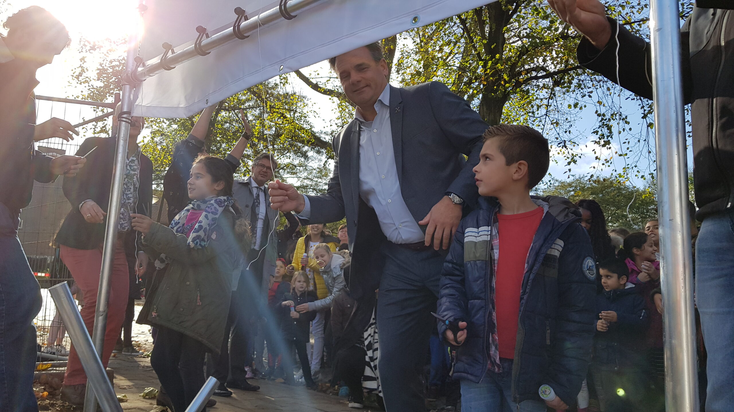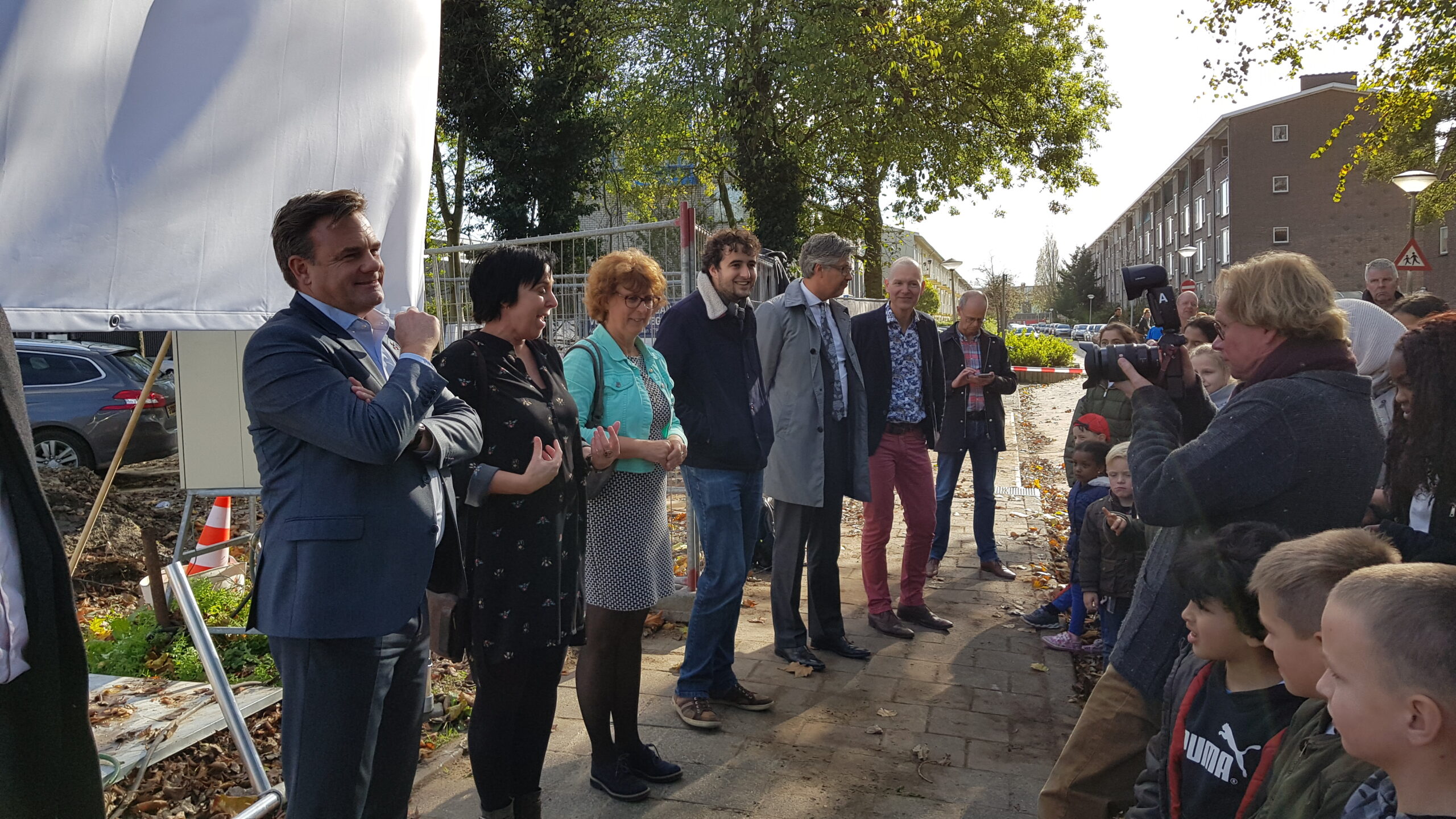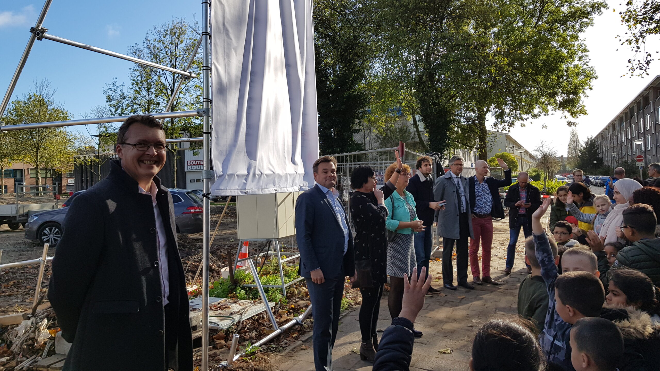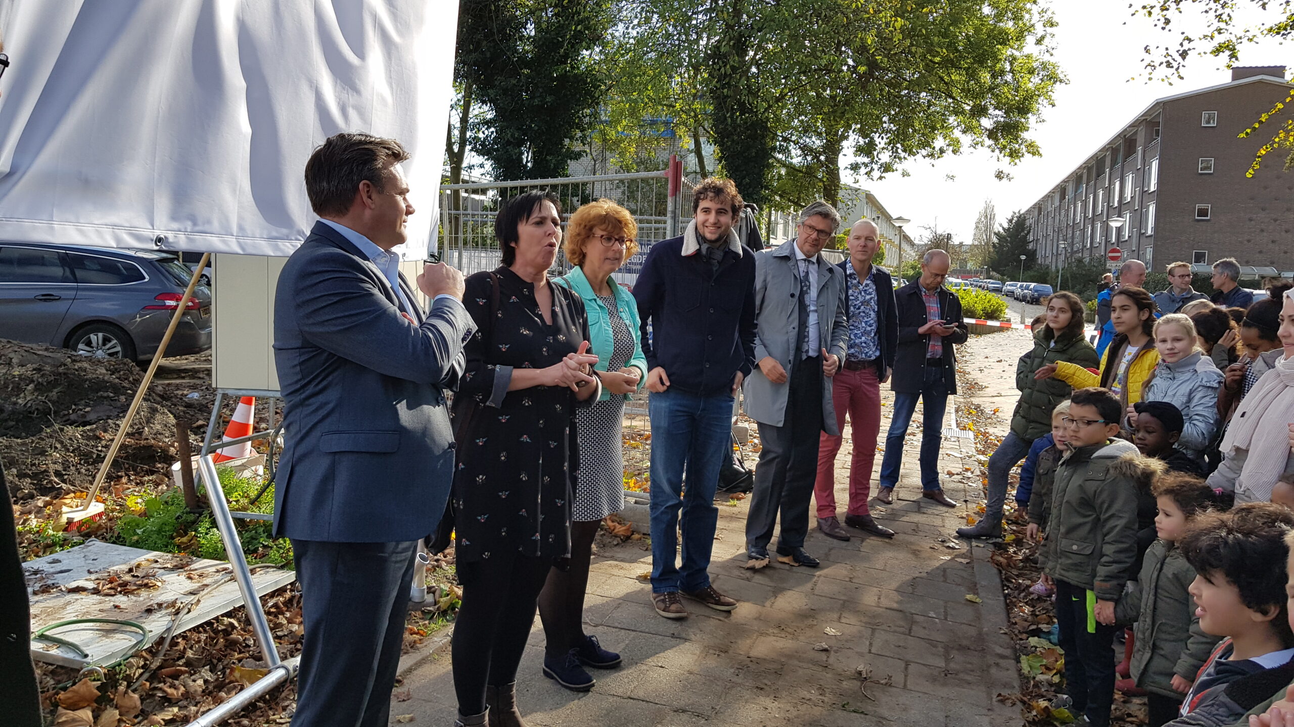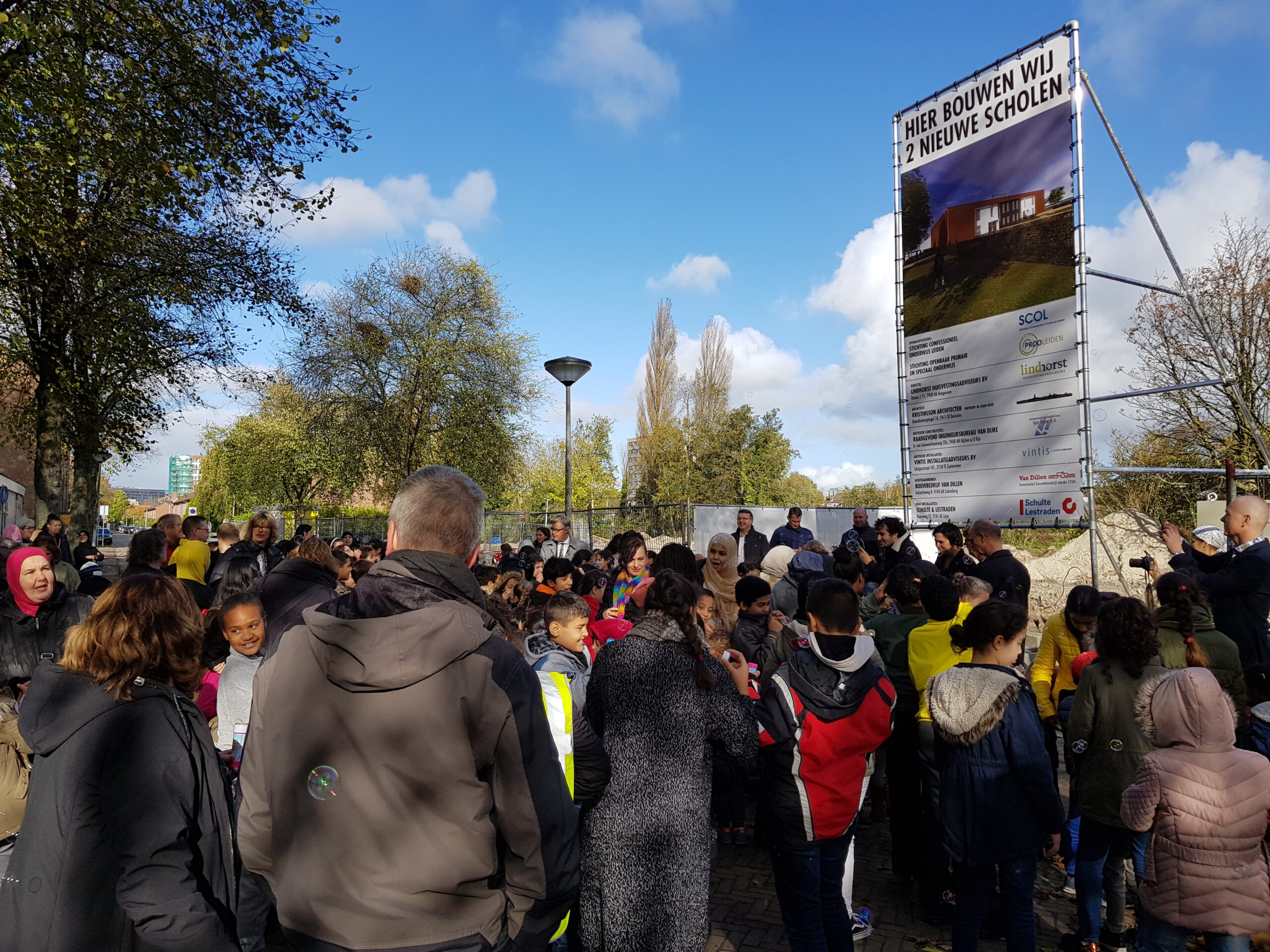 Met het onthullen van het bouwbord is vanmiddag de start van de nieuwbouw gemarkeerd van een nieuw schoolgebouw op de plek waar tot voor kort nog de De Marke stond. Er komt een nieuw schoolgebouw waar de Teldersschool, de Daltonschool en de Sleutelbloem onderdak gaan krijgen.