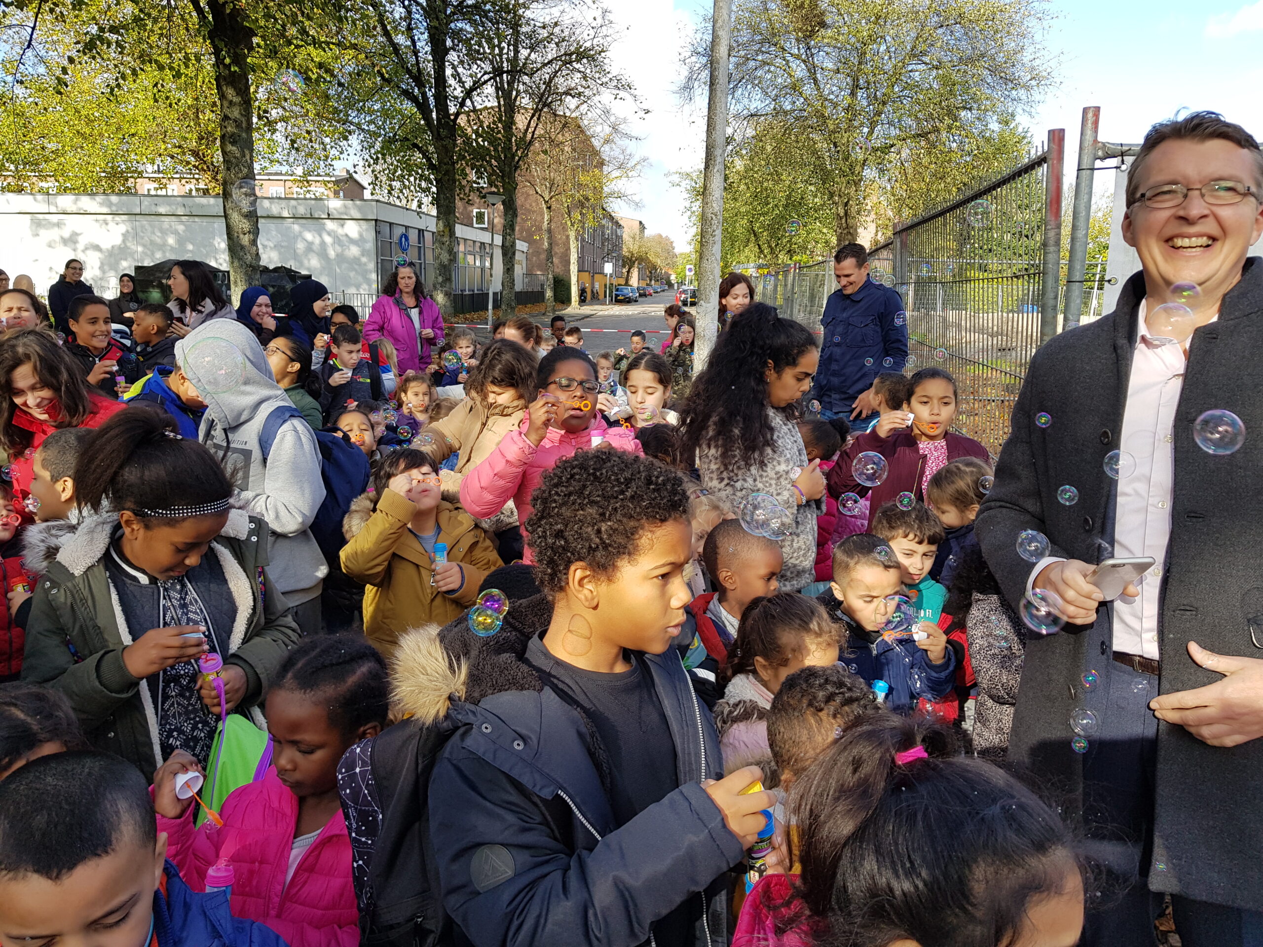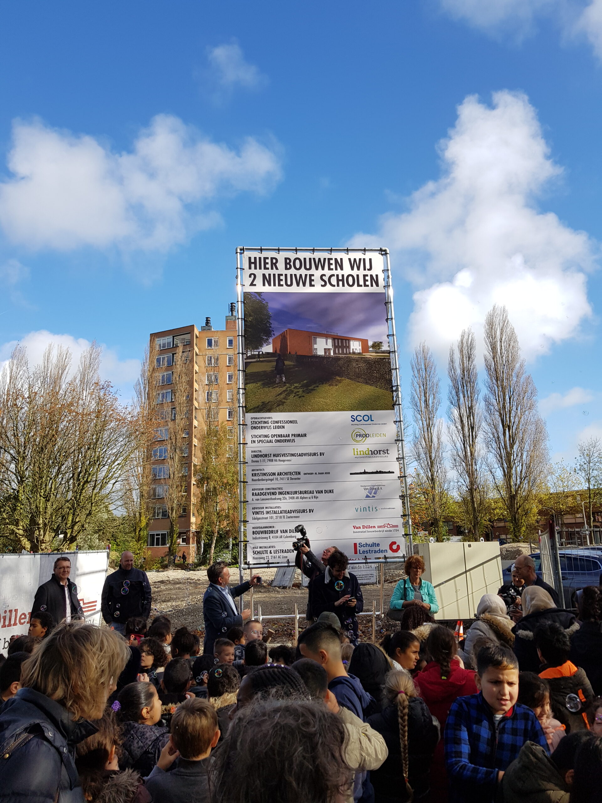 Na die verhuizing gaan de oude schoolgebouwen die even verderop staan tegen de vlakte om onder meer ruimte te maken voor de nieuwbouw van ‘Het Leonardo’. de Leidse topsportschool wacht al jaren op nieuwbouw, maar dat geduld wordt nu beloond. “De trein is gaan rijden”, zegt onderwijswethouder Paul Dirkse.