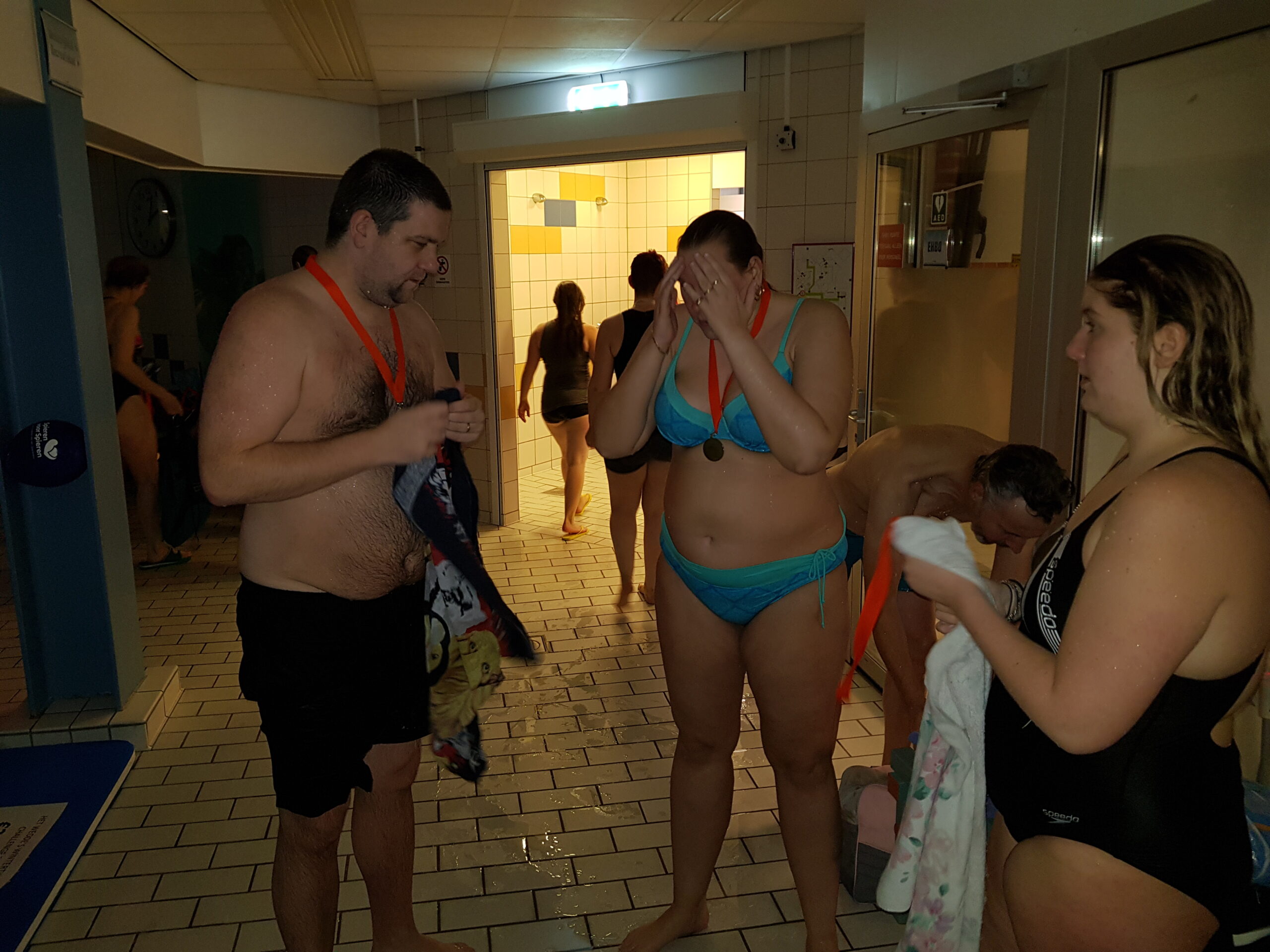 Dartster Rilana Erades heeft met 665 euro het hoogste bedrag binnengehaald. Het leverde haar naast een warm gevoel ook een warme badjas op van Sportfondsen Voorschoten. Ondanks het feit dat ze 22 weken zwanger is, zwom ze een uur lang baantjes. Dat deed ongeveer de helft van de deelnemers. De rest maakte de uitdaging nog wat groter en deed mee aan een lesje floatfit van zo’n 30 minuten.