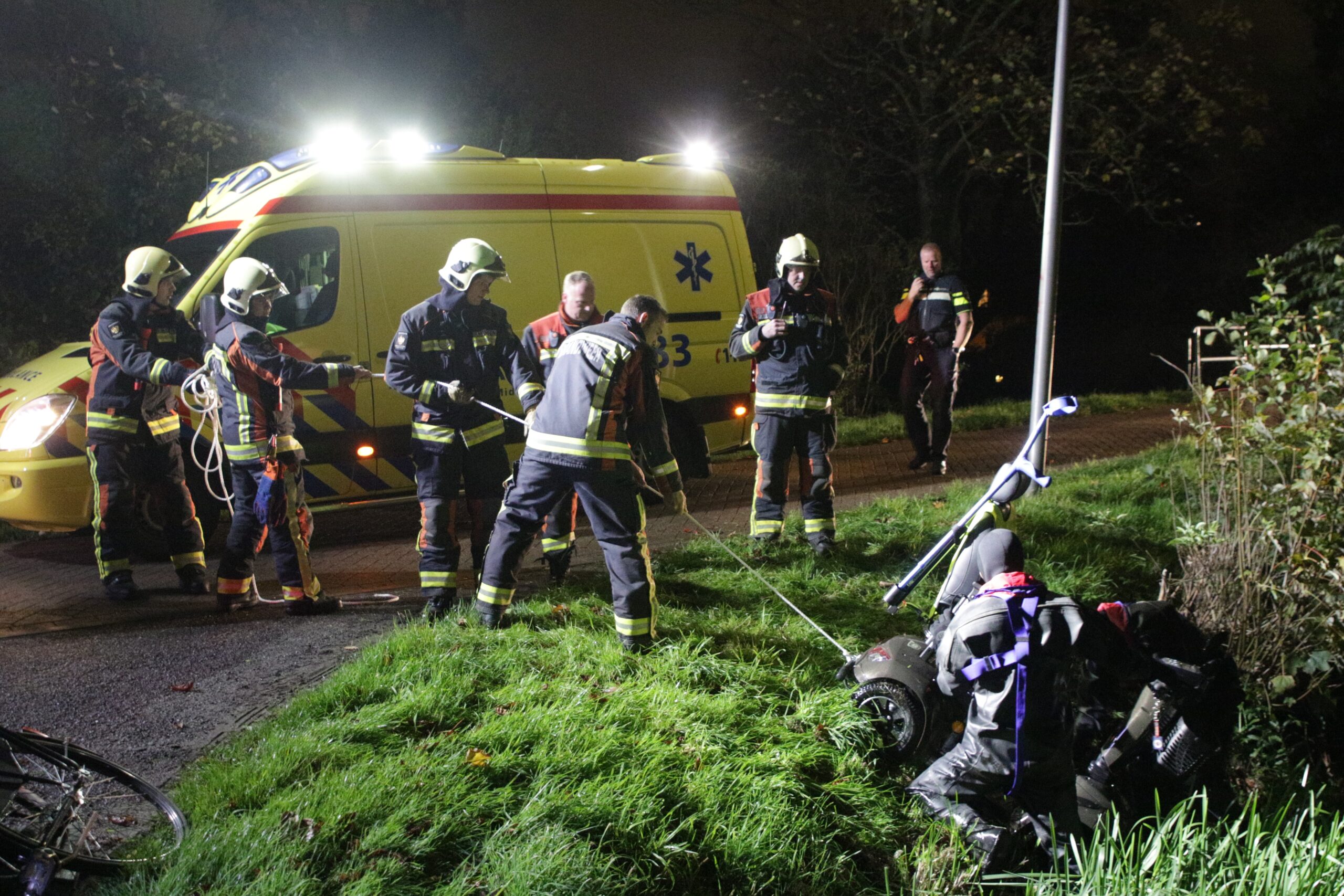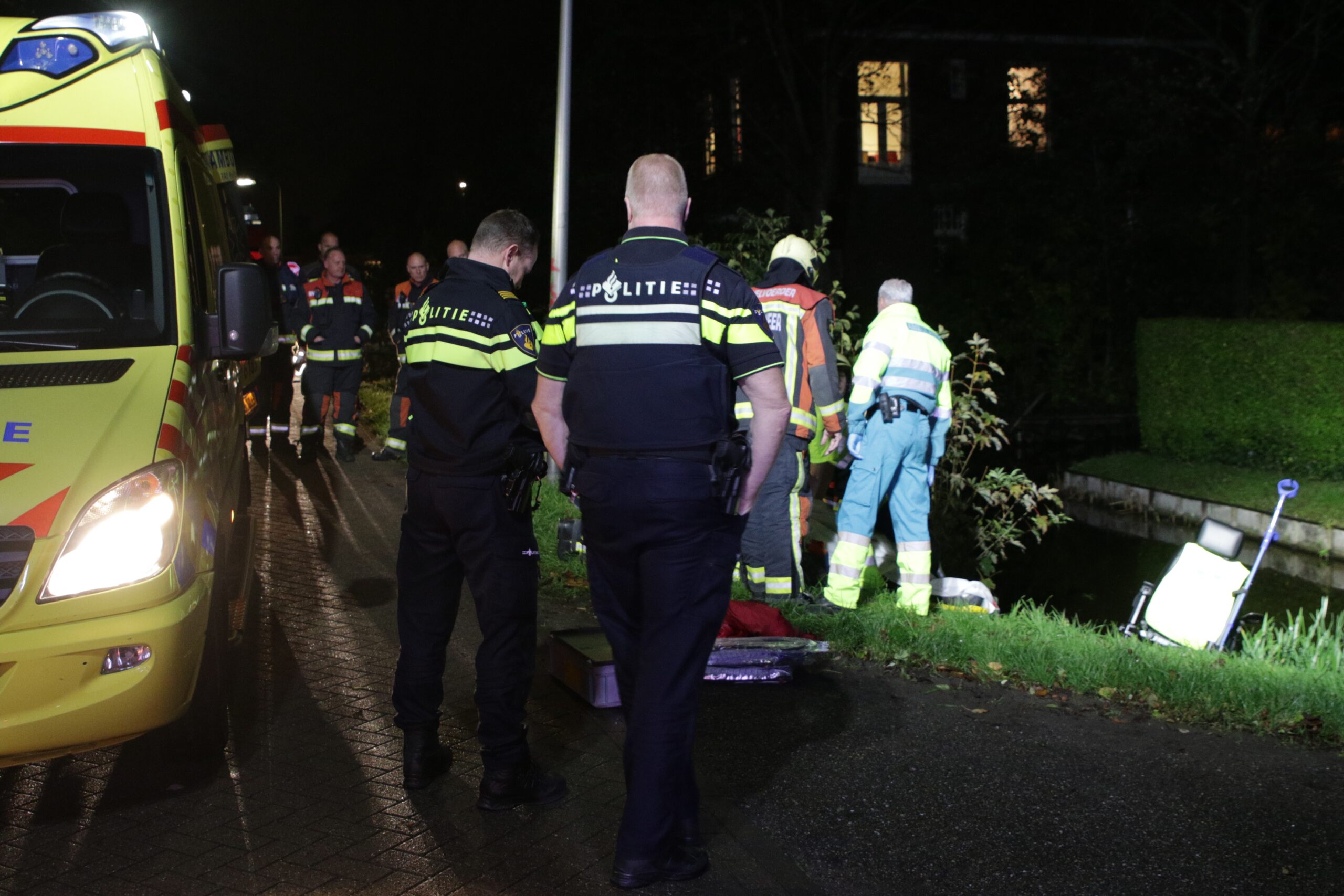 De scootmobiel is door de manschappen van de brandweer uit het water gehaald en zal worden meegenomen door de politie.