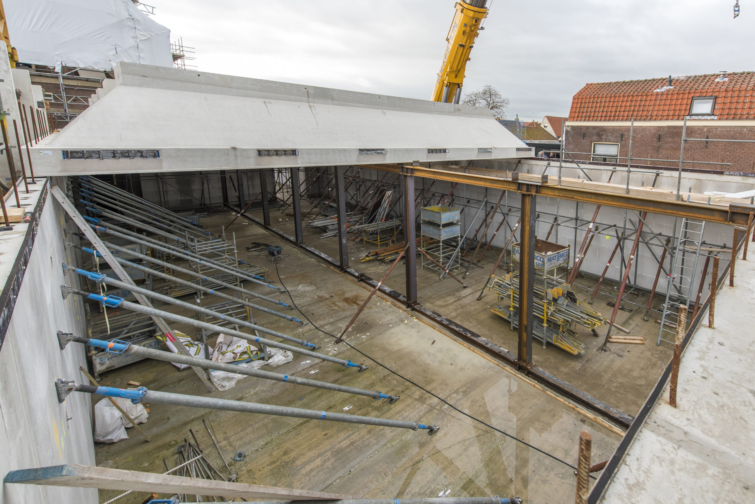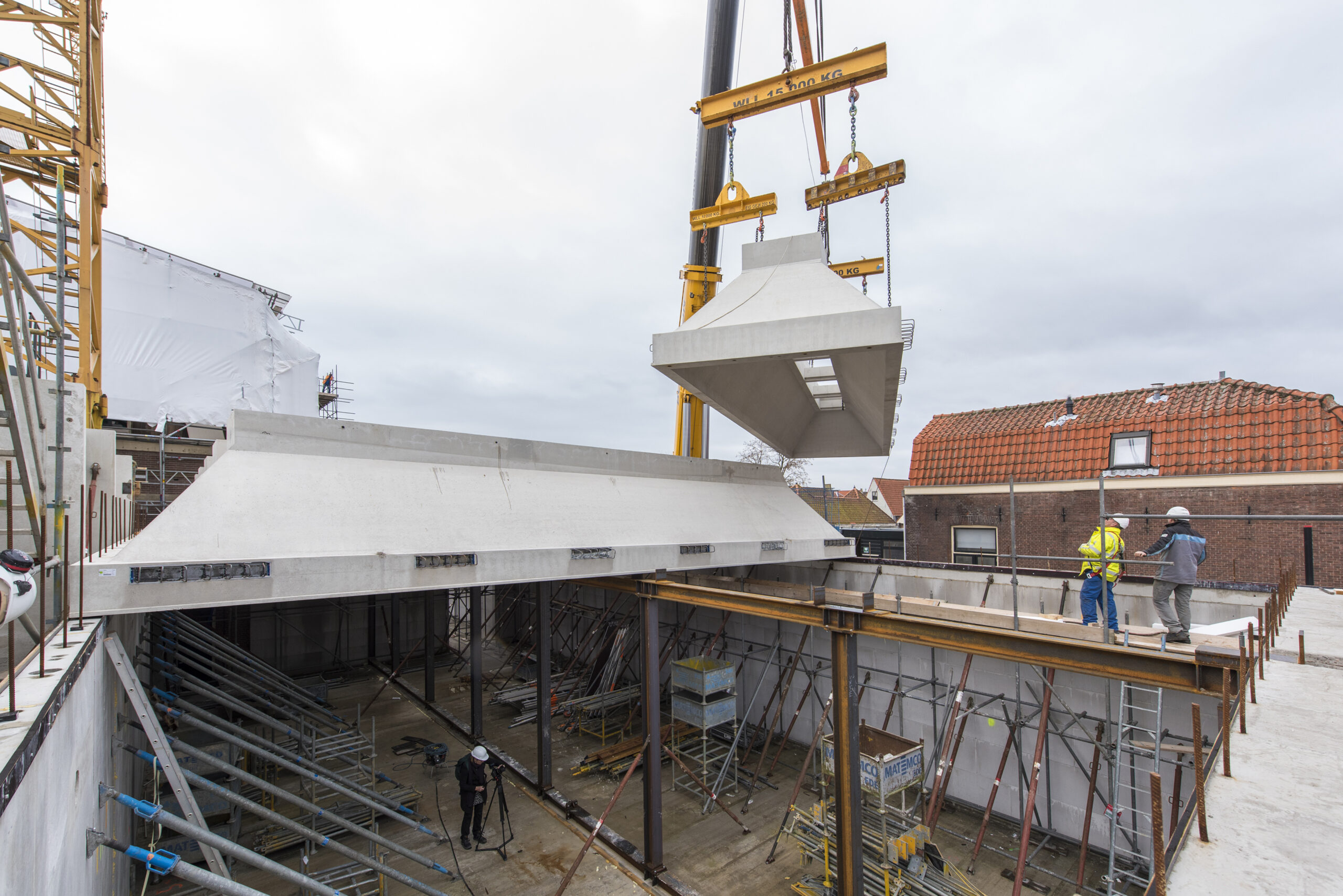 Deze week zijn zeven zogenaamde schaaldaken op de nieuwe tentoonstellingsvleugel van Museum De Lakenhal geplaatst. Met een grote kraan werden de 30 ton wegende betonelementen op hun plaats gelegd. “Een spectaculair gezicht”, zegt directeur Meta Knol die spreekt van een mijlpaal. “Vanaf nu kunnen we verder de hoogte in”.