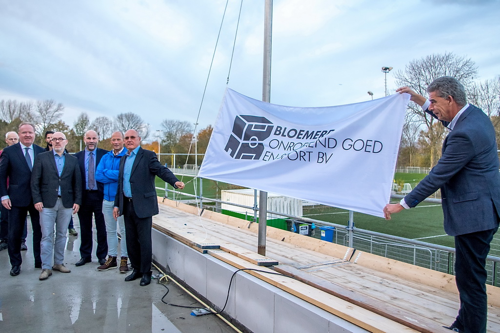 Op Sportpark de Bloemerd in Leiderdorp werd gister weer een feestje gevierd: het nieuwe clubgebouw van RCL bereikte het hoogste punt. Na een aantal korte speeches en het hijsen van de vlag kon men daarom aan het traditionele ‘Pannenbier’. Ook werd de datum voor de verwachte oplevering bekend gemaakt. Op 5 januari 2018 is het nieuwe complex gereed.