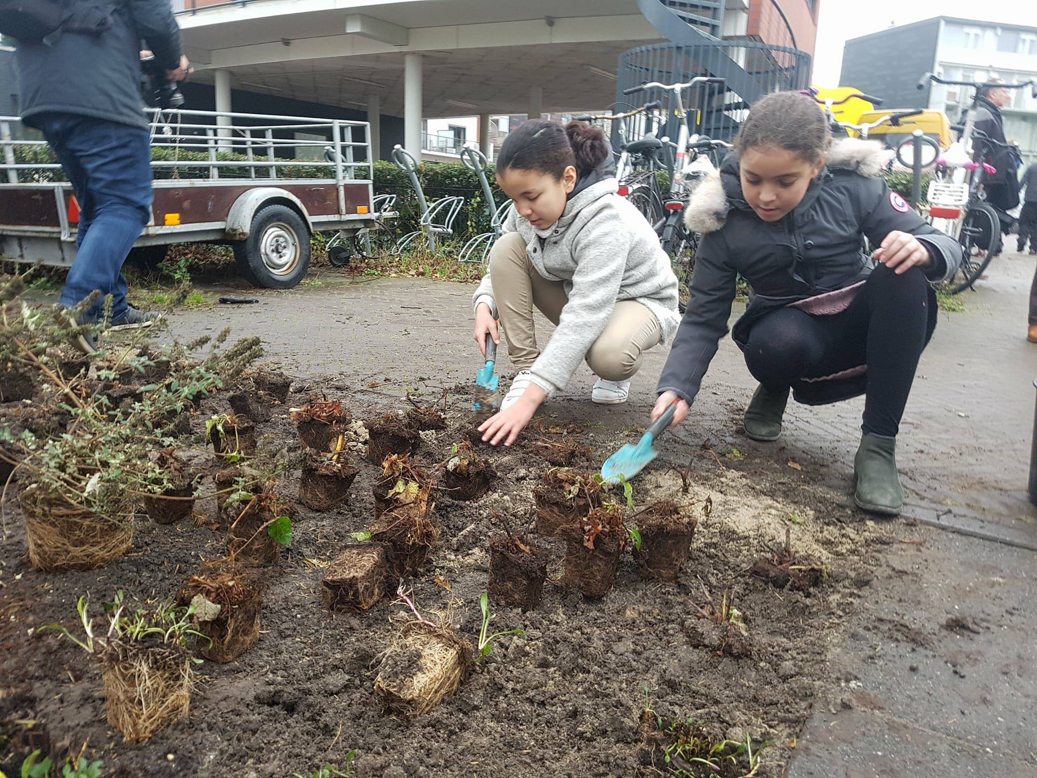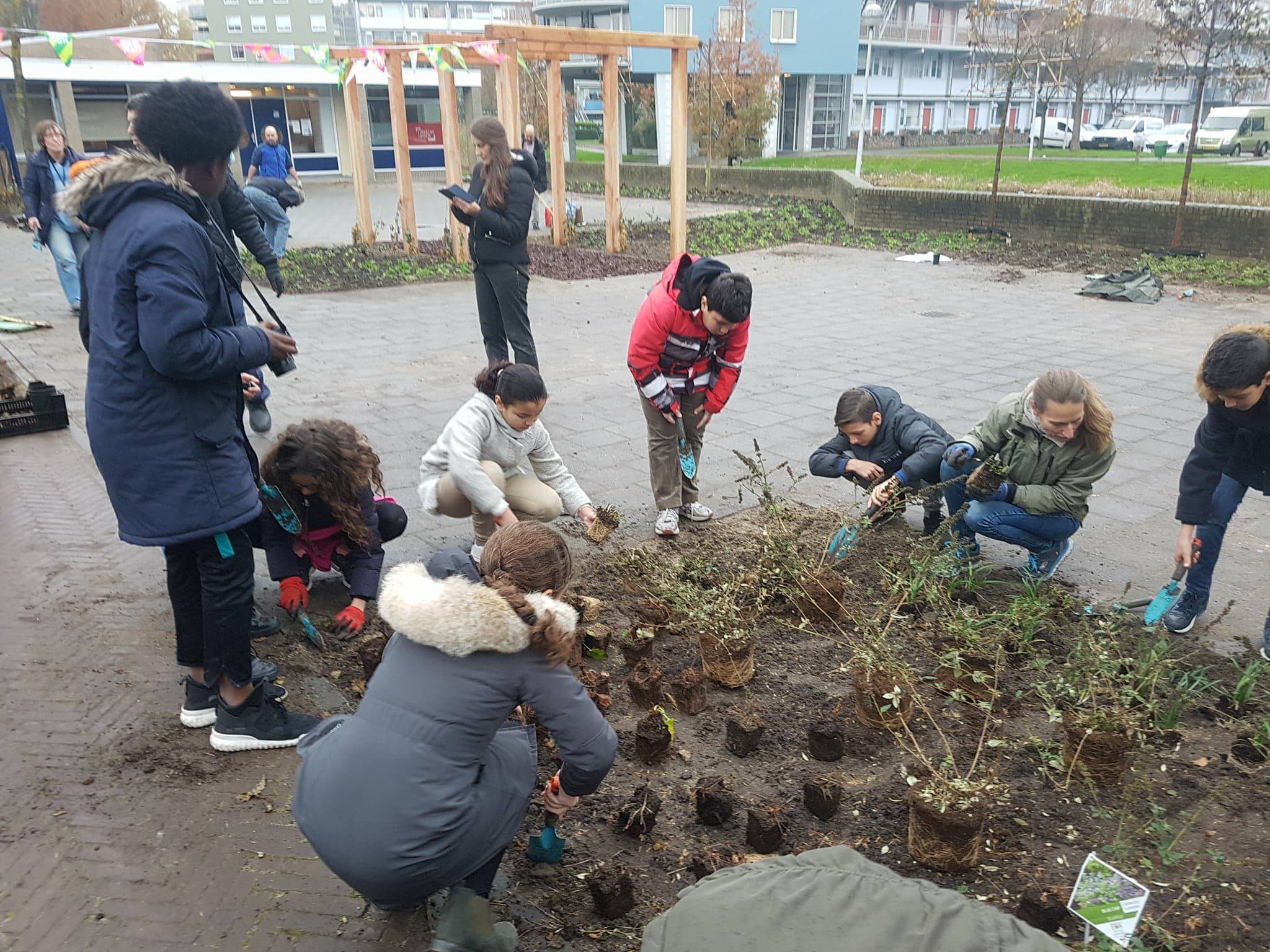 Het plein is in overleg met wijkbewoners opnieuw ingericht. De volgende stap is het planten van bomen struiken en het aanleggen van een moestuin. De initiatiefnemers uit de wijk nemen een deel van het planten voor hun rekening en zullen ook het beheer op zich nemen.