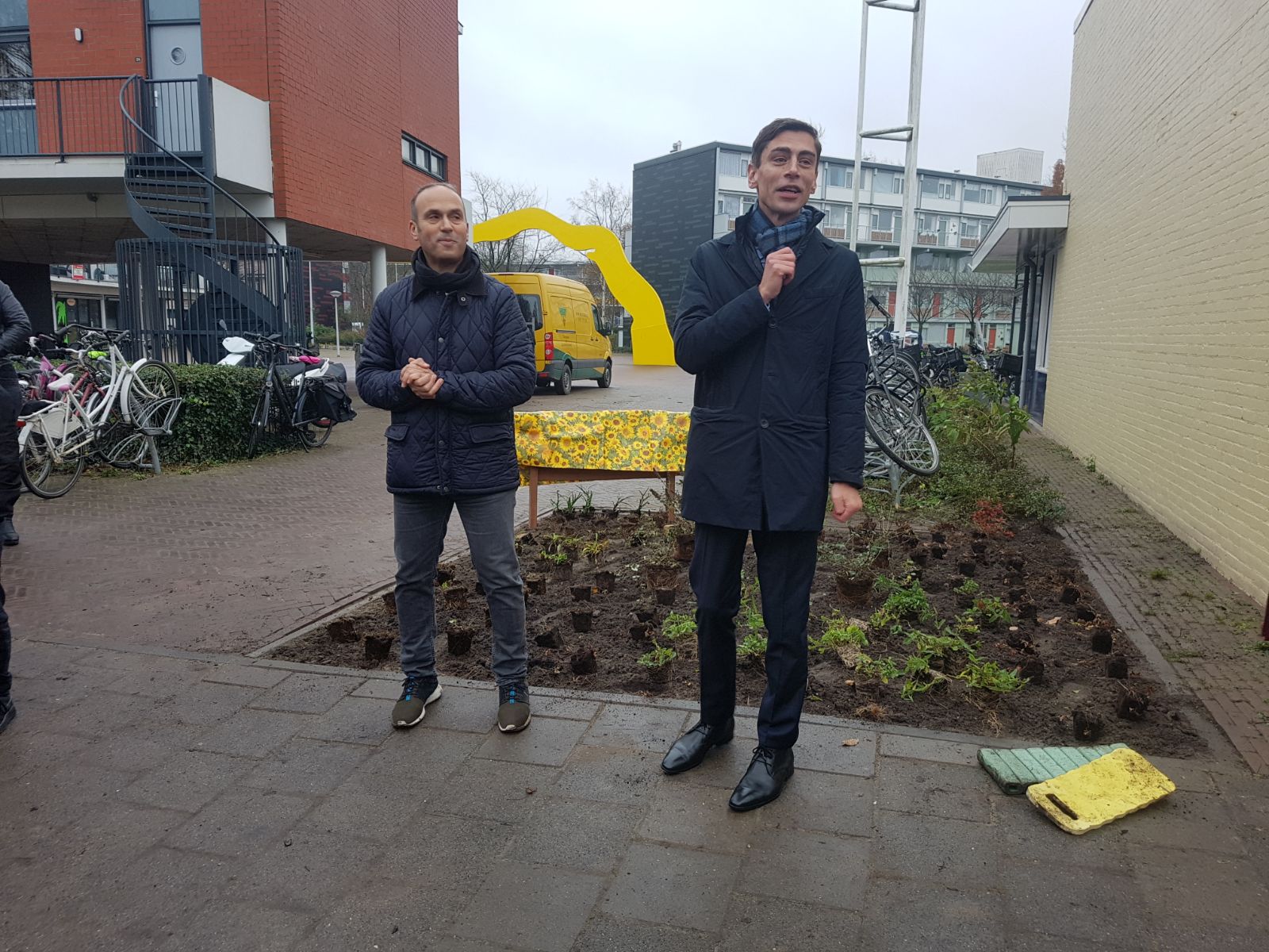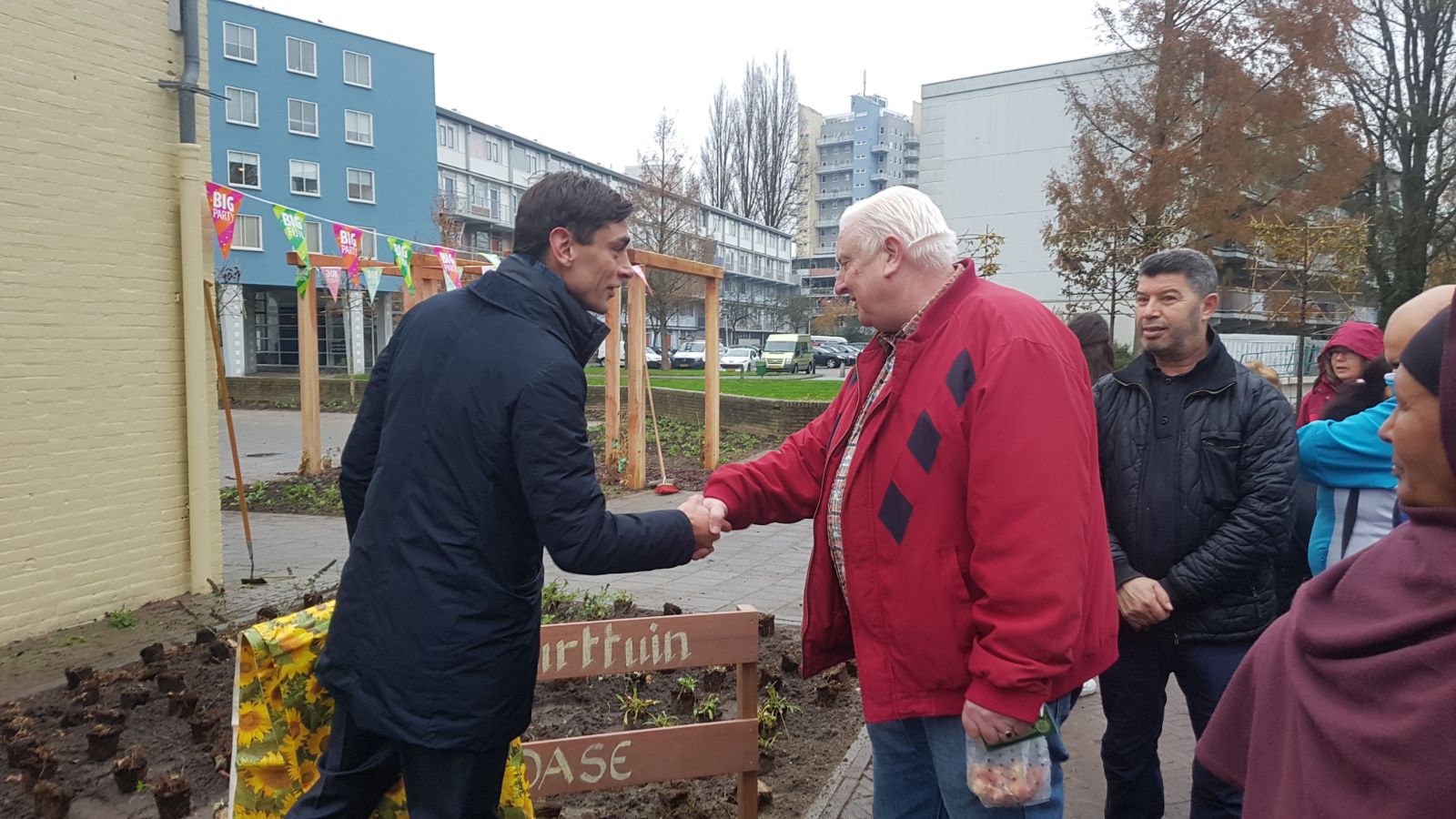 Vrijwilliger van het buurtcentrum en trekker van het project Hans Botermans is erg blij met de tuin. De volgende stap is de aanschaf van grote plantenbakken waar de buurbewoners zelf sla en andere plantjes in kunnen verbouwen. Daarvoor was nu helaas geen geld meer. Maar Laudy had goed nieuws voor hem. “Ja ik geloof dat ik net bij de opening wel heb toegezegd dat we voor die plantenbakken gaan zorgen. En ik vind dat ook een goed initiatief, die gaan er komen.”