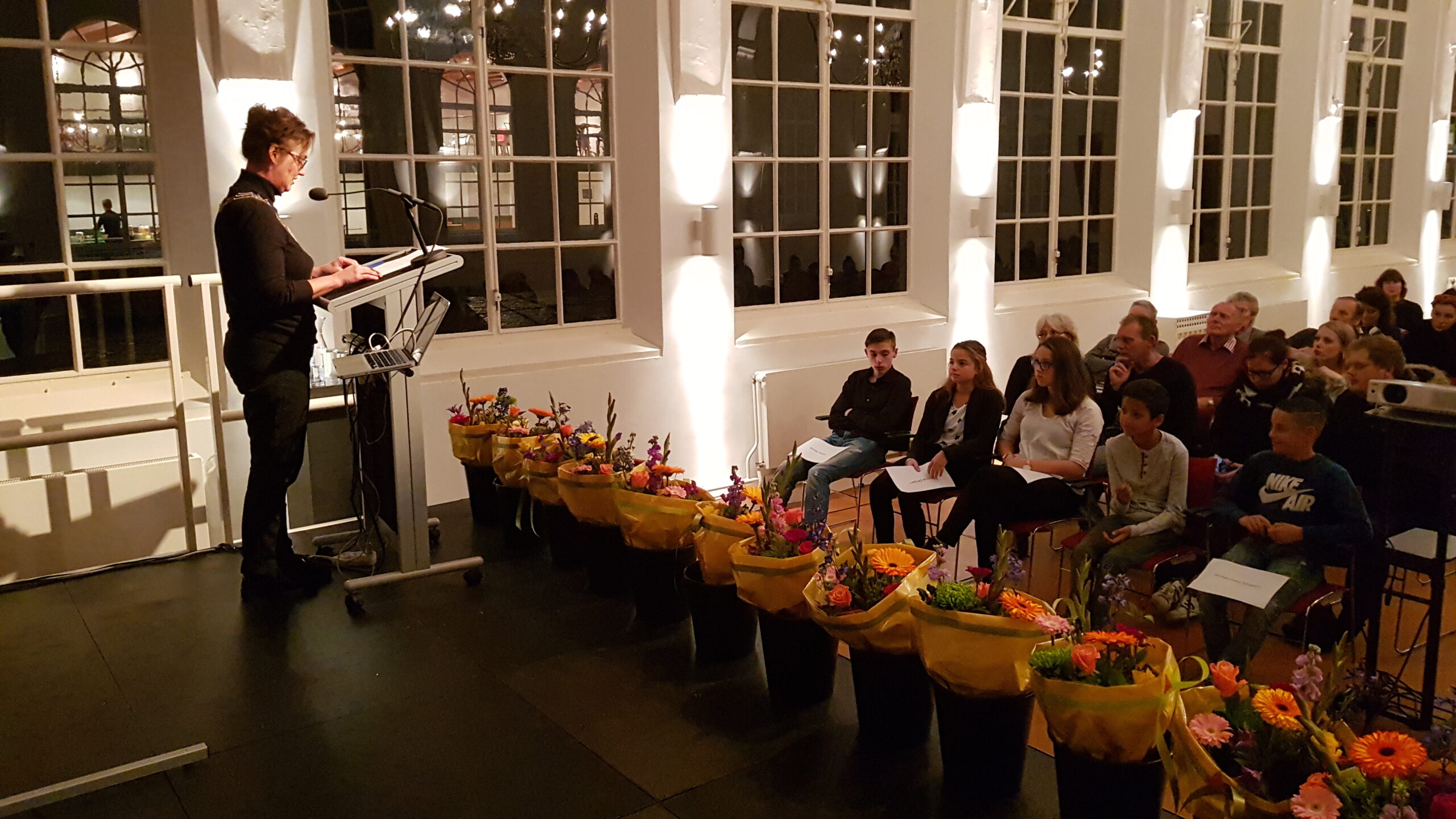 Chris de waard ging naar de uitreiking en sprak met enkele winnaars, met loco-burgemeester Roos van Gelderen en met rector Annick Dezitter van het Da Vinci College.