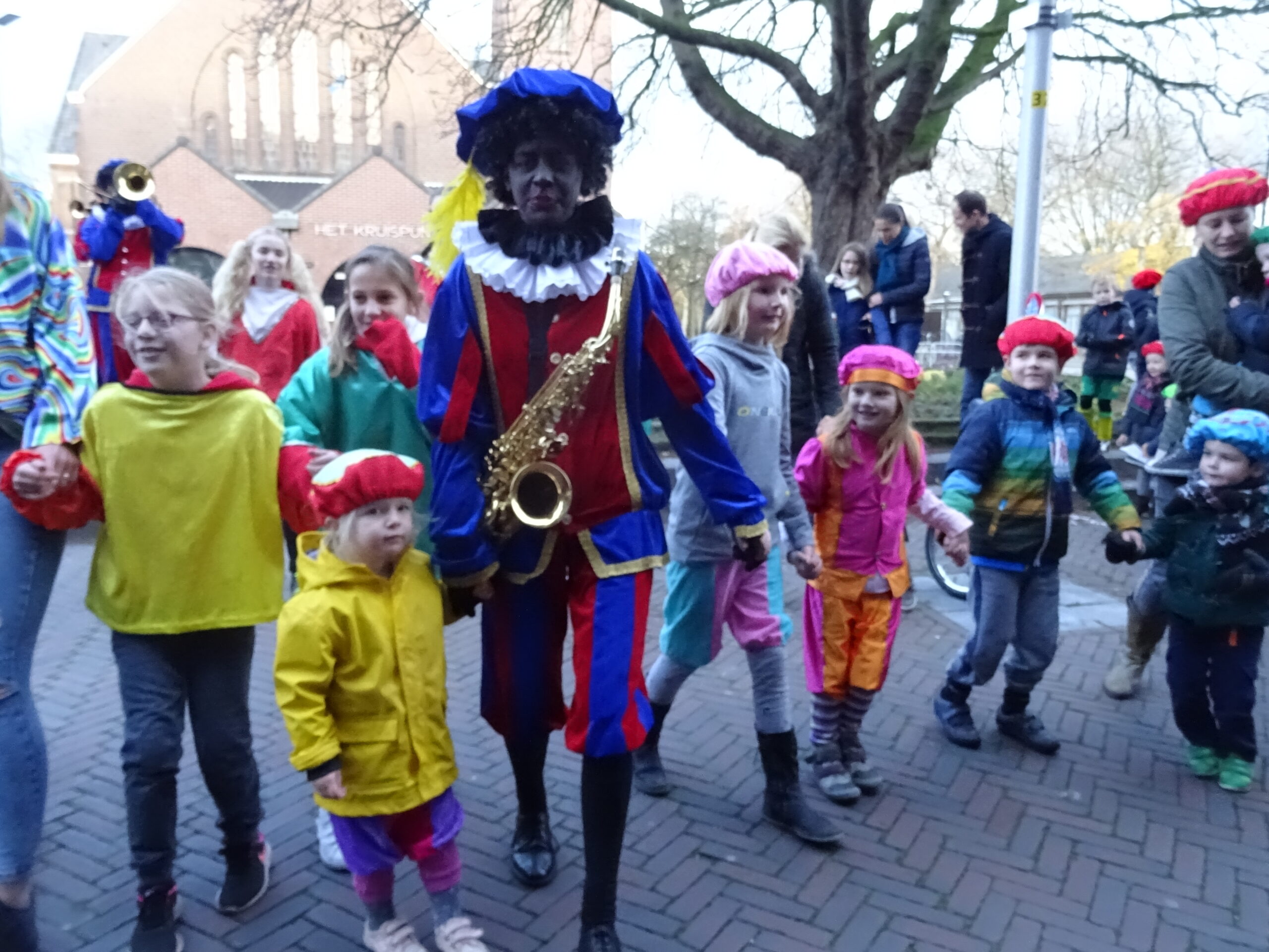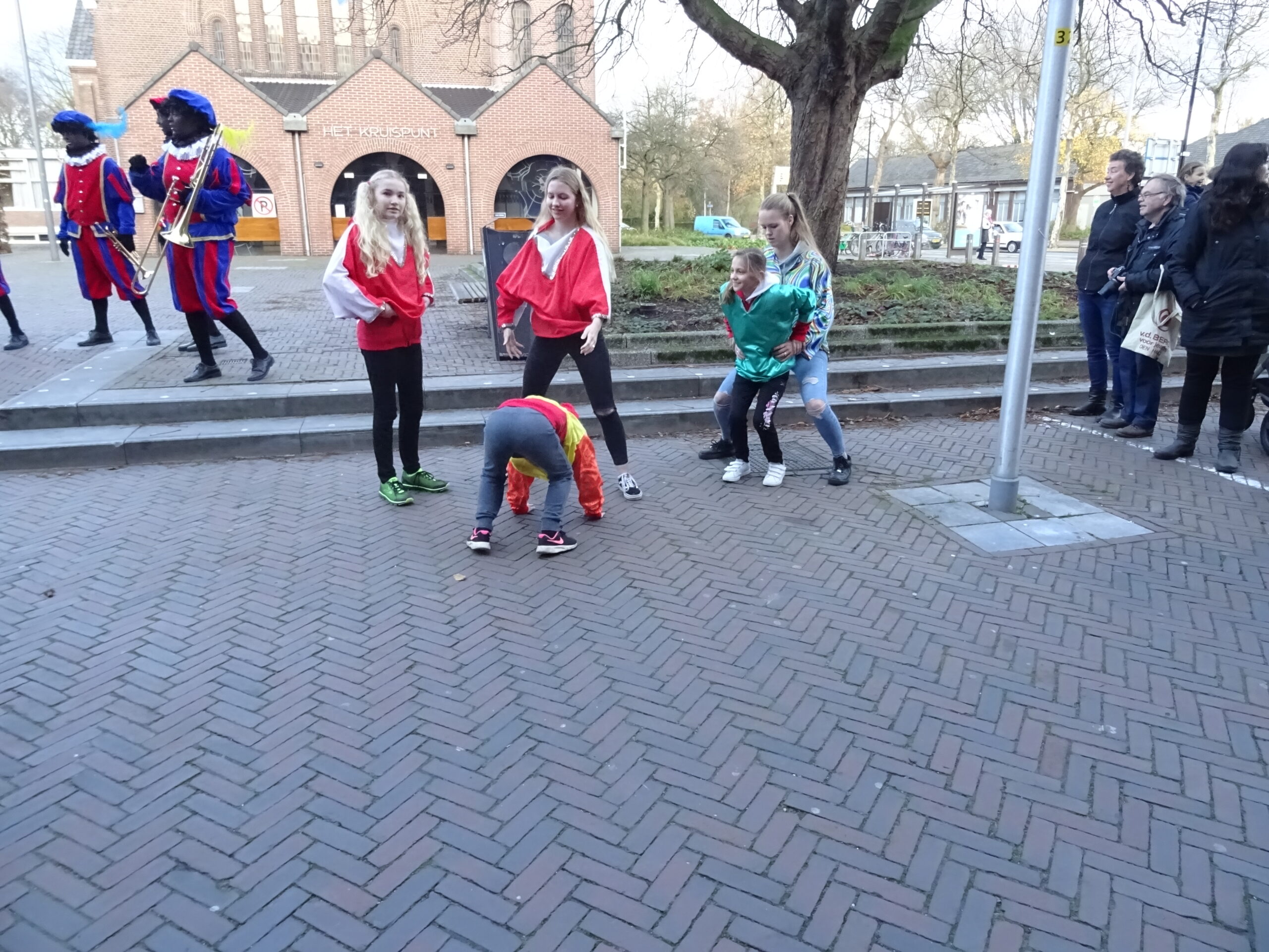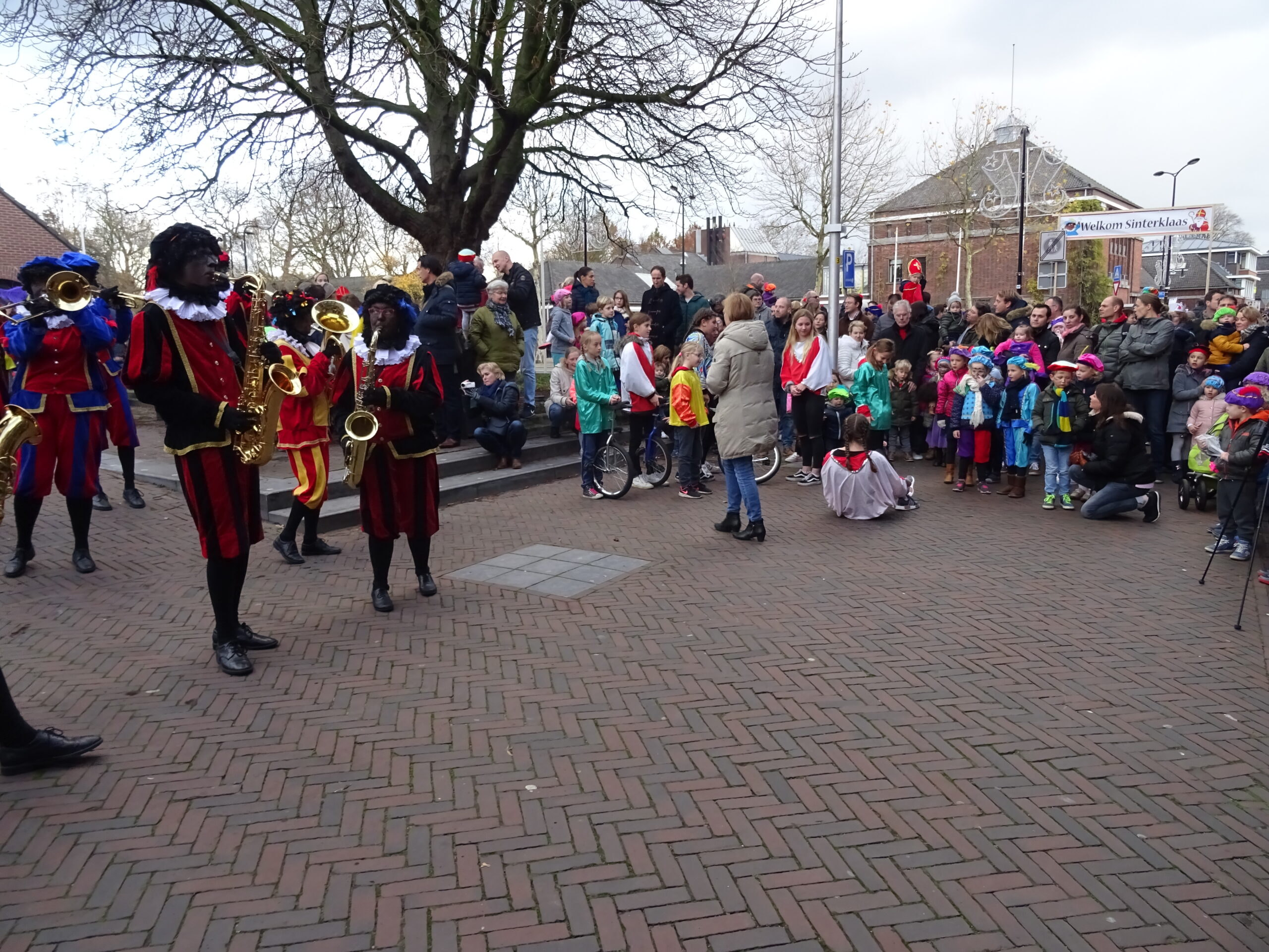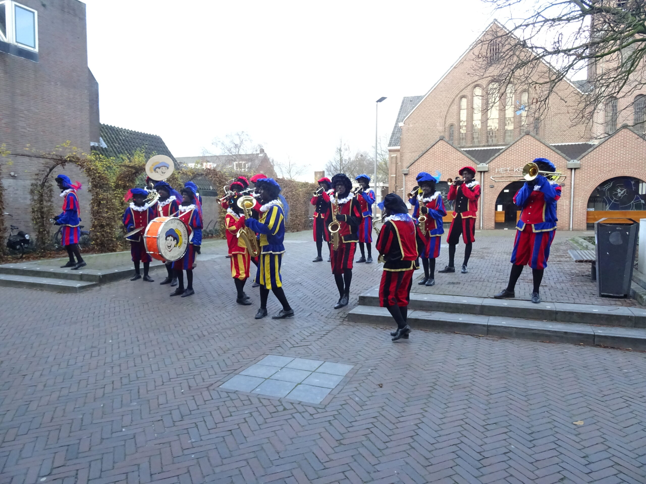 Voordat sinterklaas aankwam speelde de Pietenband al vrolijke sinterklaasliedjes en deden ze dansjes met de kinderen.