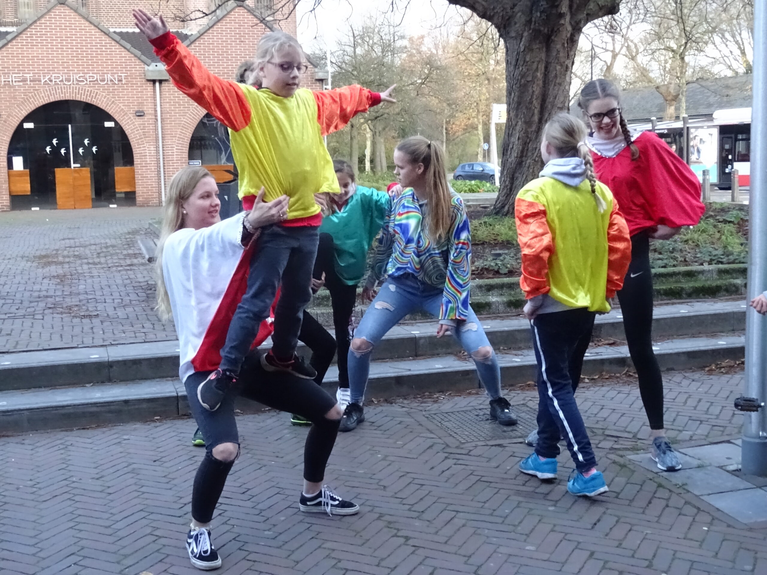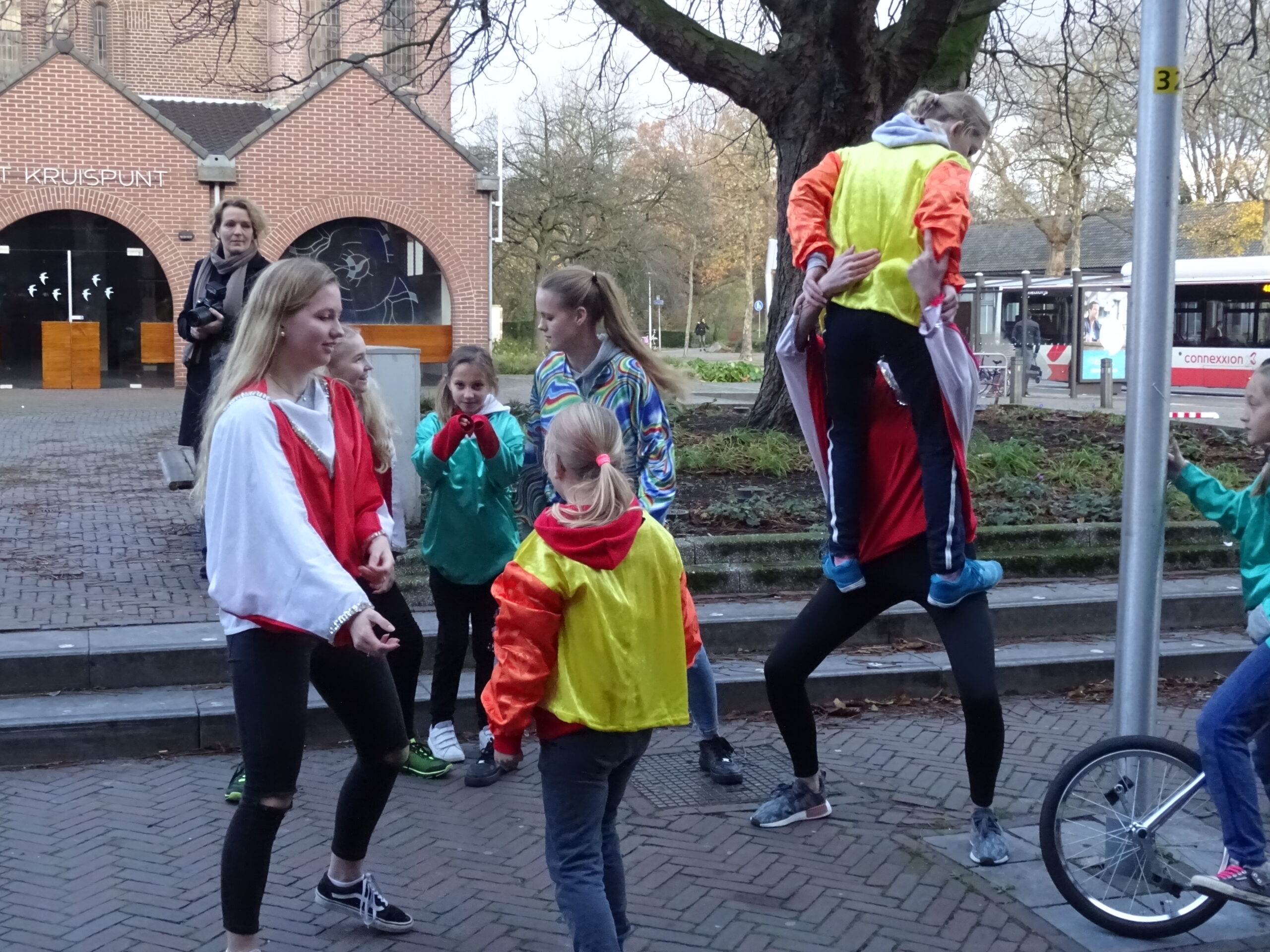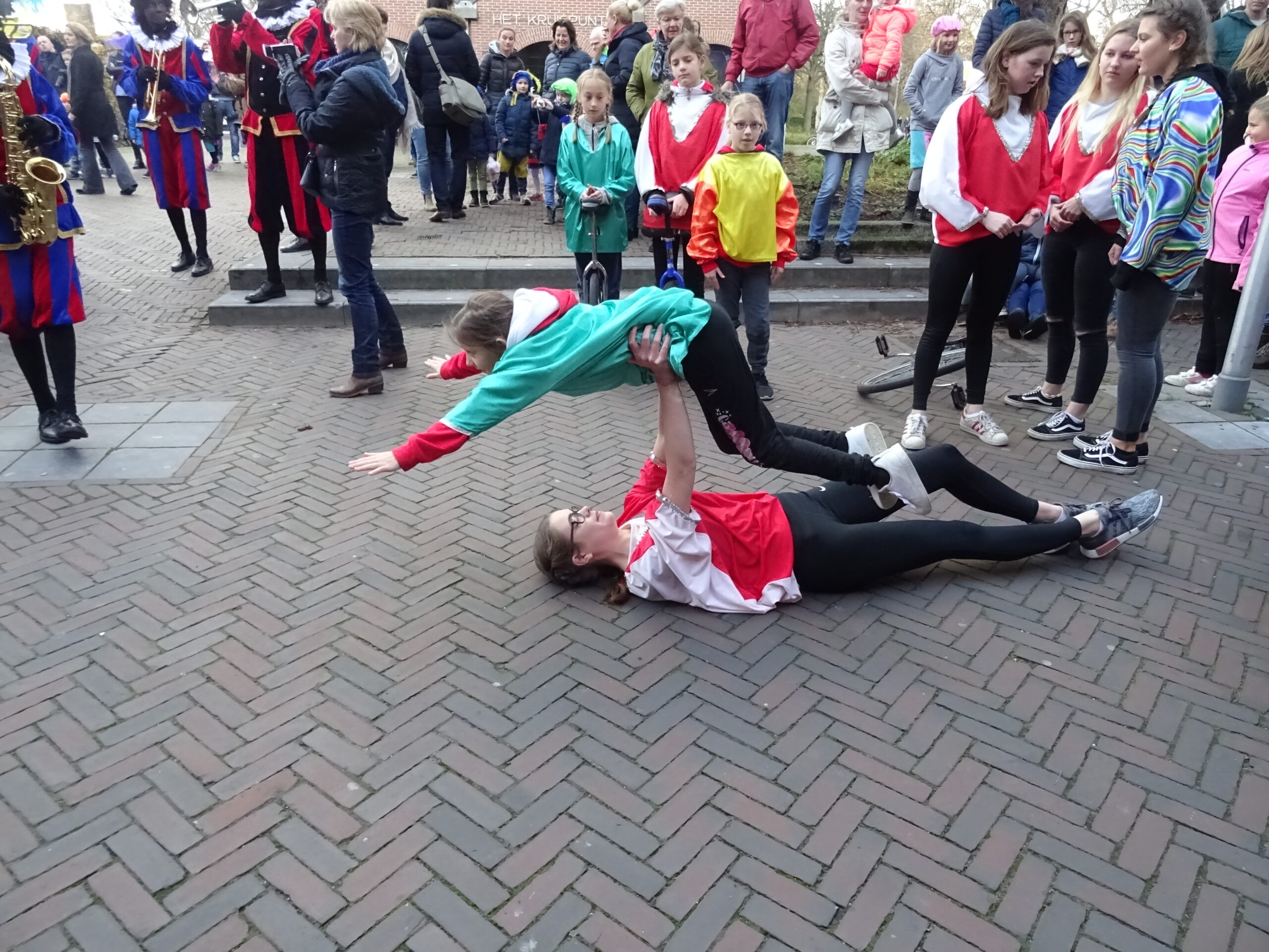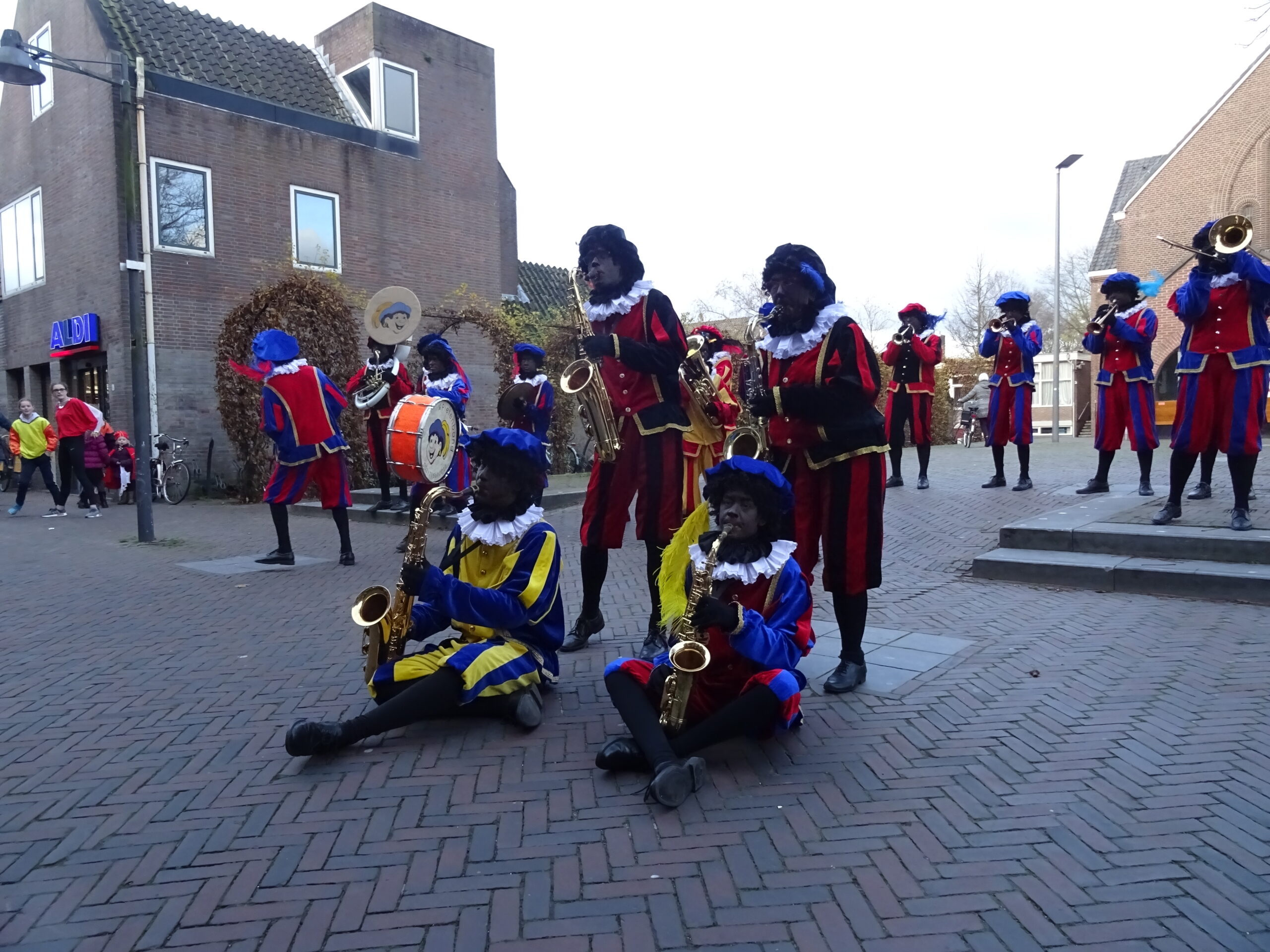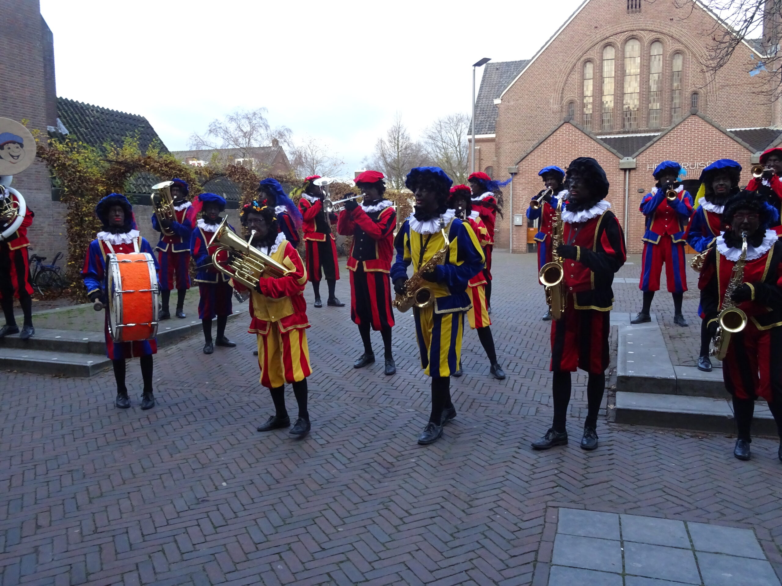 Voordat sinterklaas aankwam speelde de Pietenband al vrolijke sinterklaasliedjes en deden ze dansjes met de kinderen.