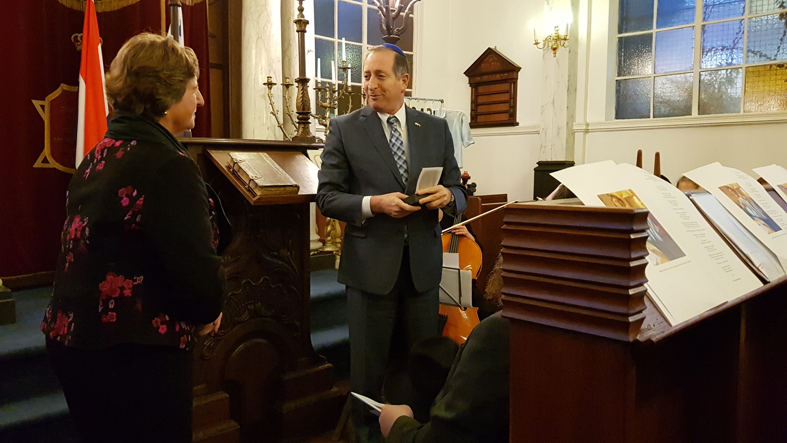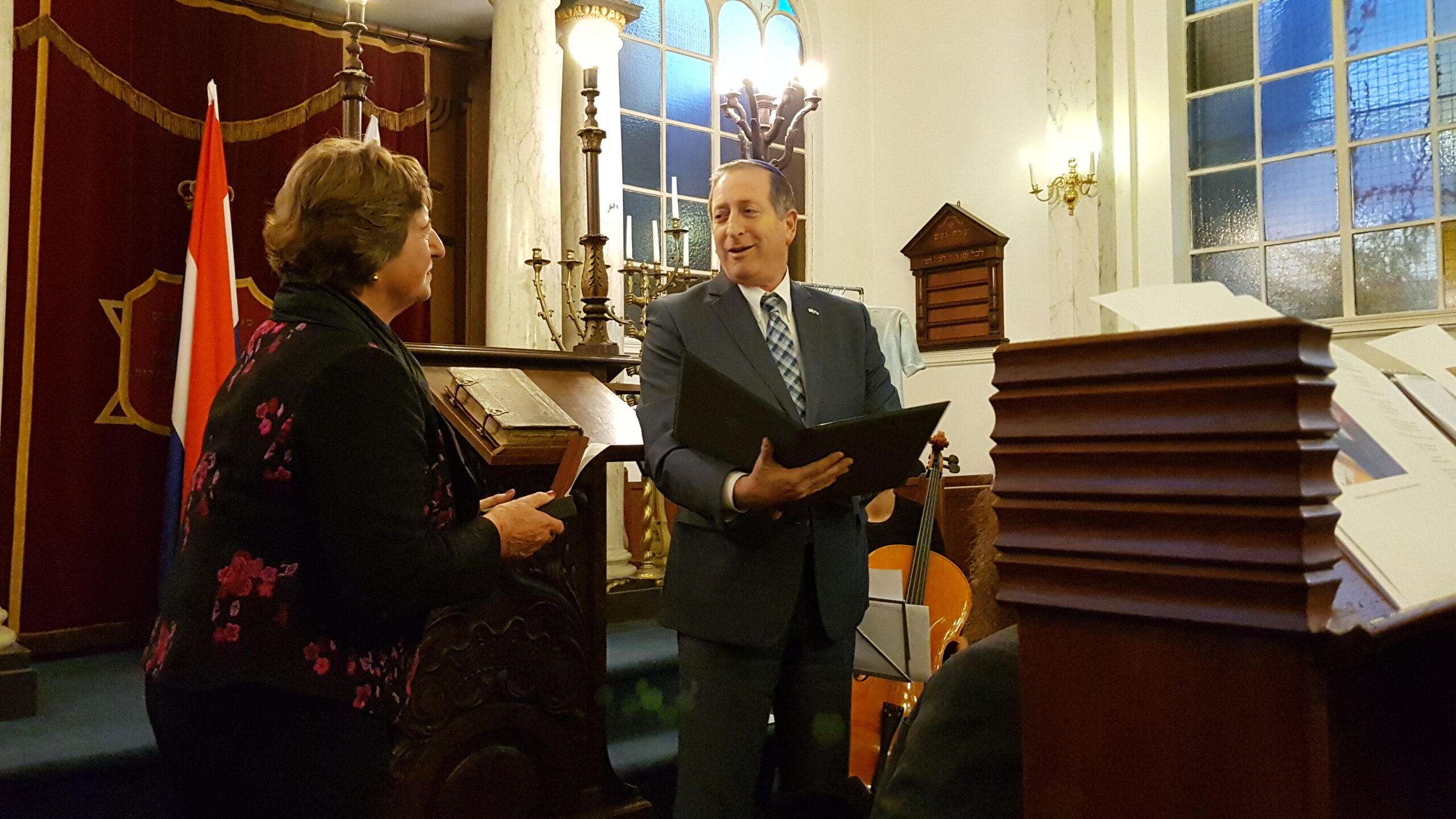 Chris de Waard was bij de plechtigheid aanwezig en sprak met de Voorschotense burgemeester Bouvy en met Mieke Beishuizen – Van der Laan.