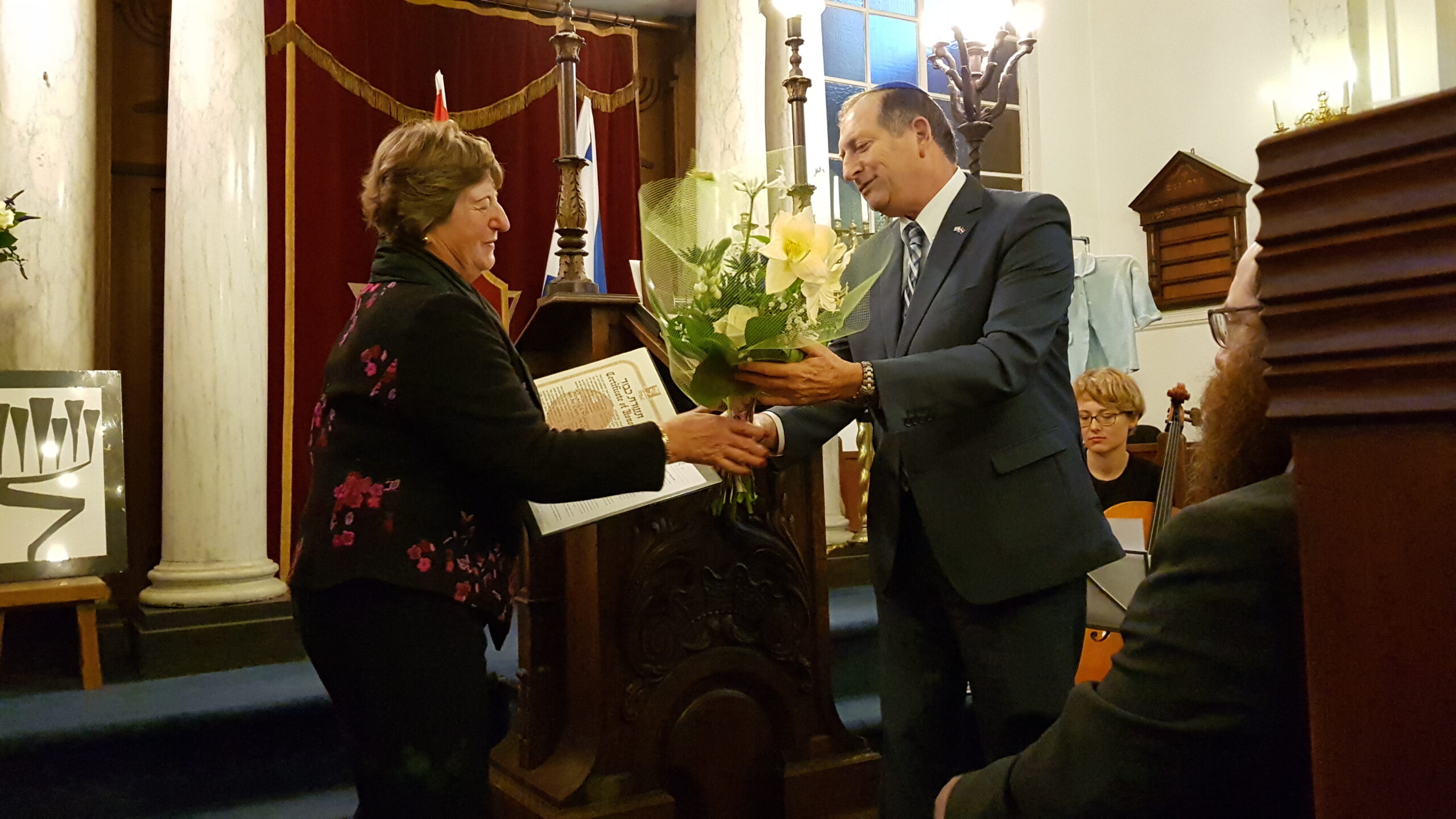 Donderdagmiddag heeft de Israëlische ambassadeur in ons land de Yad Vashem onderscheiding uitgereikt aan Mieke Beishuizen – Van der Laan uit Voorschoten. Mieke die eigenlijk Mia Emanuela Coster heet nam de onderscheiding postuum in ontvangst voor haar adoptieouders Hendrik en Pieternella van der Laan die haar als driejarig meisje in de Tweede Wereldoorlog in hun woonplaats Sneek lieten onderduiken.