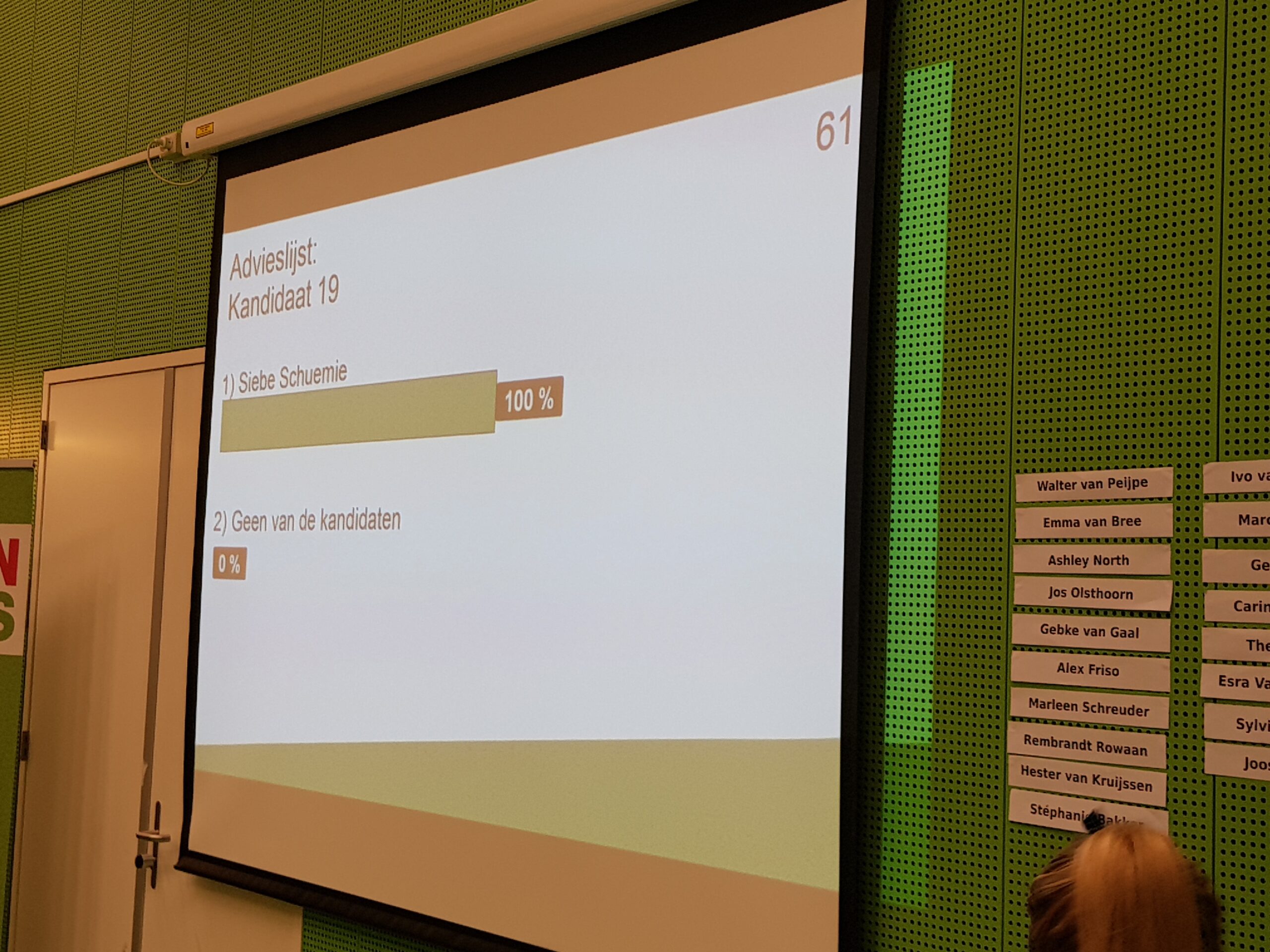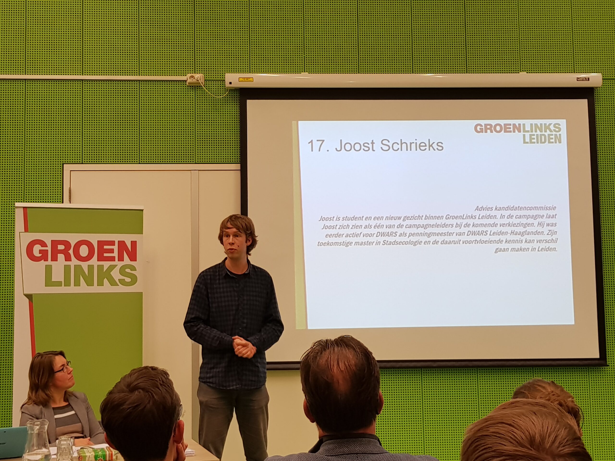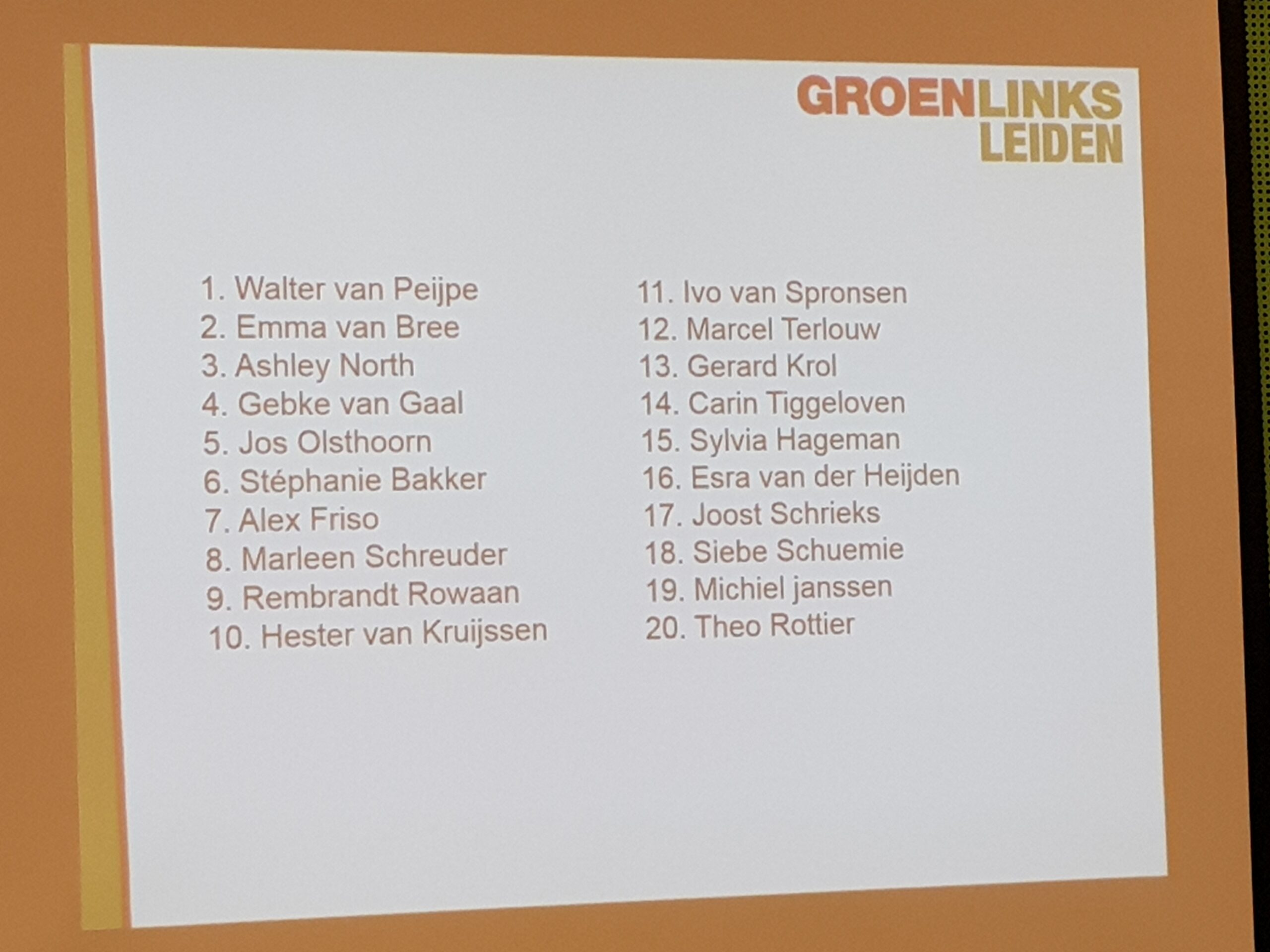 Tijdens een algemene ledenvergadering in Het Gebouw hebben de leden van GroenLinks Leiden gisteravond de kandidatenlijst voor de verkiezingen van maart 2018 vastgesteld. Over de bovenste twintig plekken werd per plek gestemd. De lagere plaatsen op de, bij GroenLinks heten dat lijstvullers en lijstduwers, worden met goedkeuring van de leden later door het bestuur ingevuld.
