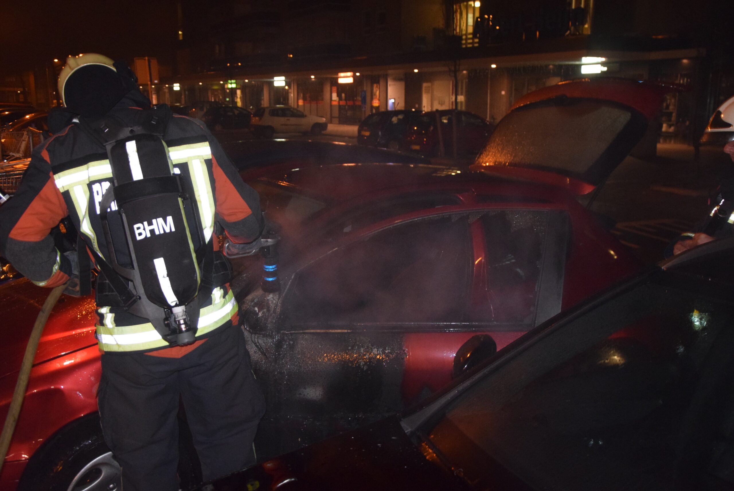 Door de vlammen raakte ook een auto flink beschadigd. (Foto: Ricardo Bakker).