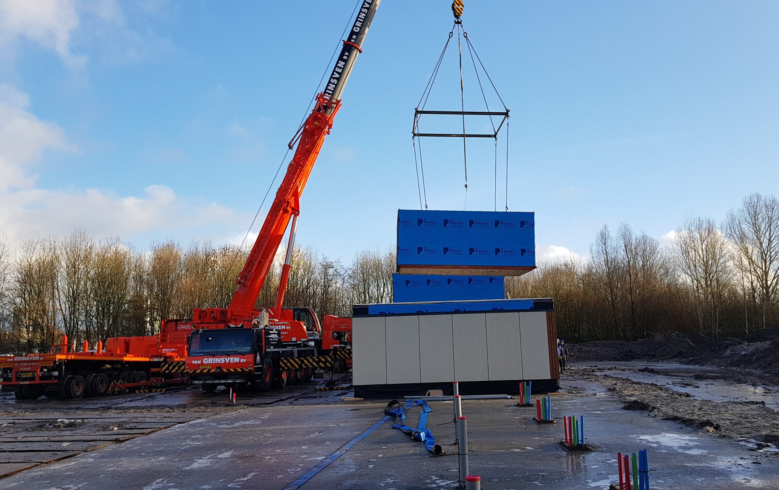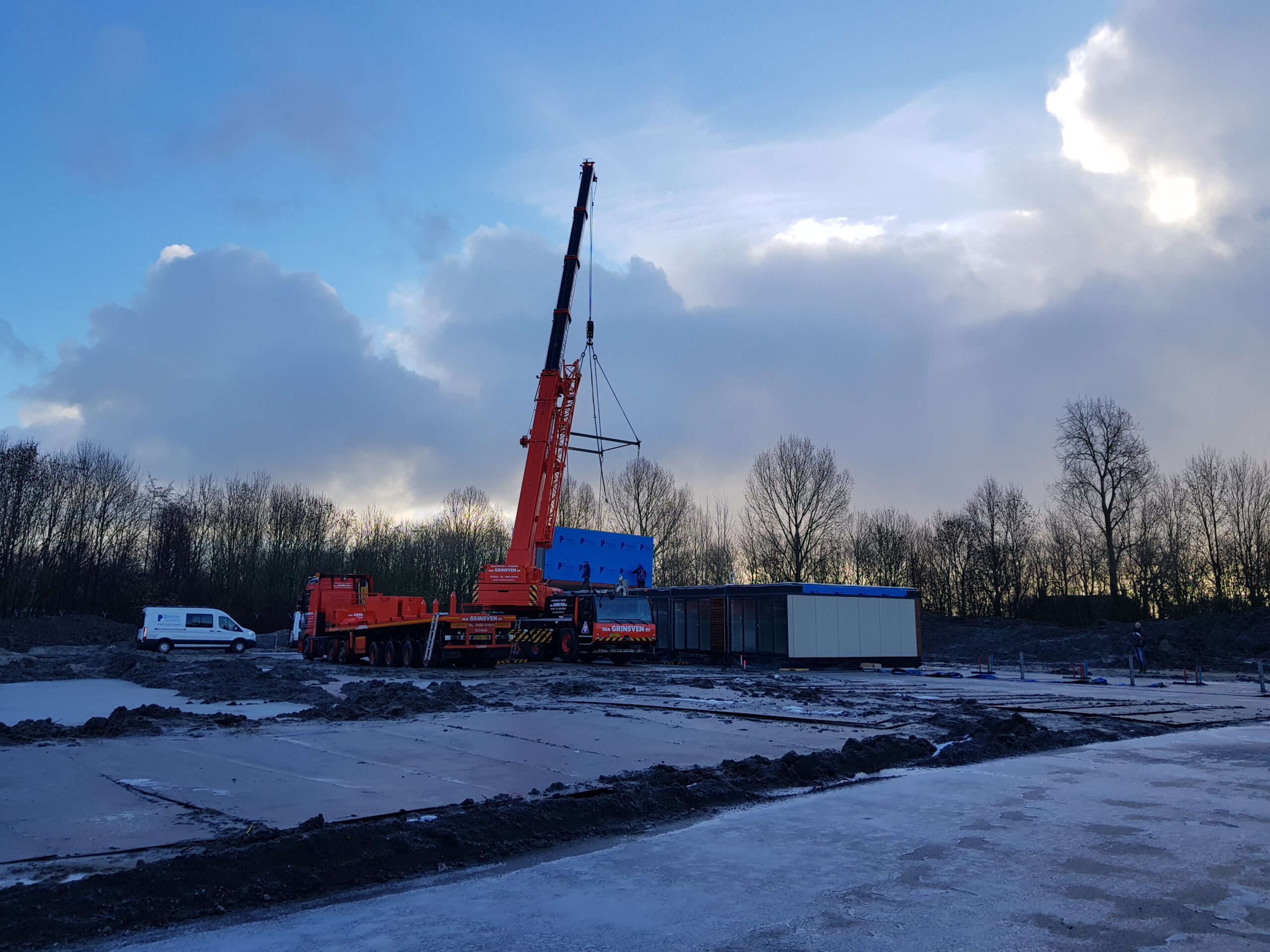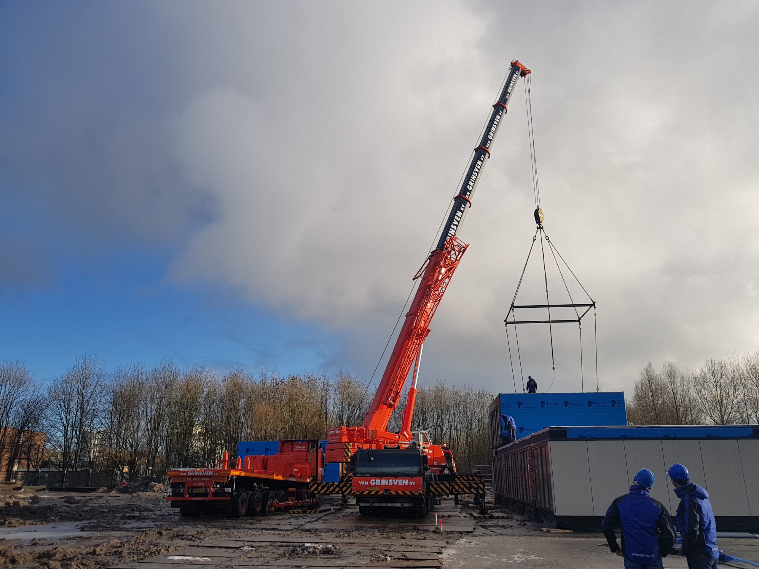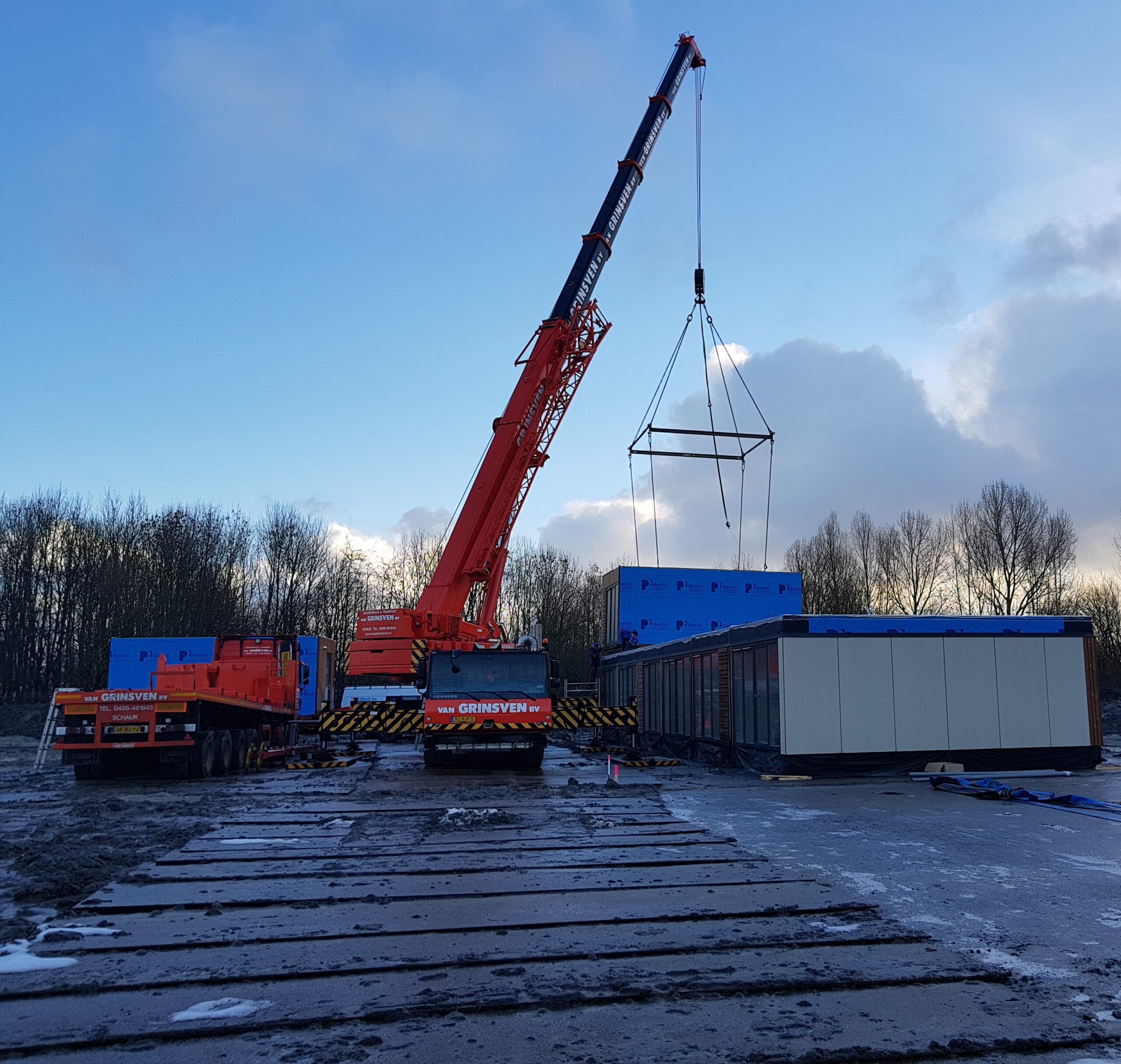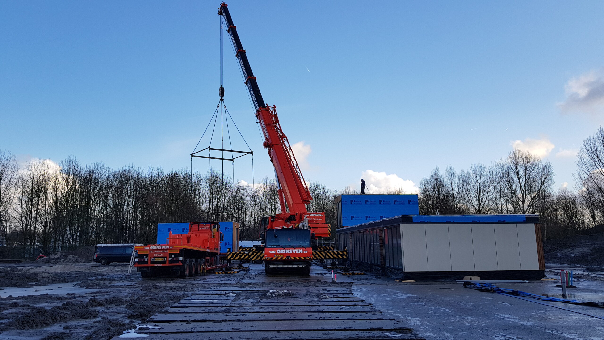Vandaag worden de eerste twaalf woningen geplaatst op de nieuwe woonlocatie langs de Voorschoterweg. Op het braakliggende terrein van het Hoogheemraadschap van Rijnland zijn de afgelopen maanden alle benodigde kabel en leidingen aangelegd voor bijvoorbeeld water, elektriciteit en riolering. Ook is de ondergrond waarop de tijdelijke woningen worden geplaatst verhard.