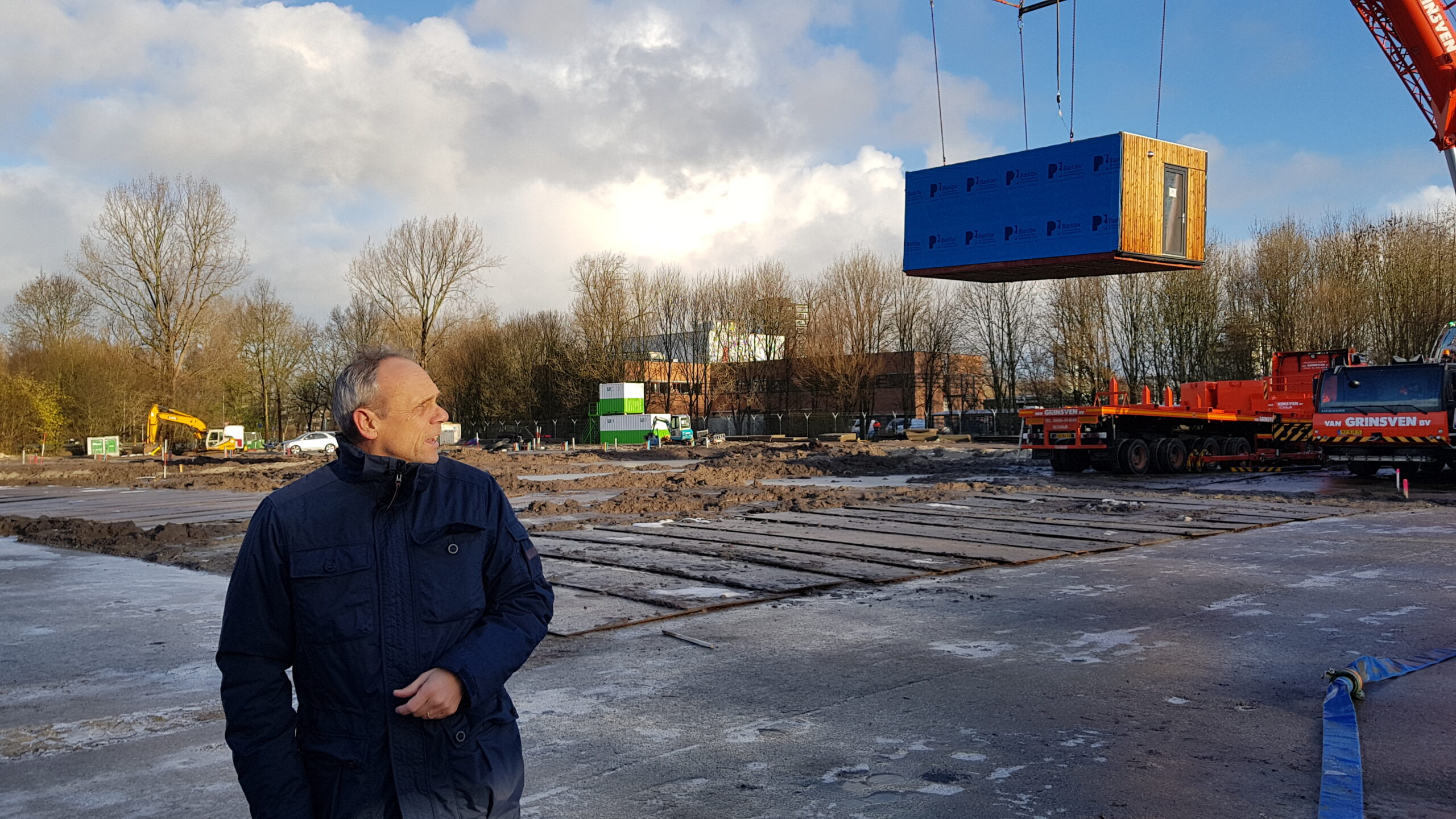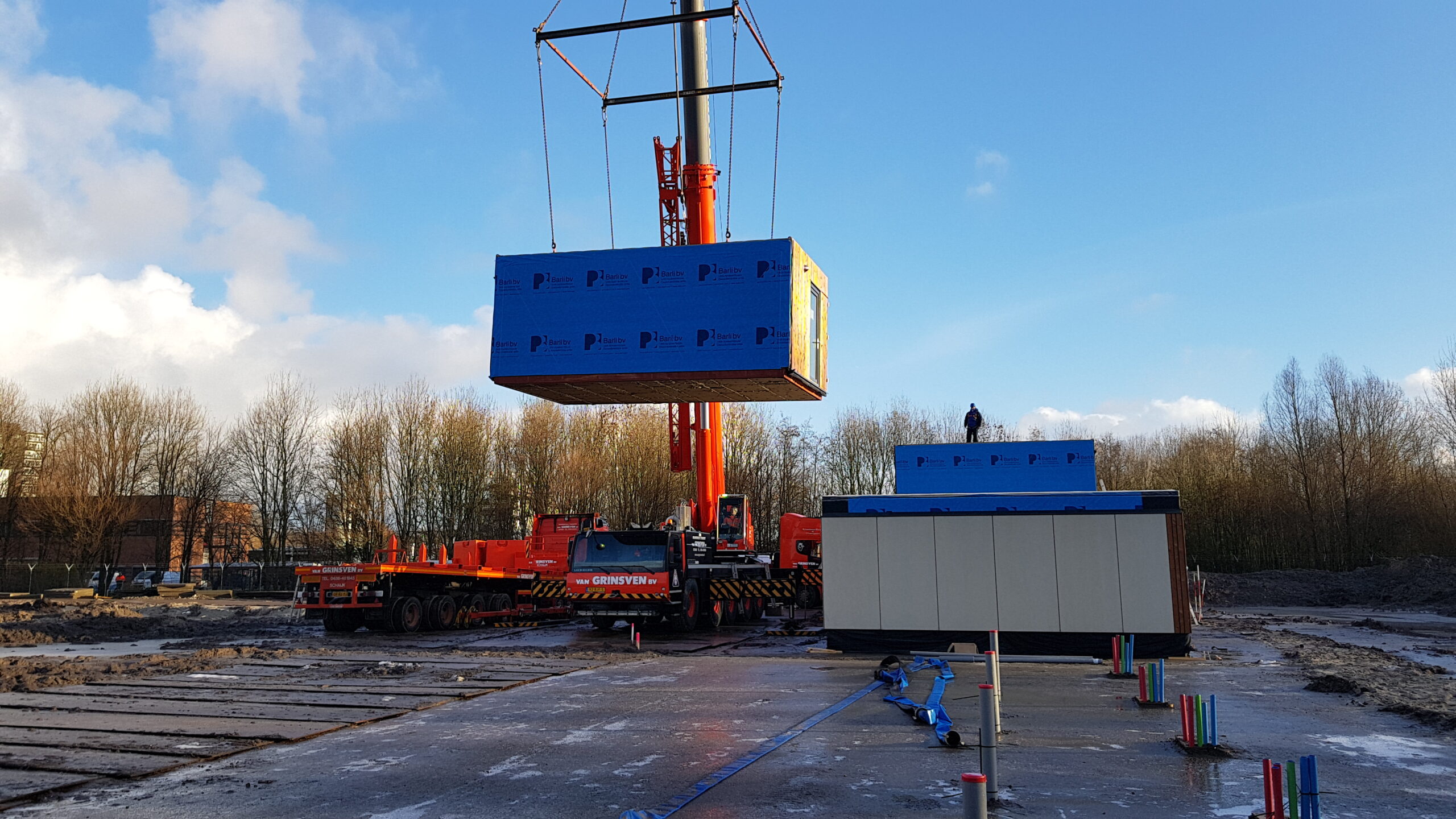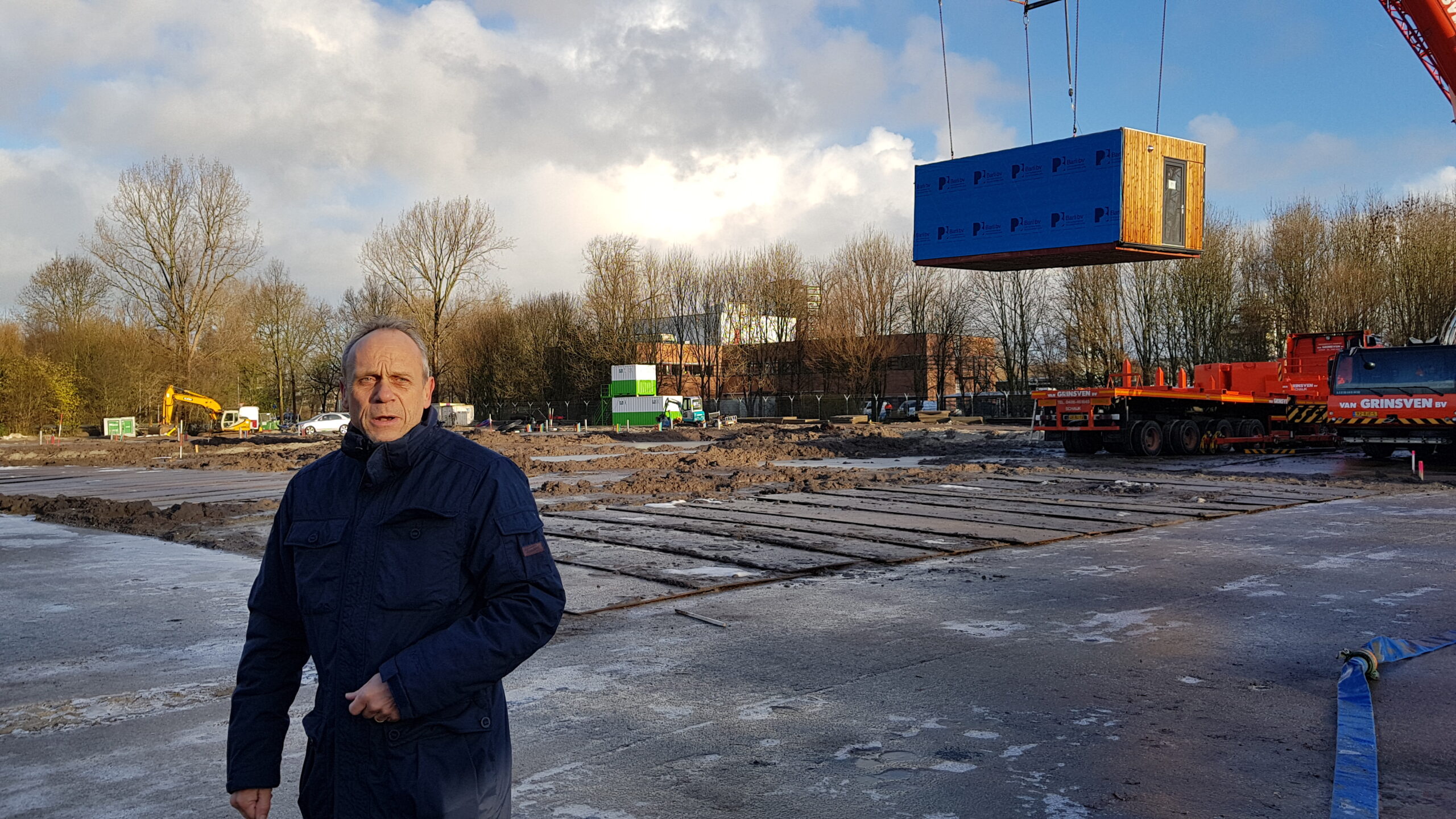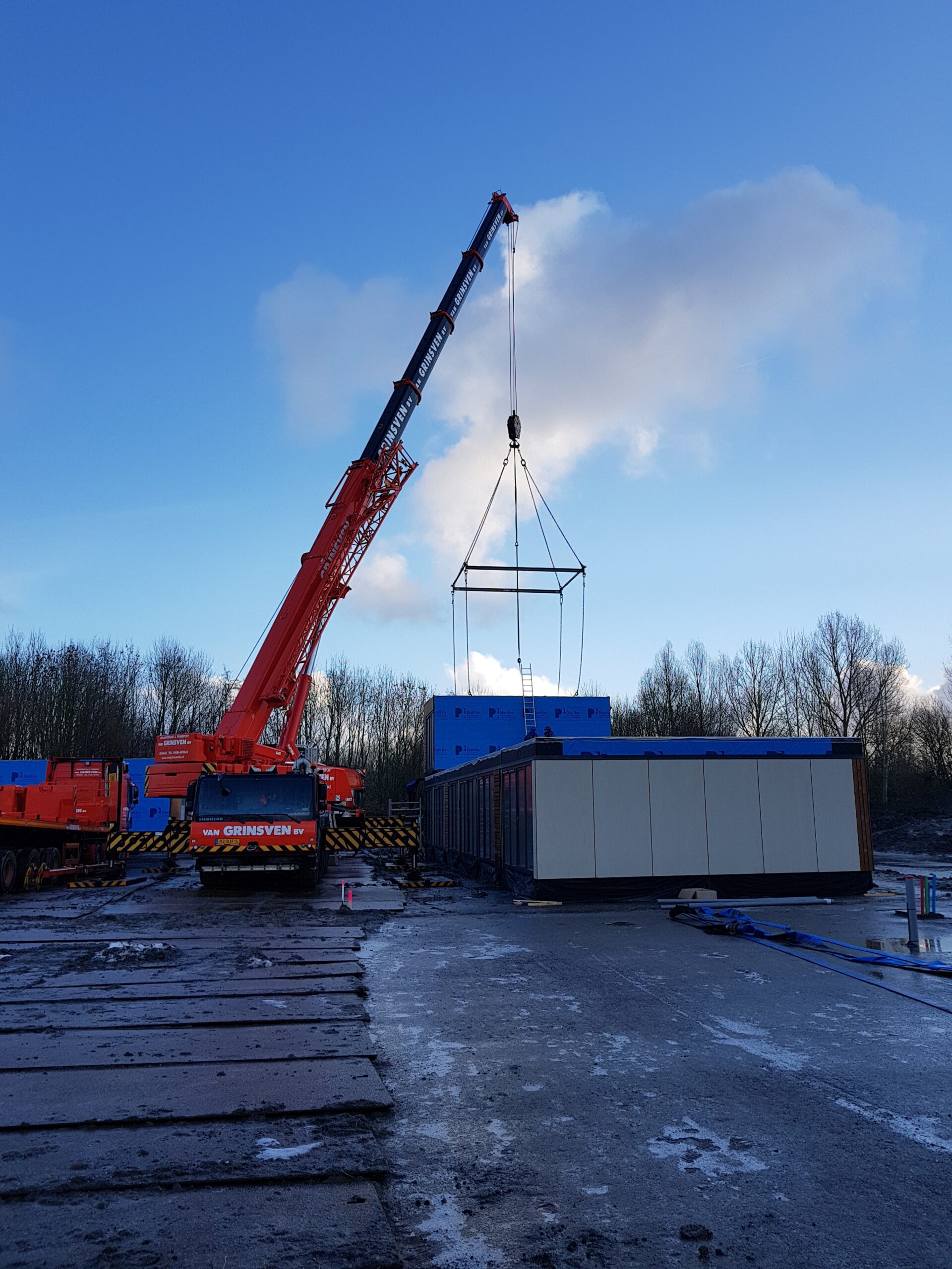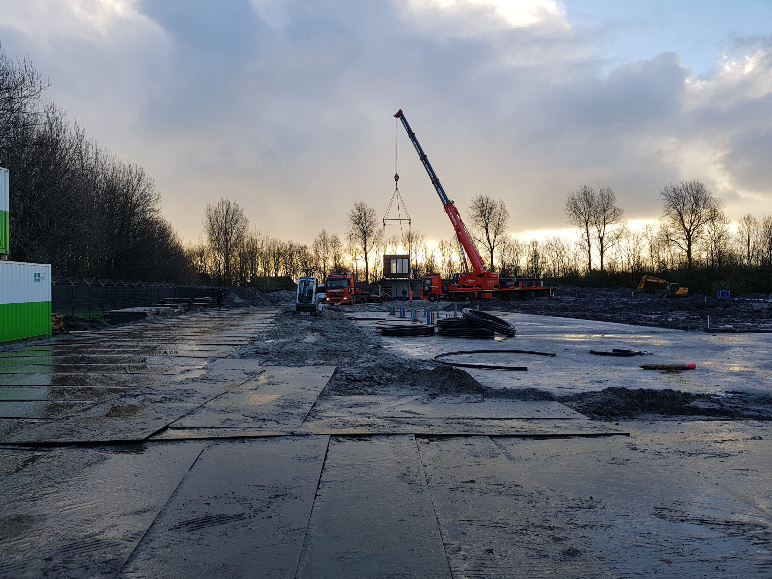 Vandaag worden de eerste twaalf woningen geplaatst op de nieuwe woonlocatie langs de Voorschoterweg. Op het braakliggende terrein van het Hoogheemraadschap van Rijnland zijn de afgelopen maanden alle benodigde kabel en leidingen aangelegd voor bijvoorbeeld water, elektriciteit en riolering. Ook is de ondergrond waarop de tijdelijke woningen worden geplaatst verhard.