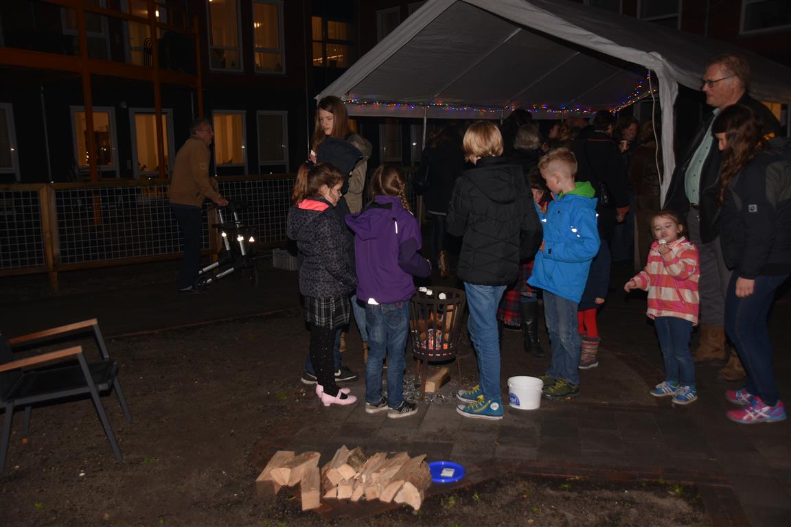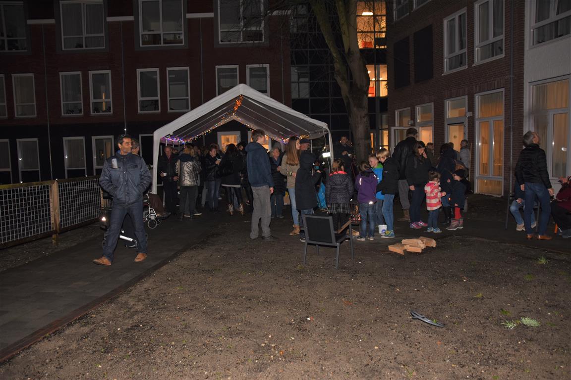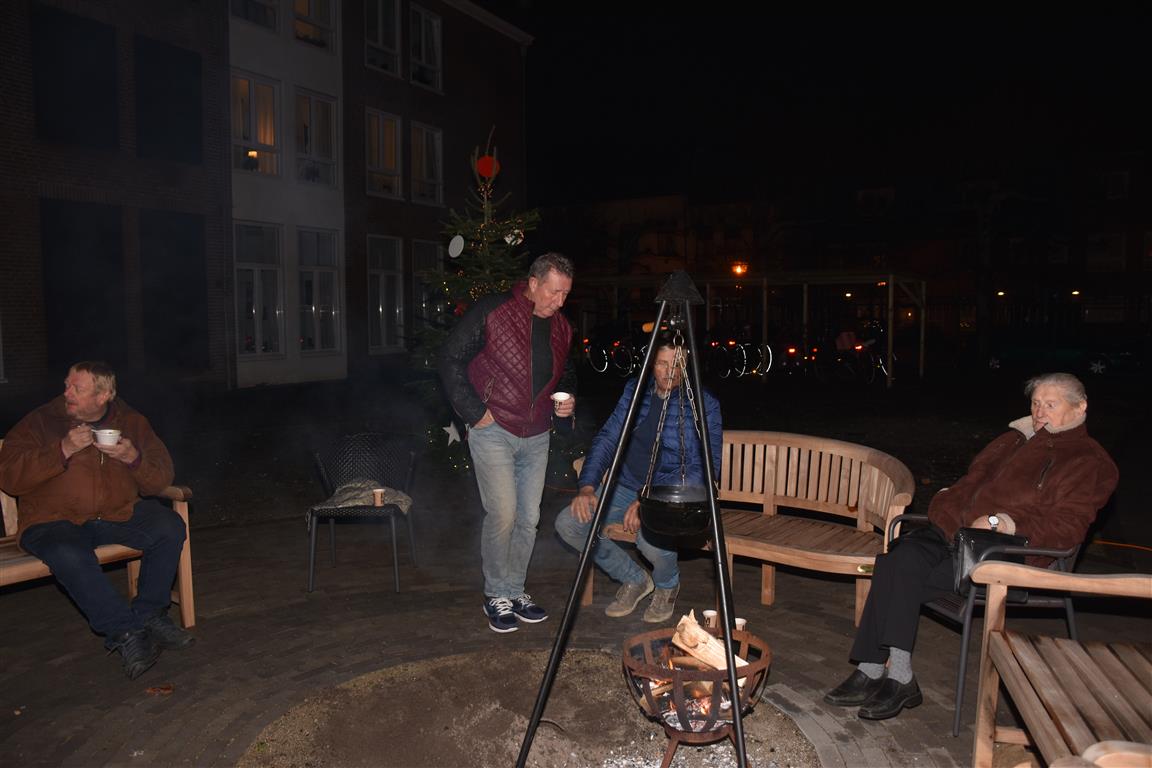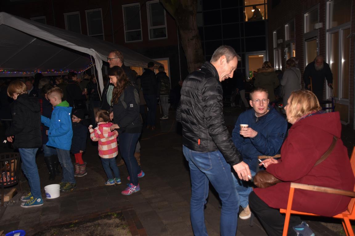 Vrijdagavond werd in de binnentuin een kerstborrel georganiseerd voor bewoners en buurtgenoten. Wethouder Roos van Gelderen was ook aanwezig en vond het geweldig dat de medewerkers deze kerstborrel georganiseerd hadden en er zoveel buurtbewoners aanwezig waren. Iedereen deed zich tegoed aan de hapjes en drankjes en ook aan de kinderen was gedacht. Zij vermaakten zich met het roosteren van marshmallows boven de vuurkorven.