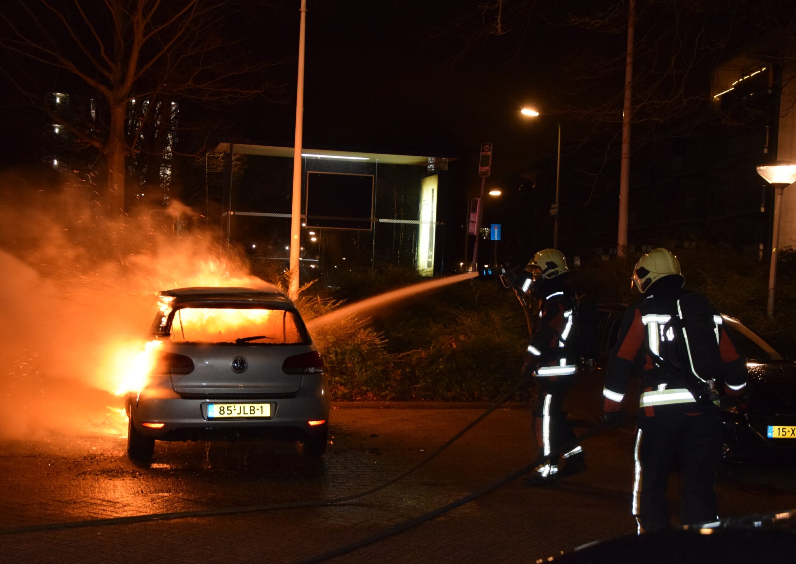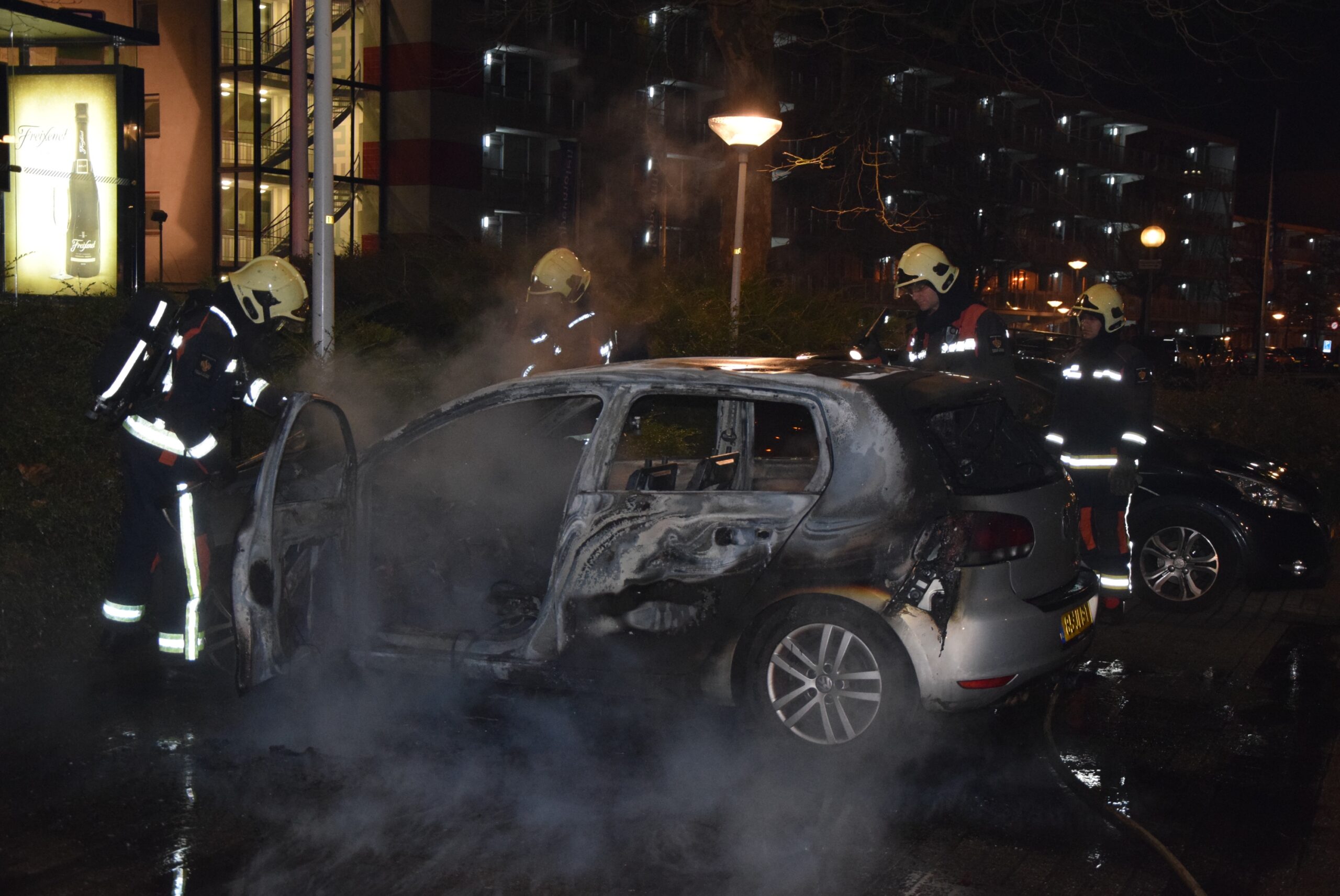 Bij de Valkenhorst ging een auto in vlammen op. De brand begon bij het linker voorwiel. De auto is helemaal uitgebrand. De afgelopen periode zijn meerdere auto’s in Leiden in brand gestoken door aanmaakblokjes op een wiel te leggen en aan te steken. (Foto’s: AS Media).