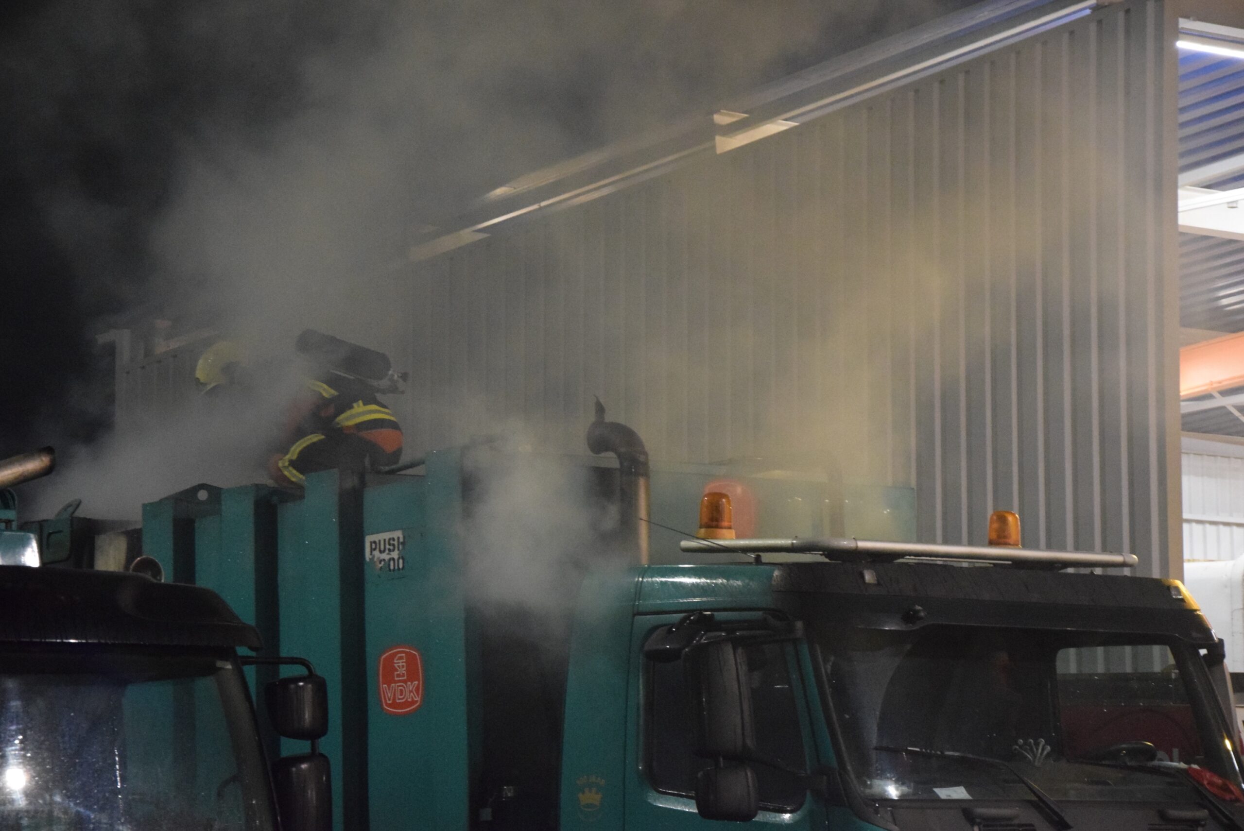 In de vroege ochtend van 1 januari werd brand ontdekt in een vuilniswagen bij de gemeentewerf aan de Admiraal Banckertweg. De wagen was tijdens de jaarwisseling ingezet om samen met politie en brandweer onder meer vreugdevuren op te ruimen. In de wagen is dergelijk materiaal waarschijnlijk weer tot ontbranding gekomen. Om de brand te blussen heeft de brandweer het dak van de vuilniswagen met een slijptol open moeten maken. (Foto: AS Media).