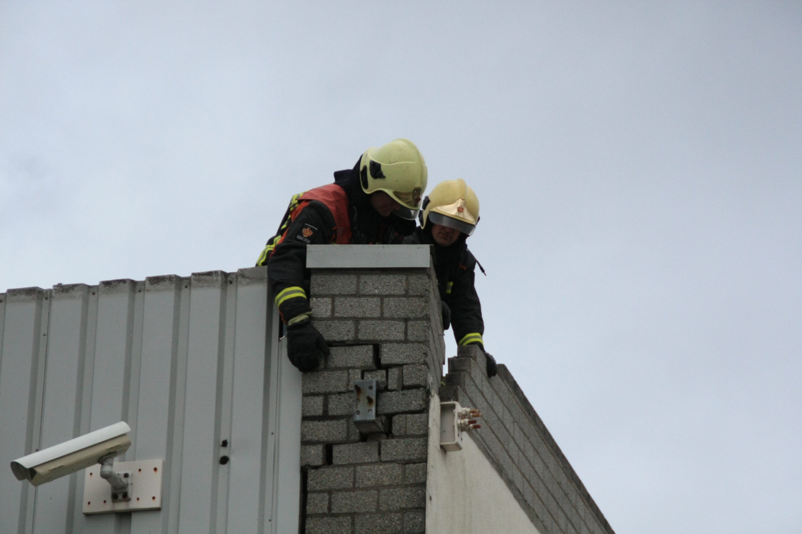 De brandweer is met een hoogwerker het dak op gegaan om de loszittende delen te verwijderen en zo verdere schade te voorkomen.