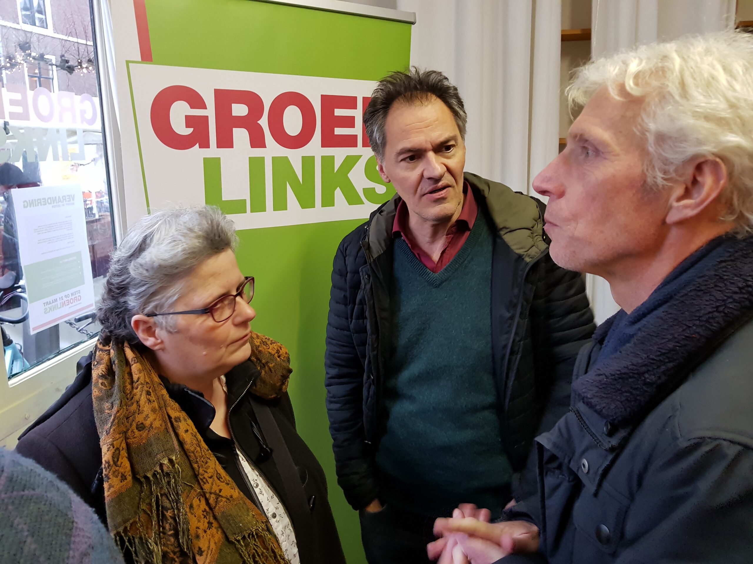 GroenLinks Tweede Kamerlid Bram van Ojik was naar Leiden gekomen om het campagnepand te openen. Na afloop sprak Chris de Waard de voormalige partijleider.