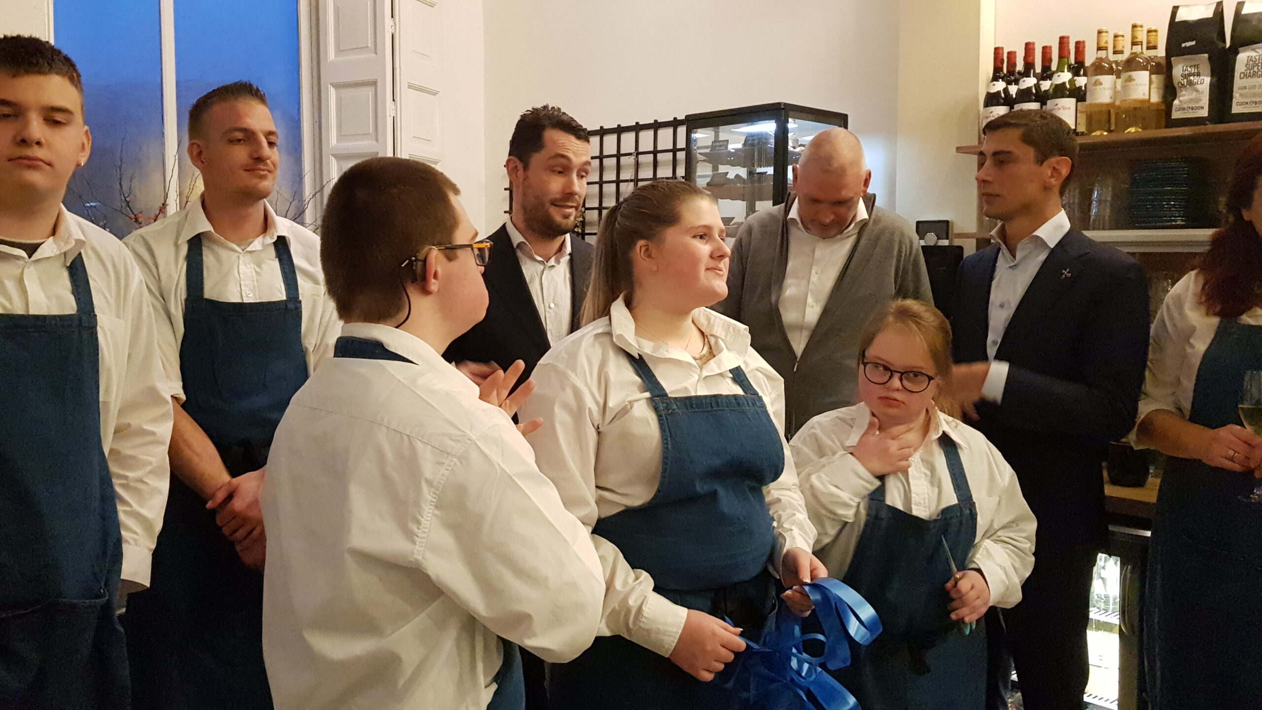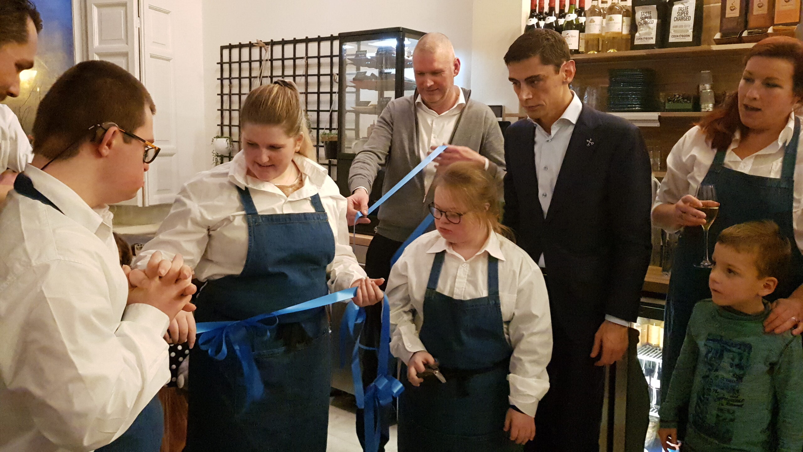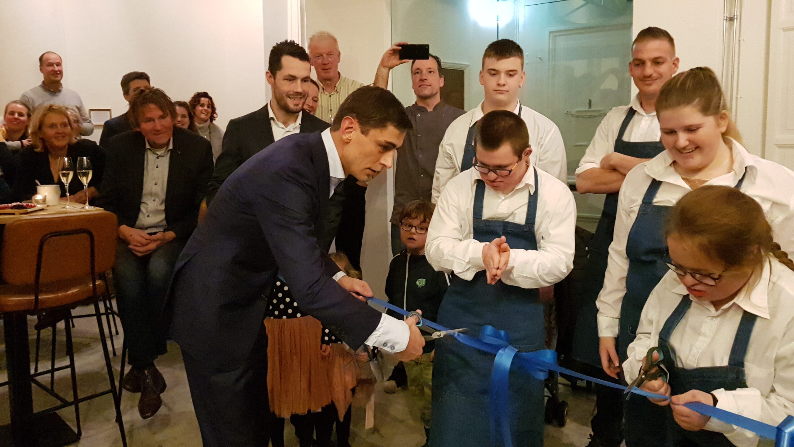 Wethouder Laudy verrichtte de opening van Brownies&Downies door samen met een van de medewerksters, Summer, een lint door te knippen.