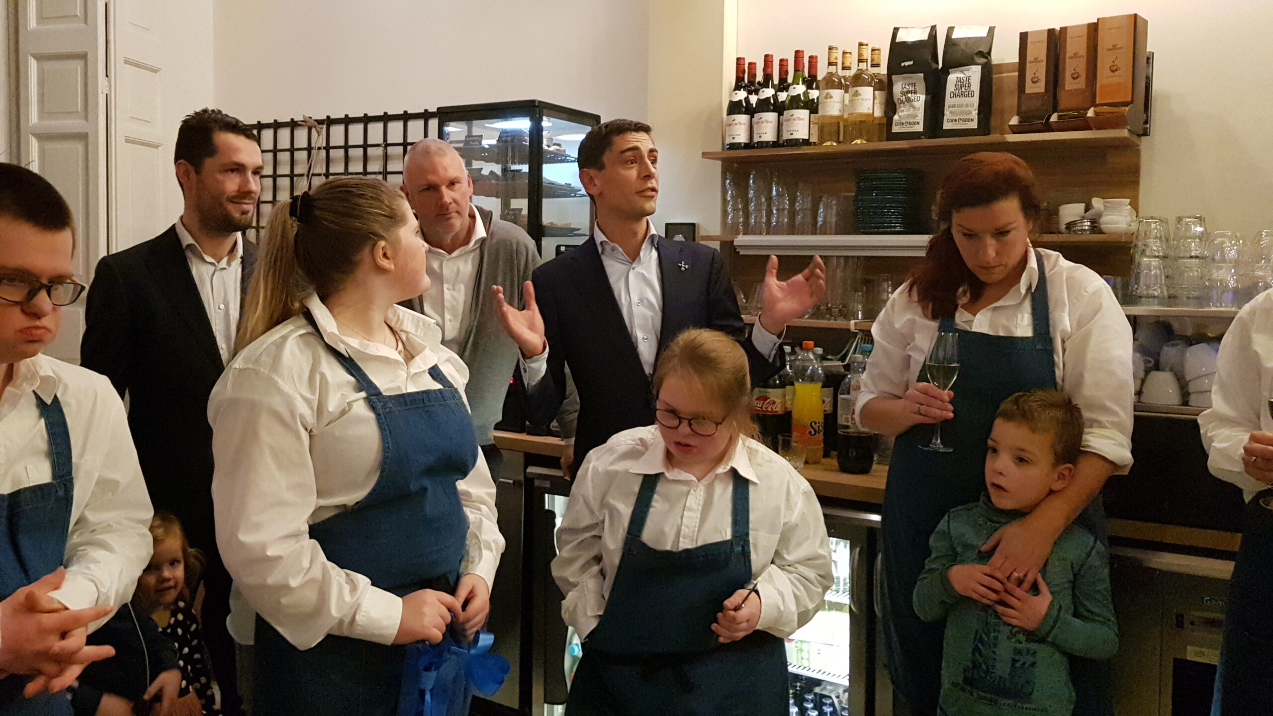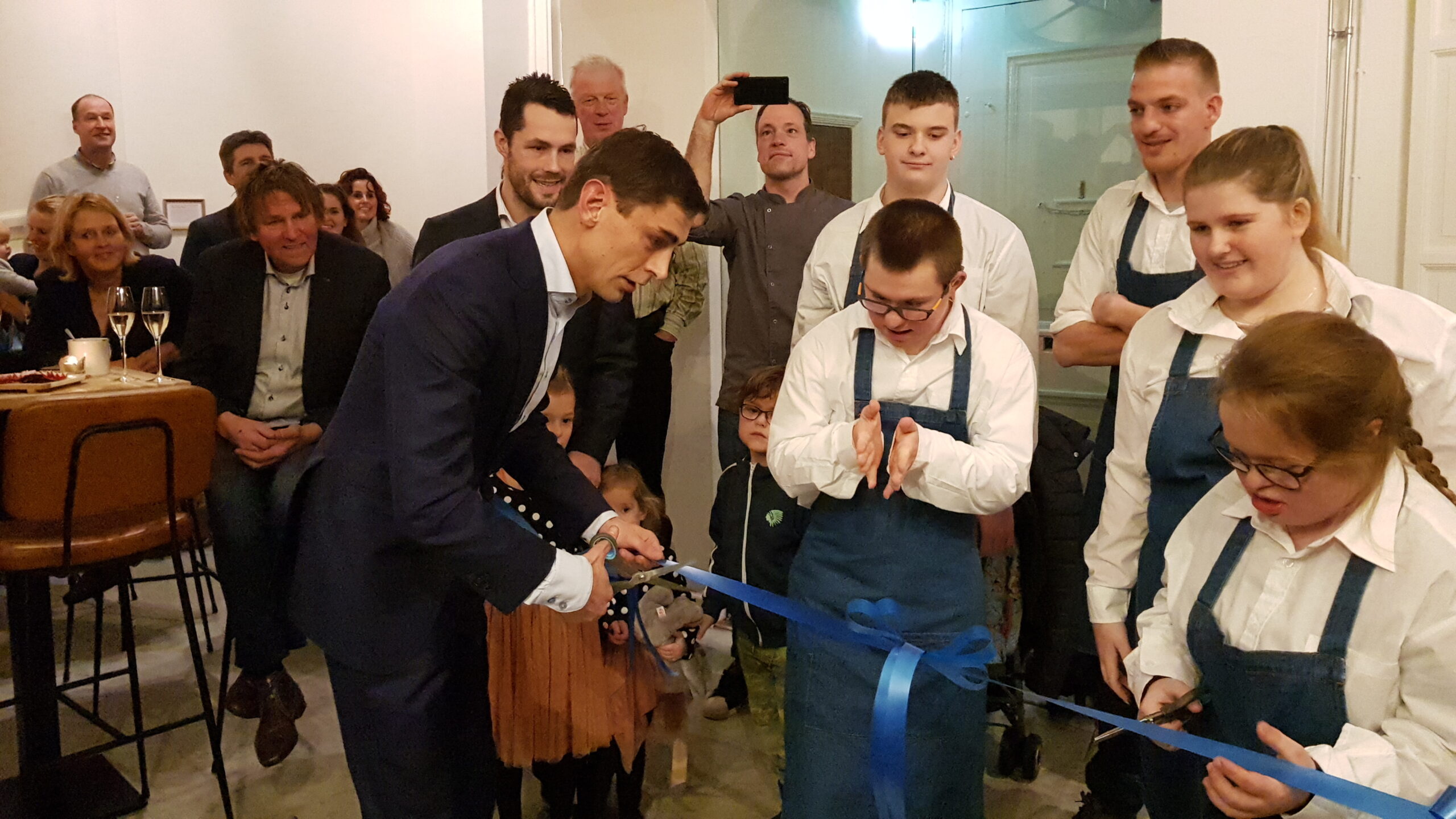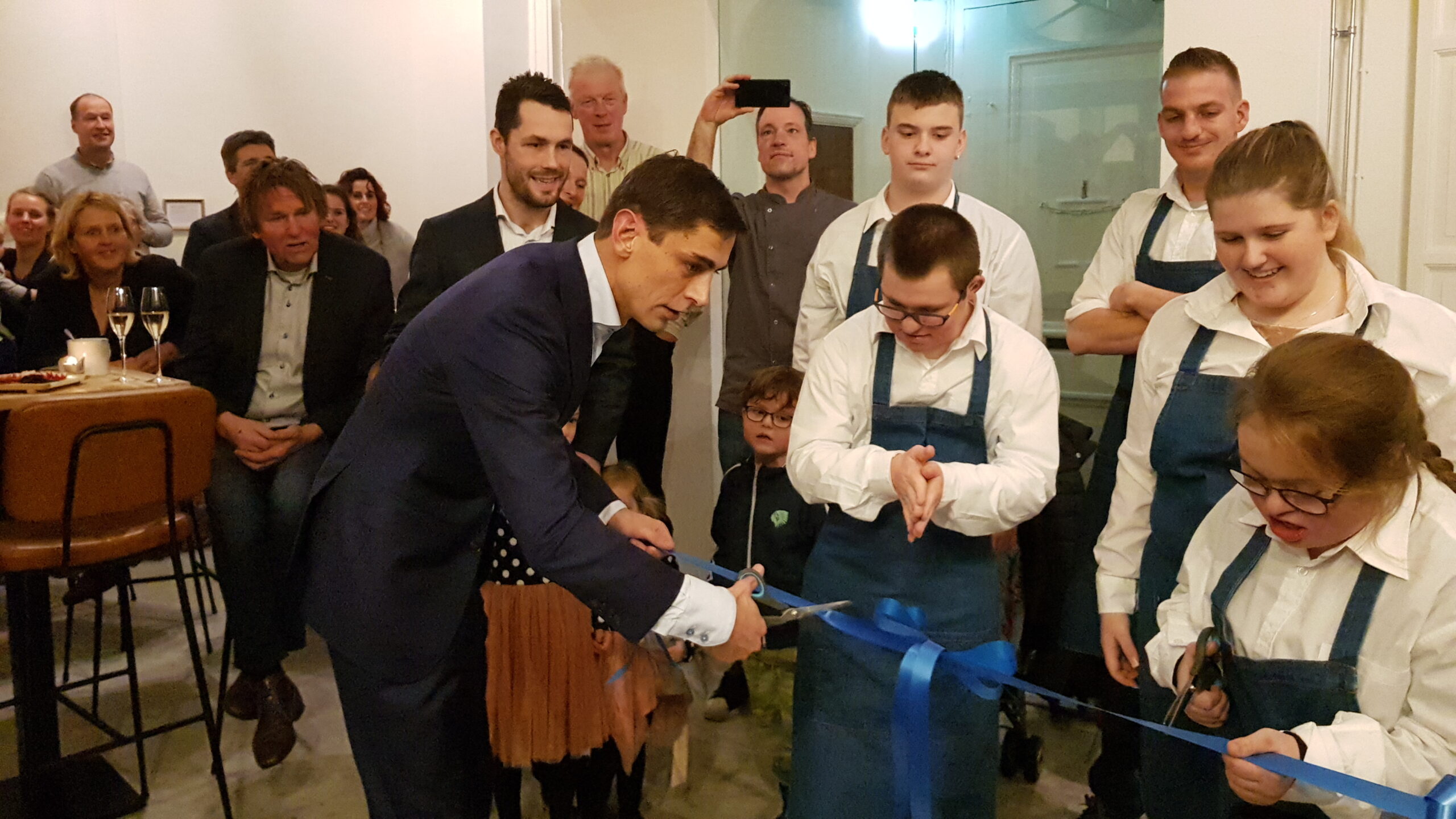De Aalmarkt is klaar. Na jaren van bouwen, verbouwen en restaureren is gisteren met de officiële opening van lunchcafé Brownies&Downies het laatste pand in het Leidse winkelhart in gebruik genomen. Het is de vijftigste vestiging van de keten die de afgelopen jaren de ene na het andere vestiging opende. De werknemers zijn een mix van regulier horecapersoneel en ‘kanjers’ zoals eigenaar Stefan Verboom de medewerkers met het syndroom van down noemt die een deel van het werk voor hun rekening nemen.