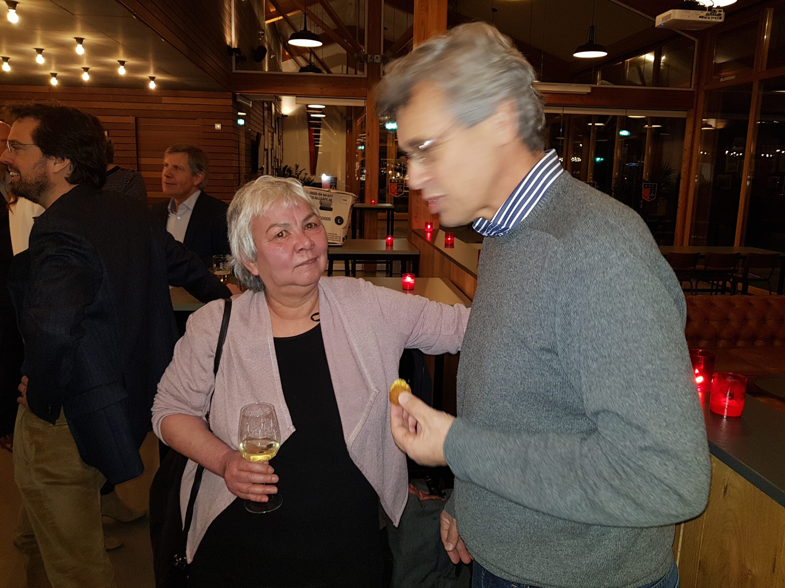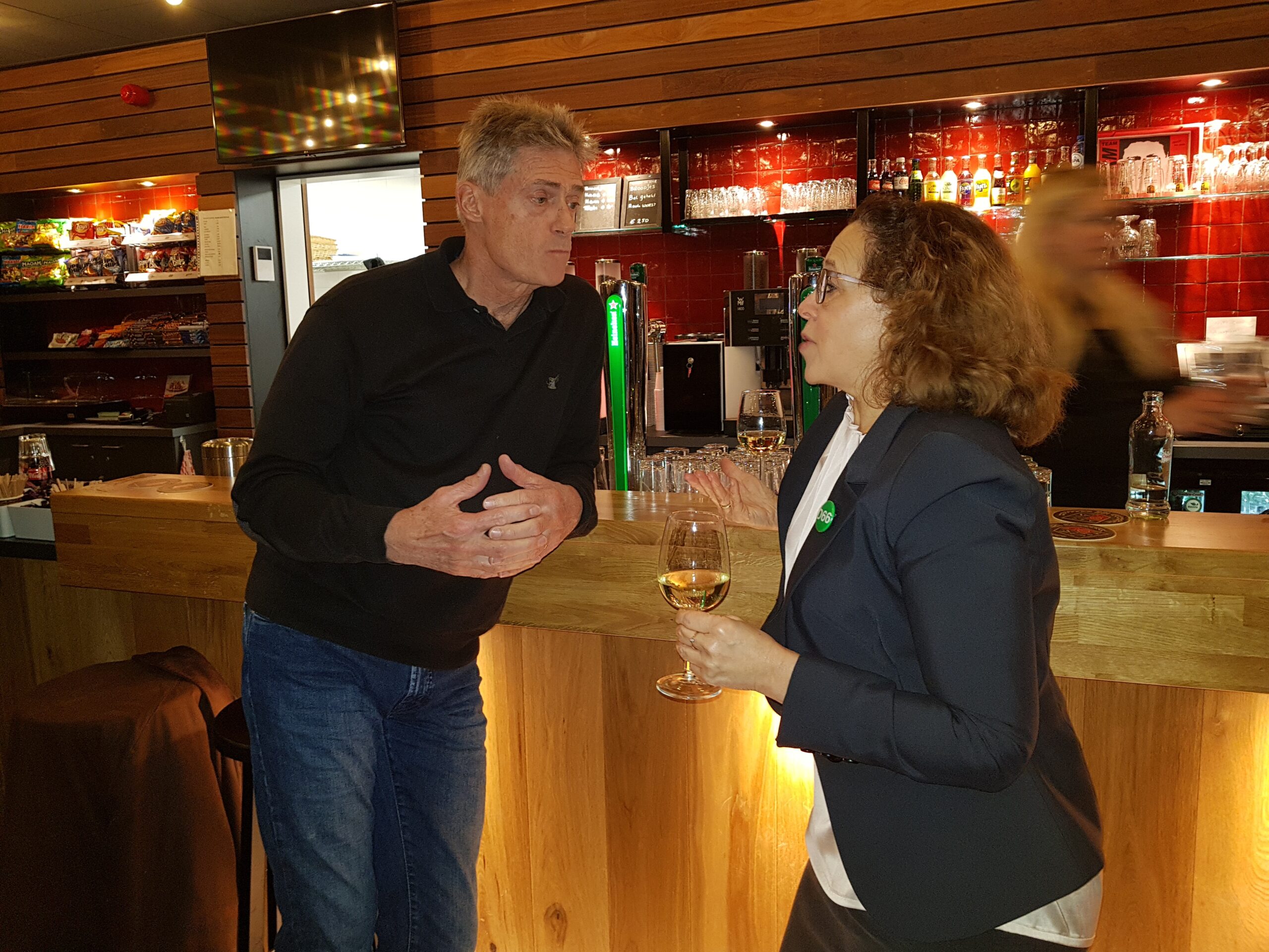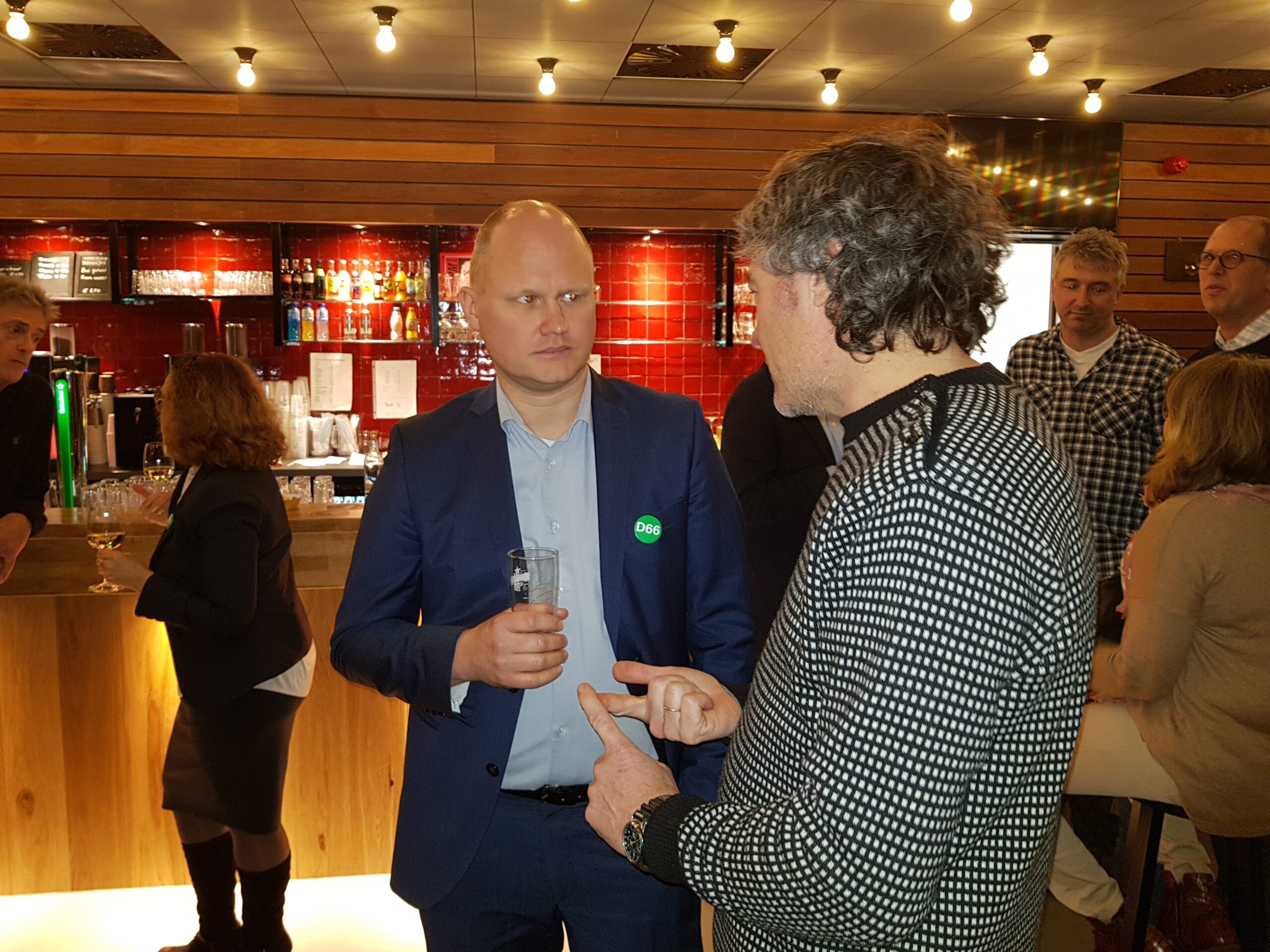 Chris de Waard is gesprek met lijsttrekker Elfred Bus van D66 Oegstgeest over verkiezingsthema’s van de partij.