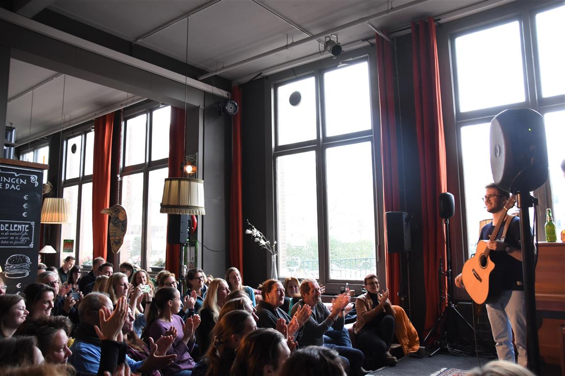 Een lange rij wachtenden stond zondagmiddag al ruim voor 13:00 uur op de stoep van Galerie Café de Leidse Lente om binnen te komen bij de 1e auditie zondag van het 40e VARABNN Leids Cabaret Festival. Voor veel bekende cabaretiers, zoals bijvoorbeeld: Najib Amhali, Erik van Muiswinkel, Lebbis en Jansen, Sanne Wallis de Vries, Wim Helsen, Micha Wertheim, Katinka Polderman, De Partizanen en Tim Fransen was dit festival de opstap naar een grote landelijke bekendheid. Zondagmiddag traden de eerste 8 kandidaten op waaronder 2 Belgische deelnemers. De presentatie van de audities is dit jaar in handen van ‘De Gestampte Meisjes’ die zelf vorig jaar een plaats in de finale wisten te behalen. Het niveau van de meeste optredens was hoog en dat beloofd wat voor de voorrondes op 12- en 13 februari, de halve finale op 15- en de grote finale op 17 februari in de Leidse Schouwburg. Zondagmiddag 28 januari is de 2e auditie ronde in De Leidse Lente en ook dan weer gratis toegang.