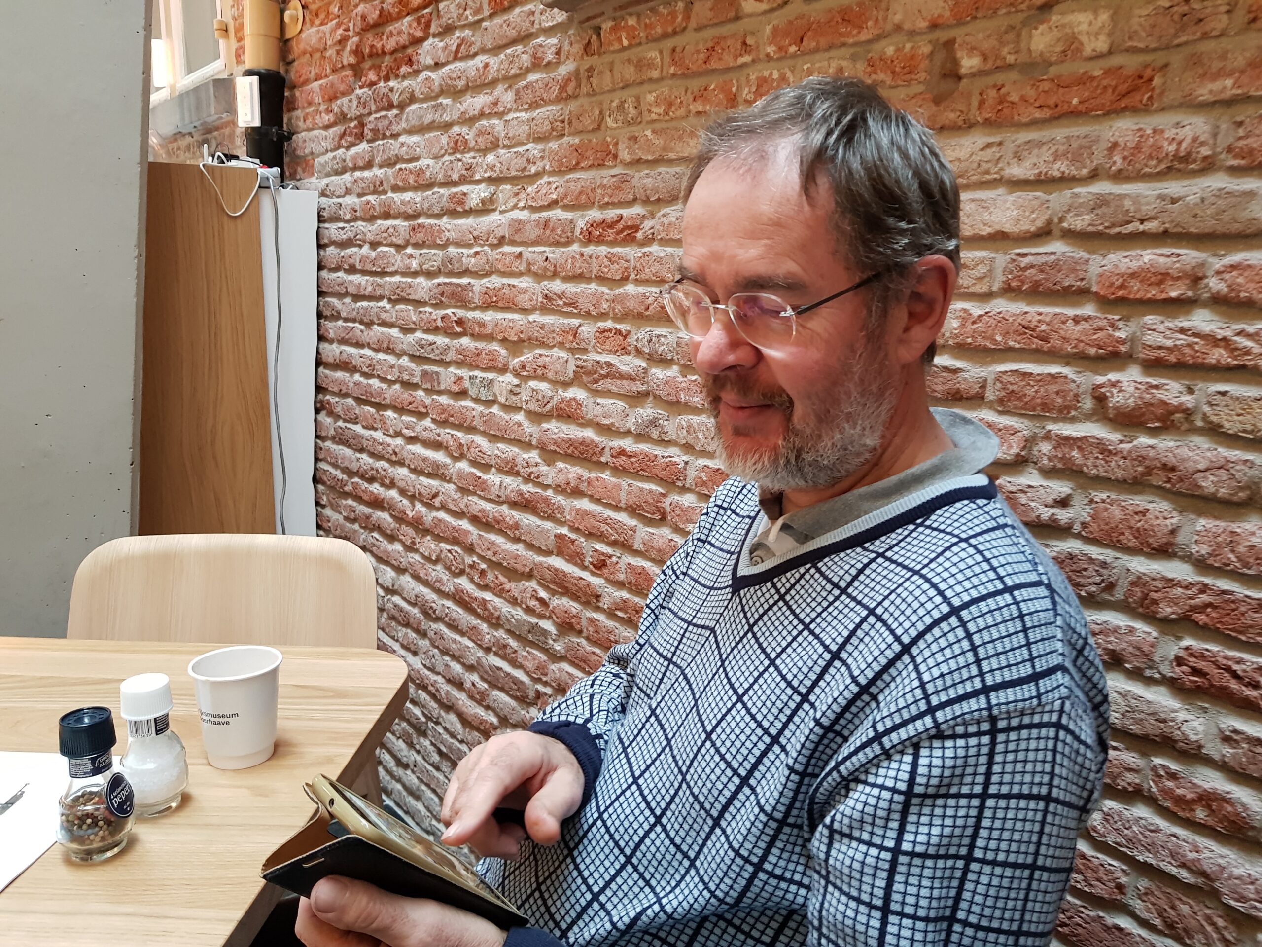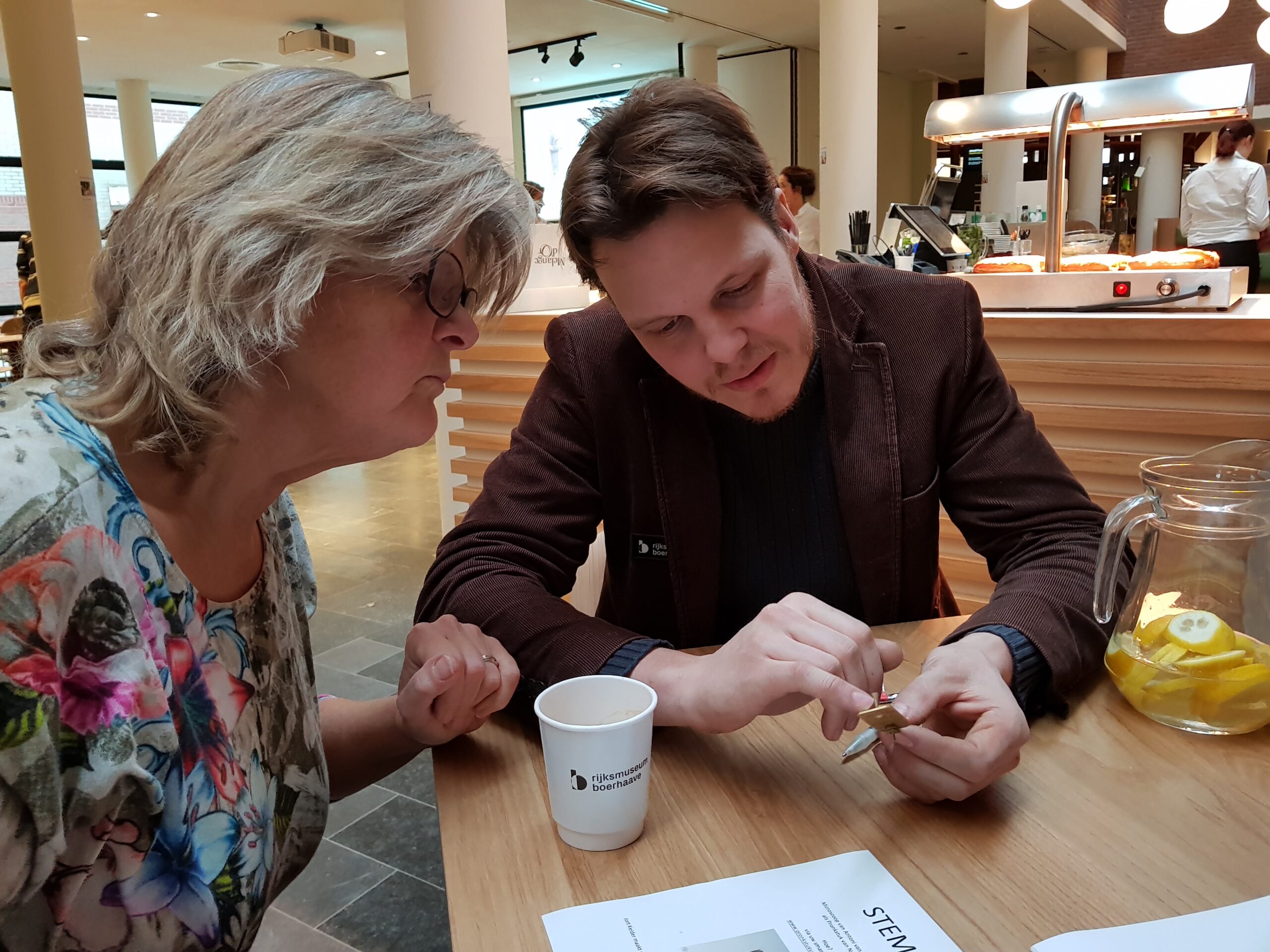 Chris de Waard ging even stemmen bij Boerhaave en sprak met directeur Dirk van Delft en met bezoeker Arrie Maas die ook kwam stemmen op de Van Leeuwenhoek-microscoop.