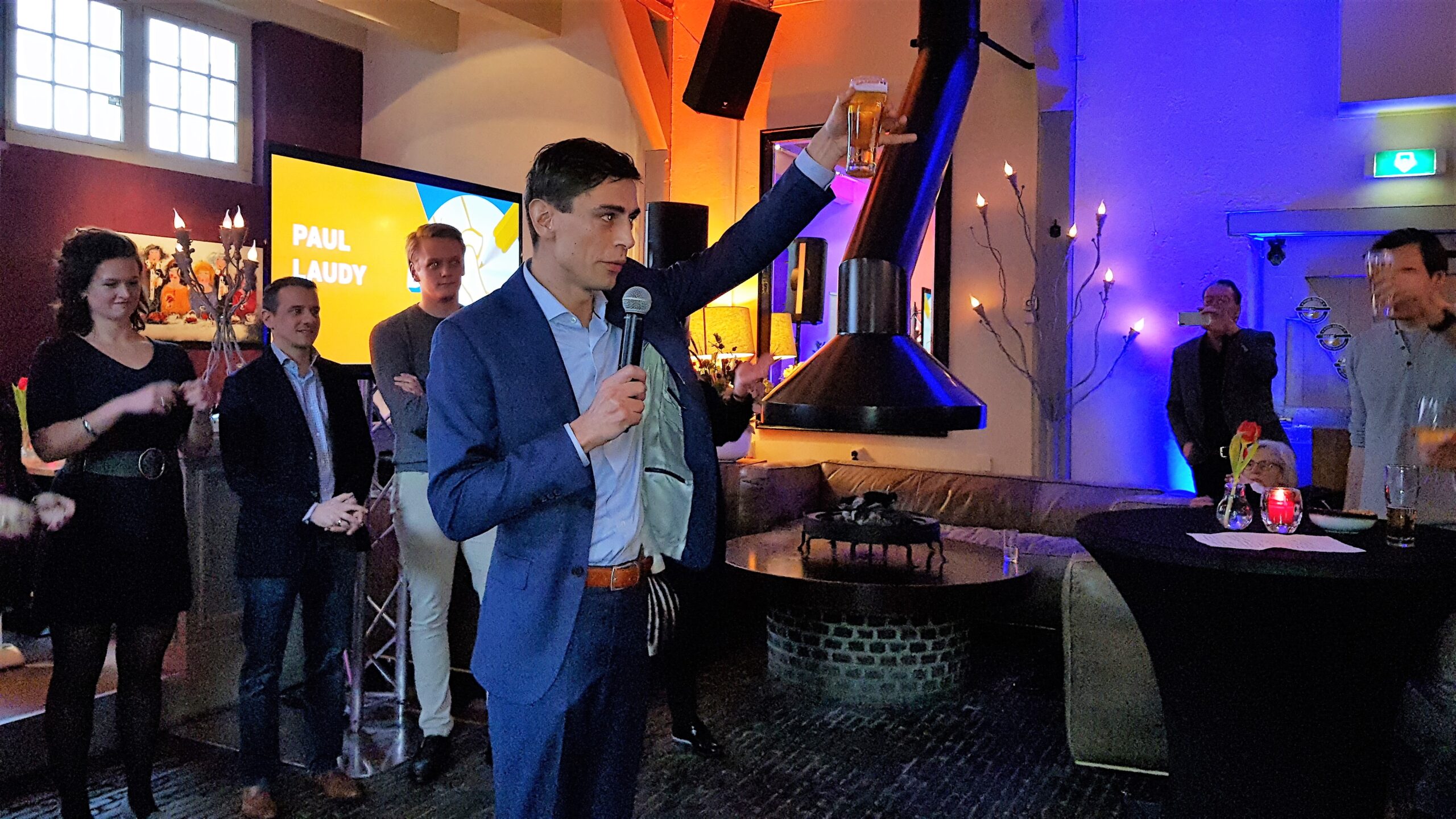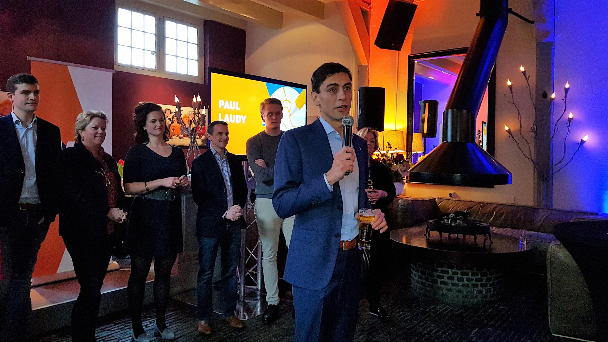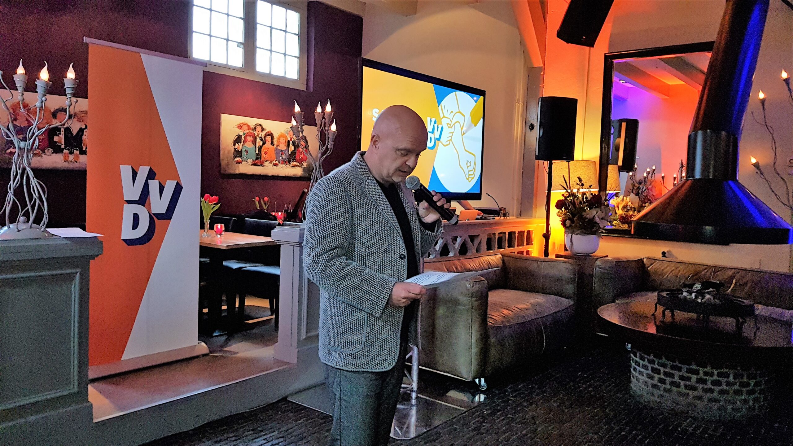 Lijsttrekker Paul Laudy van de VVD Leiden sprak gisteren zijn achterban toe op de nieuwjaarsbijeenkomst van zijn partij.