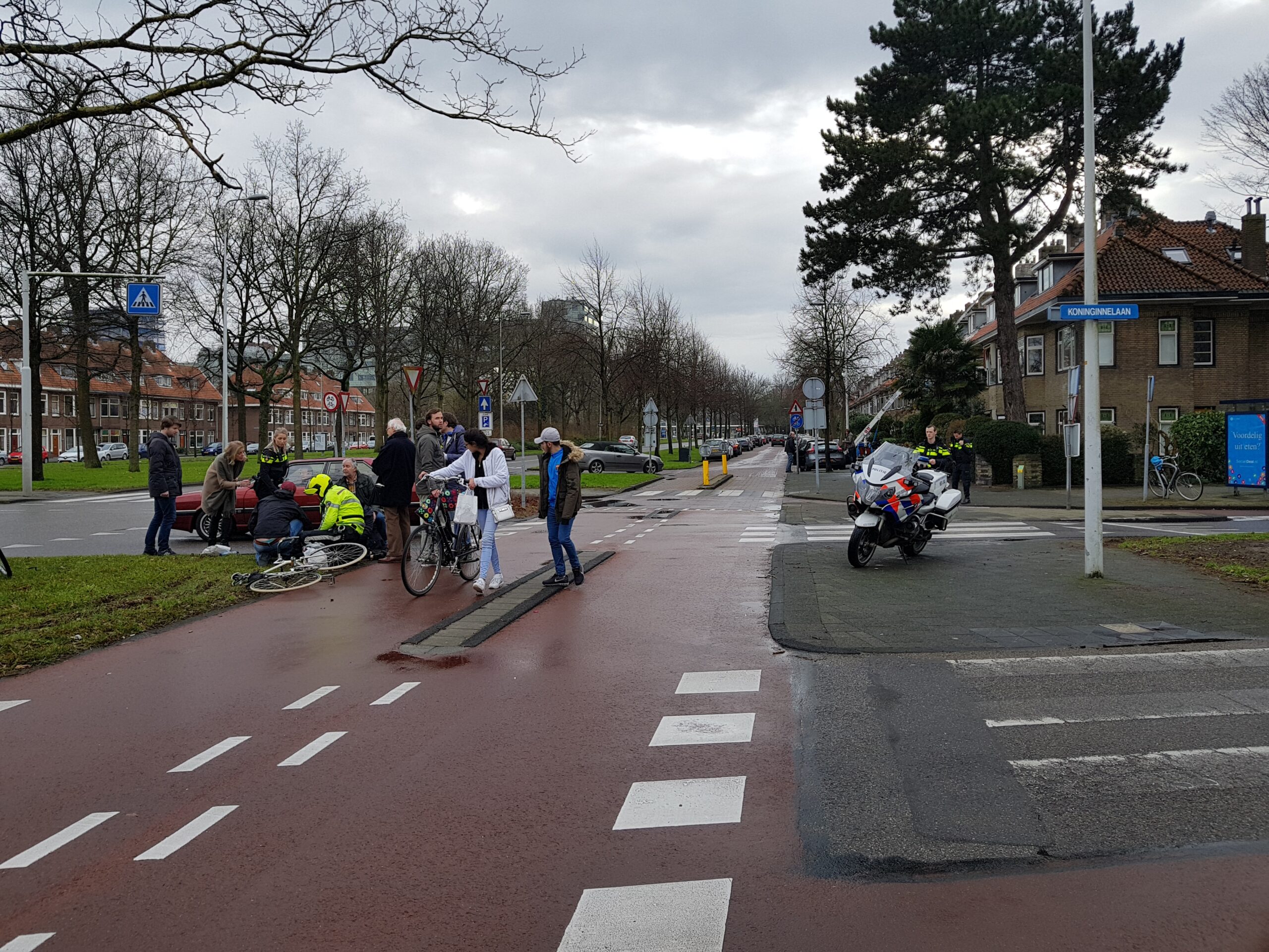 Zaterdagmiddag zijn twee fietsers gewond geraakt bij een botsing met een auto. Dat gebeurde op de kruising met de Koninginnelaan. De automobilist zag de overstekende fietsers over het hoofd. De twee zijn per ambulance overgebracht naar het ziekenhuis.