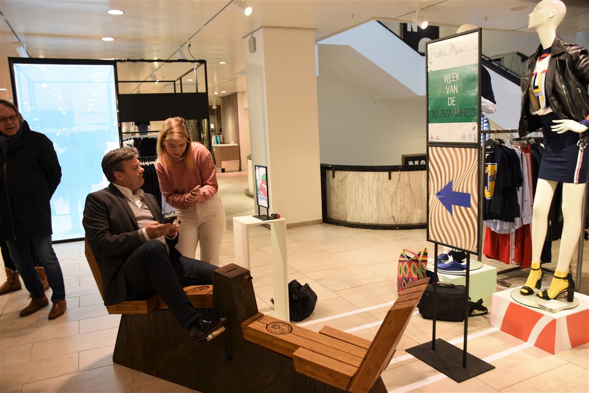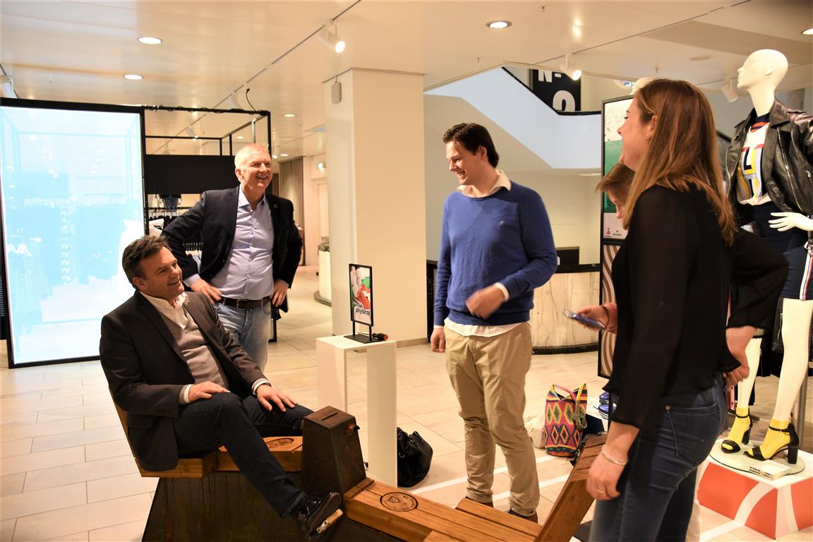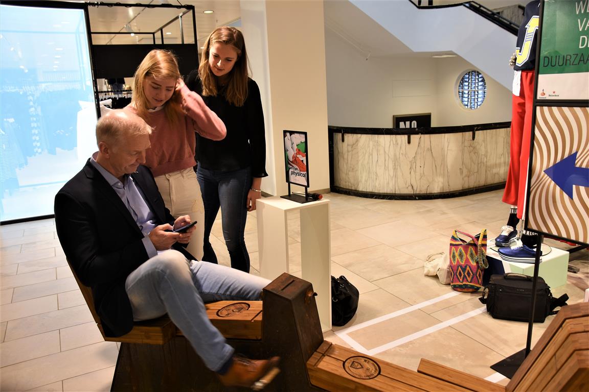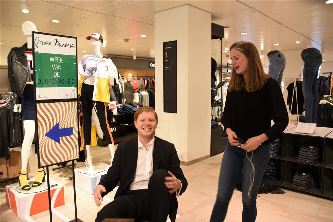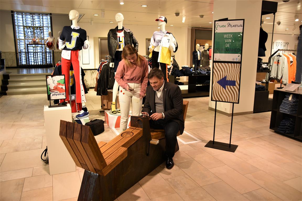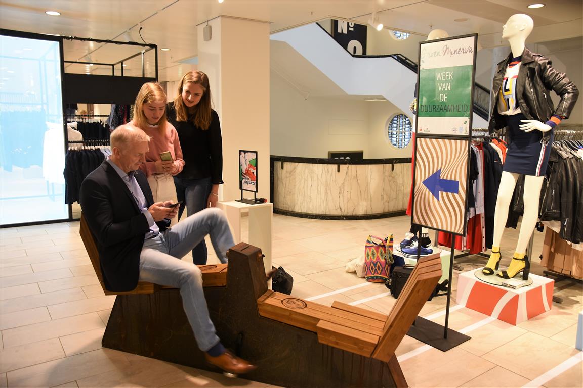 Vorige week stond studentensociëteit Minerva in het teken van duurzaamheid. De werkgroep Groen Minerva had diverse activiteiten georganiseerd om duurzaamheid onder de aandacht te brengen. Tijdens de warme truiendag ging de verwarming een aantal graden lager, er waren vegetarische maaltijden en er werd niet uit plastic maar uit glas gedronken. In de sociëteit stond een energiefiets waarop je al fietsend je mobieltje kon opladen of stroom opwekken om een tosti te maken. Veel leden fietsten op die manier een gratis tosti bij elkaar. De leden van de werkgroep sloten de week af door zaterdagmiddag het winkelend publiek in Hudson’s Bay de mogelijkheid te bieden ook hun mobieltje op te laden op de energiefiets. De D66 wethouders Paul Dirkse en Robert Strijk kwamen ook langs om hun mobiel op te laden en te horen hoe de Week van de Duurzaamheid op Minerva verlopen was. De energiefiets was geleend van station Kerckebosch -Zeist waar hij wachtende passagiers de mogelijkheid biedt sportief bezig te zijn en direct hun mobiel op te laden. Beide wethouders waren enthousiast over de energiefiets en vonden dat hij ook in Leiden niet zou misstaan in de openbare ruimte.