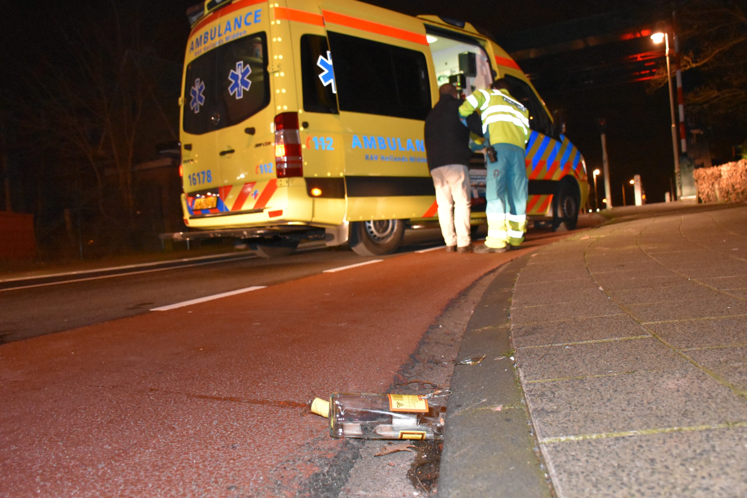 Woensdagavond is even na 22.00 uur is een voetganger licht gewond geraakt bij een aanrijding met een bestelbus op hoek van de Morsweg en de Rijnzichtstraat in Leiden. Onderzoek in de ambulance wees uit dat de voetganger niet mee naar het ziekenhuis hoefde. Het ambulancepersoneel rook direct al een sterkte alcohollucht bij het slachtoffer. Toen het ambulancepersoneel de man optilde, viel er een fles sterkte drank uit zijn jas.