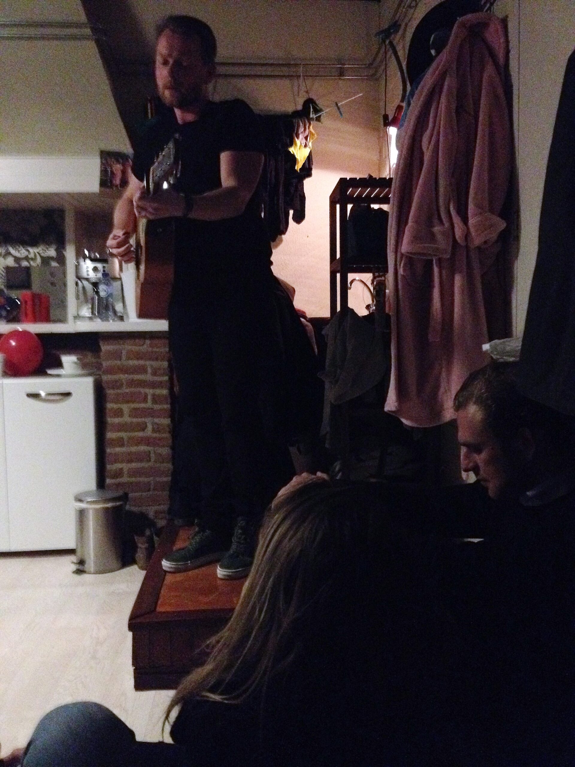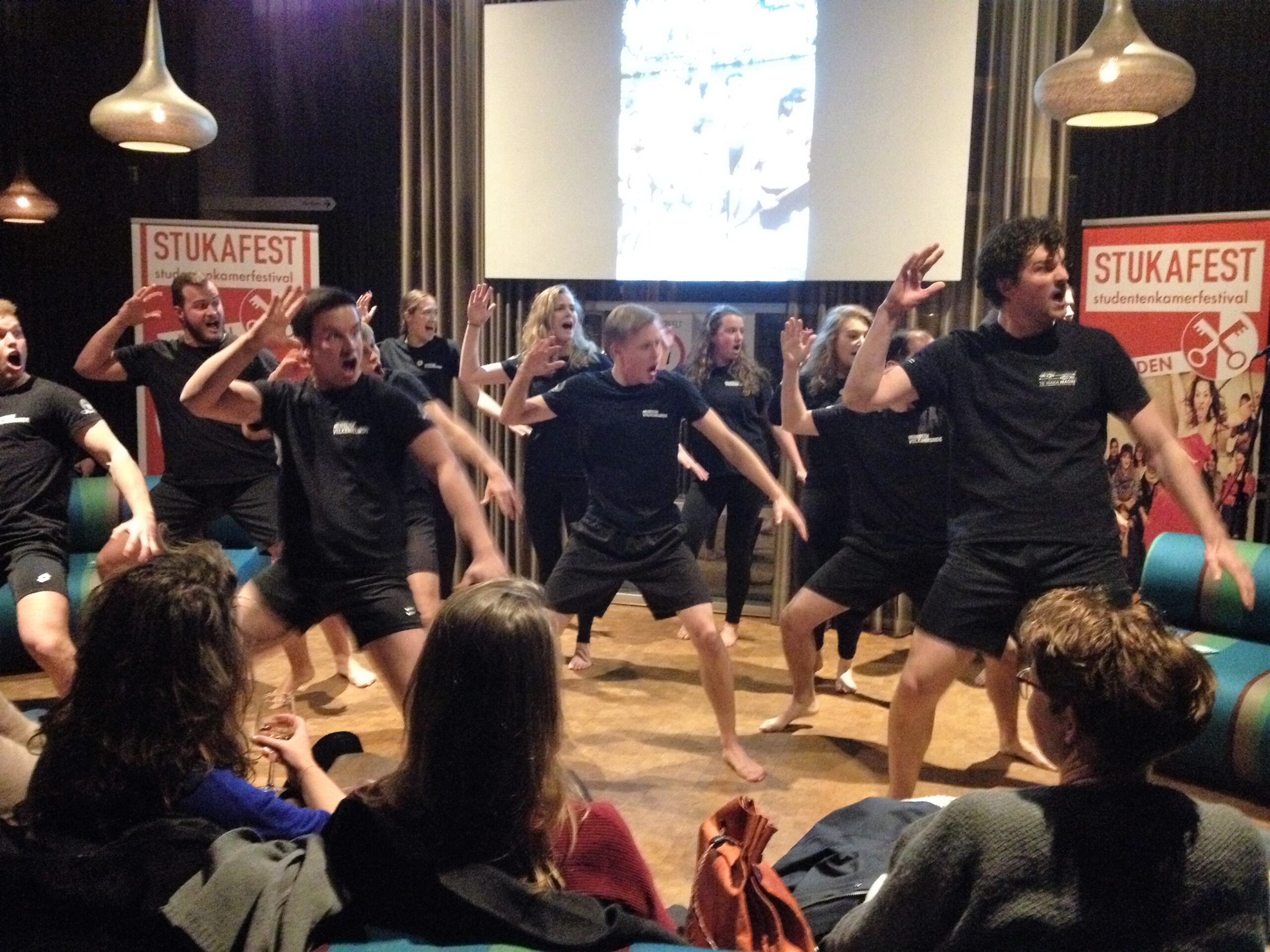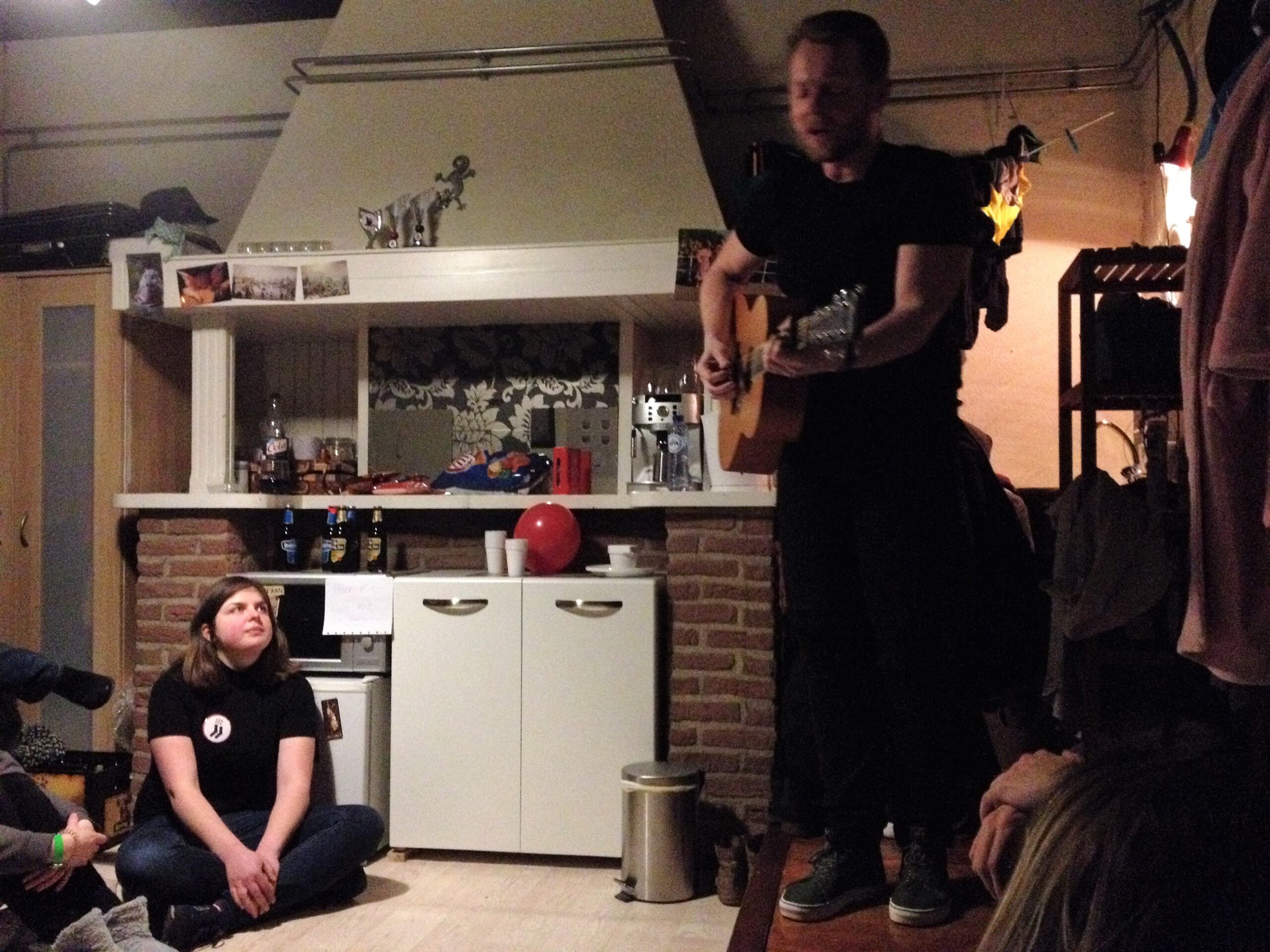Stukafest biedt niet alleen doorkijkjes en delen van voorstellingen, maar ook een beeld van de bonte verzameling studentenkamers die Leiden rijk is. Dat je gemiddeld zo’n vijfentwintig bezoekers in zo’n kamer kwijt kan, is al een wonder op zich. Goed, er wordt dan ook gezeten op alles waarop je maar kunt zitten en het wordt soms best warm na dat half uur. En op een of andere manier is het gros van die kamers te bereiken via smalle, steile trappen. Rommelig, OK, maar Spartaans niet echt: een espresso-apparaat tref je er net zo goed aan als de inmiddels noodzakelijke magnetron.