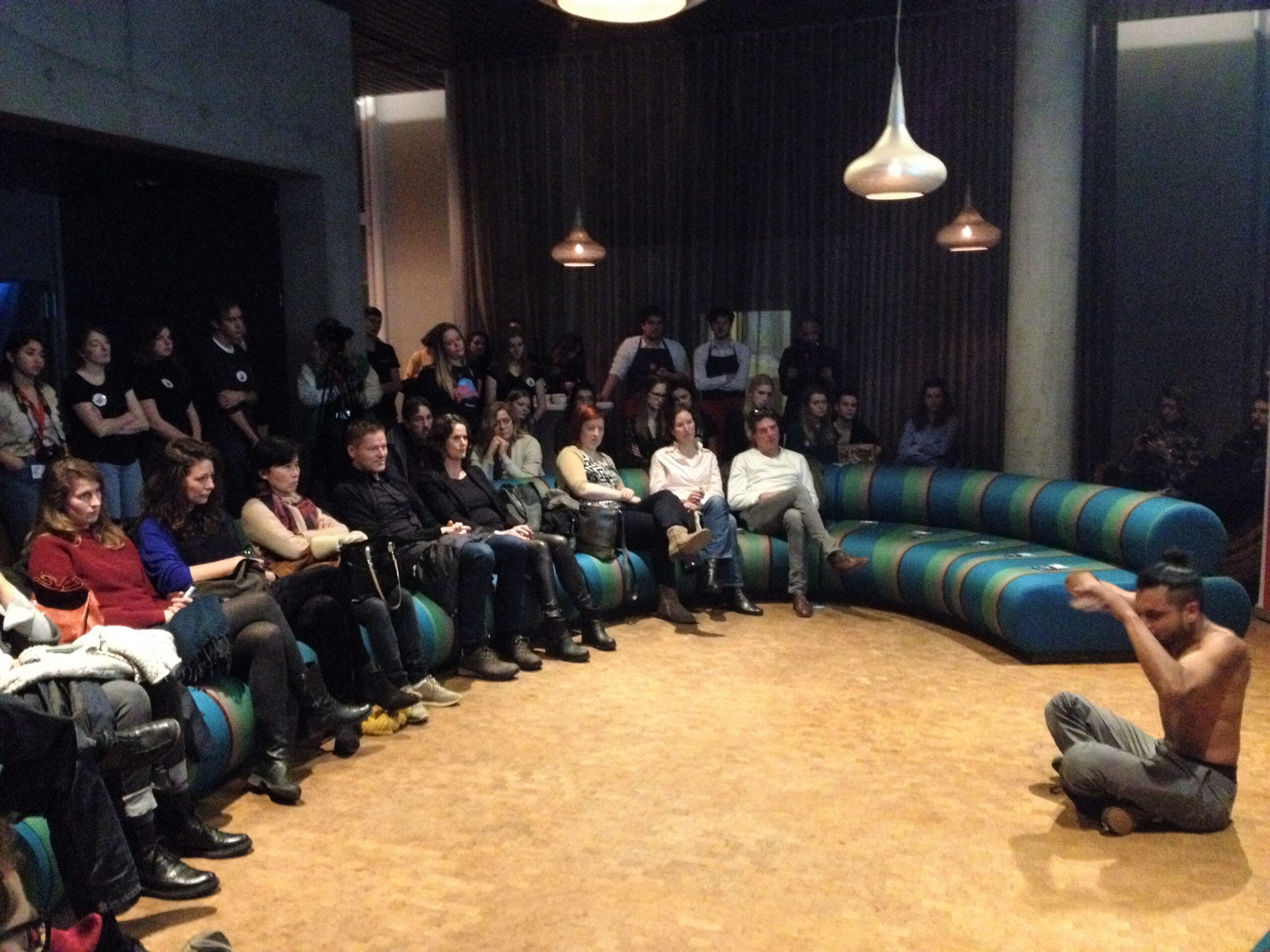 De bezoekers die donderdag de opening in het Museum van Volkenkunde bijwoonden, kregen niet drie maar vier voorstellingen te zien. Shailesh Bahoran liet een staaltje lichaamsbeheersing zien in een dansvoorstelling gebaseerd op Hindoestaanse tradities. Misschien niet de verfijnde bewegingen van traditioneel ballet of dans, maar wel imponerend. De schokkende beweging, de absolute stilstand na beweging, de balans; allemaal alleen mogelijk dankzij lichaams- en spierbeweging. En, zo liet Bahoran, zien, ook ademhaling kan als instrument worden gebruikt.